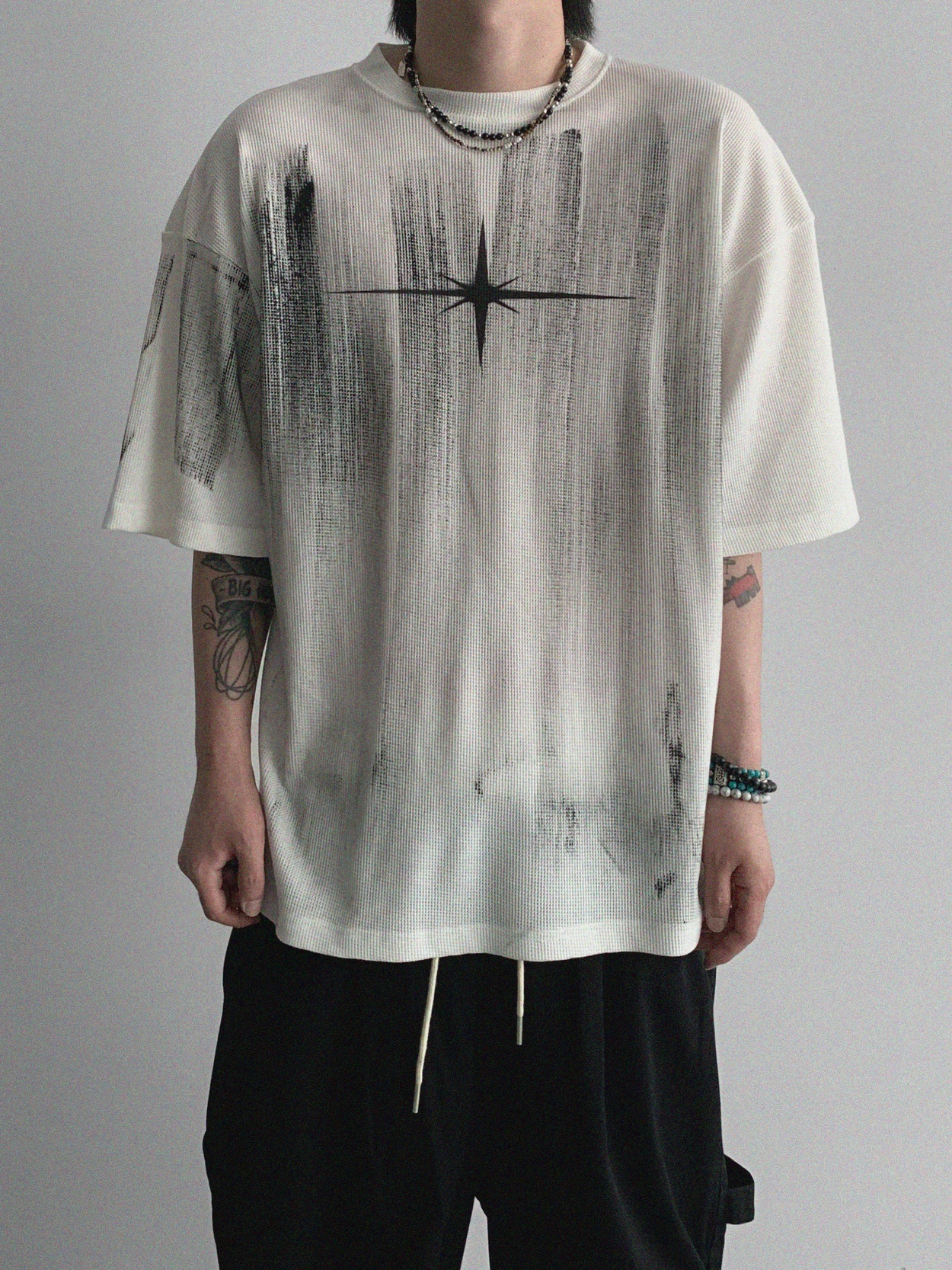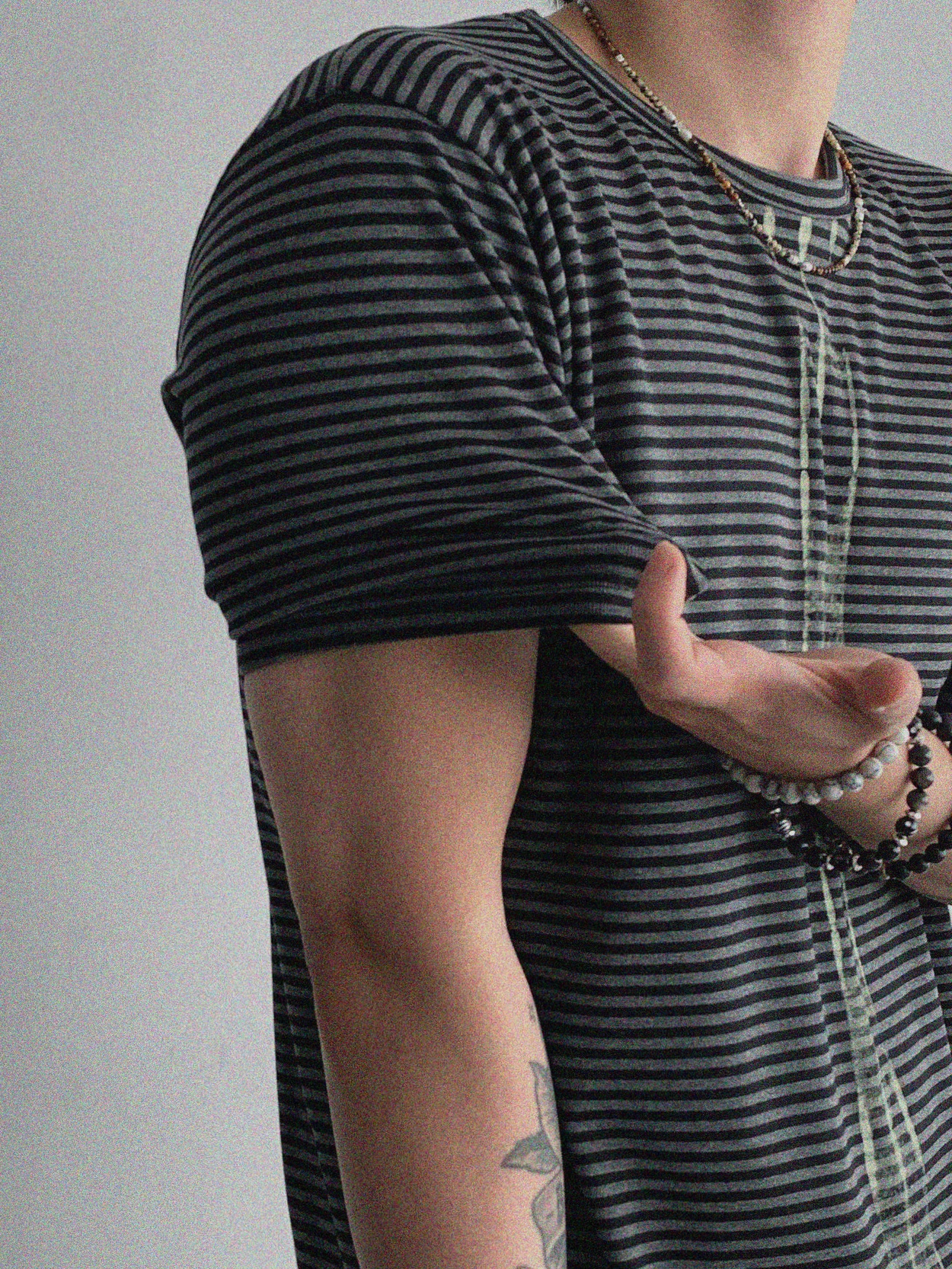 스모크 스트라이프 머슬핏 하프티