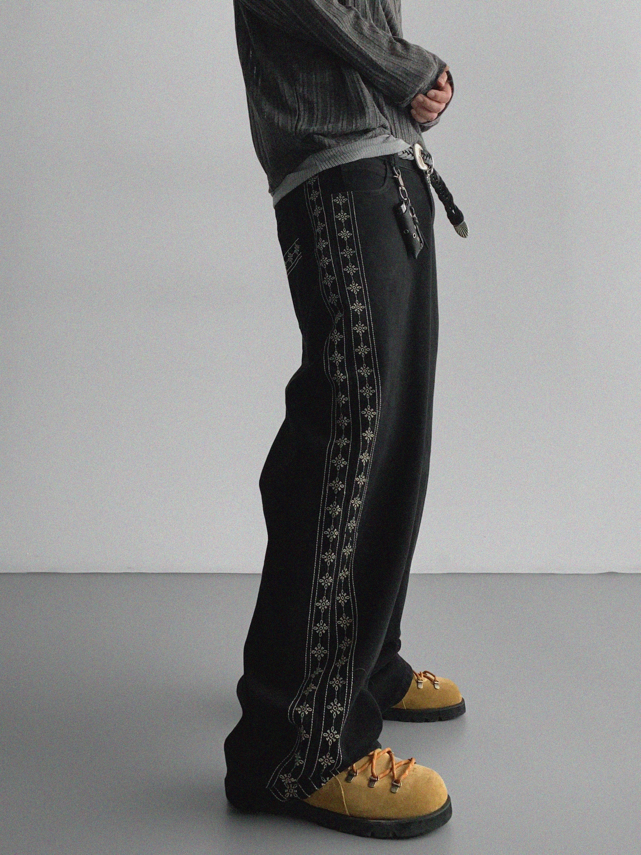 루타 자수 데님 팬츠