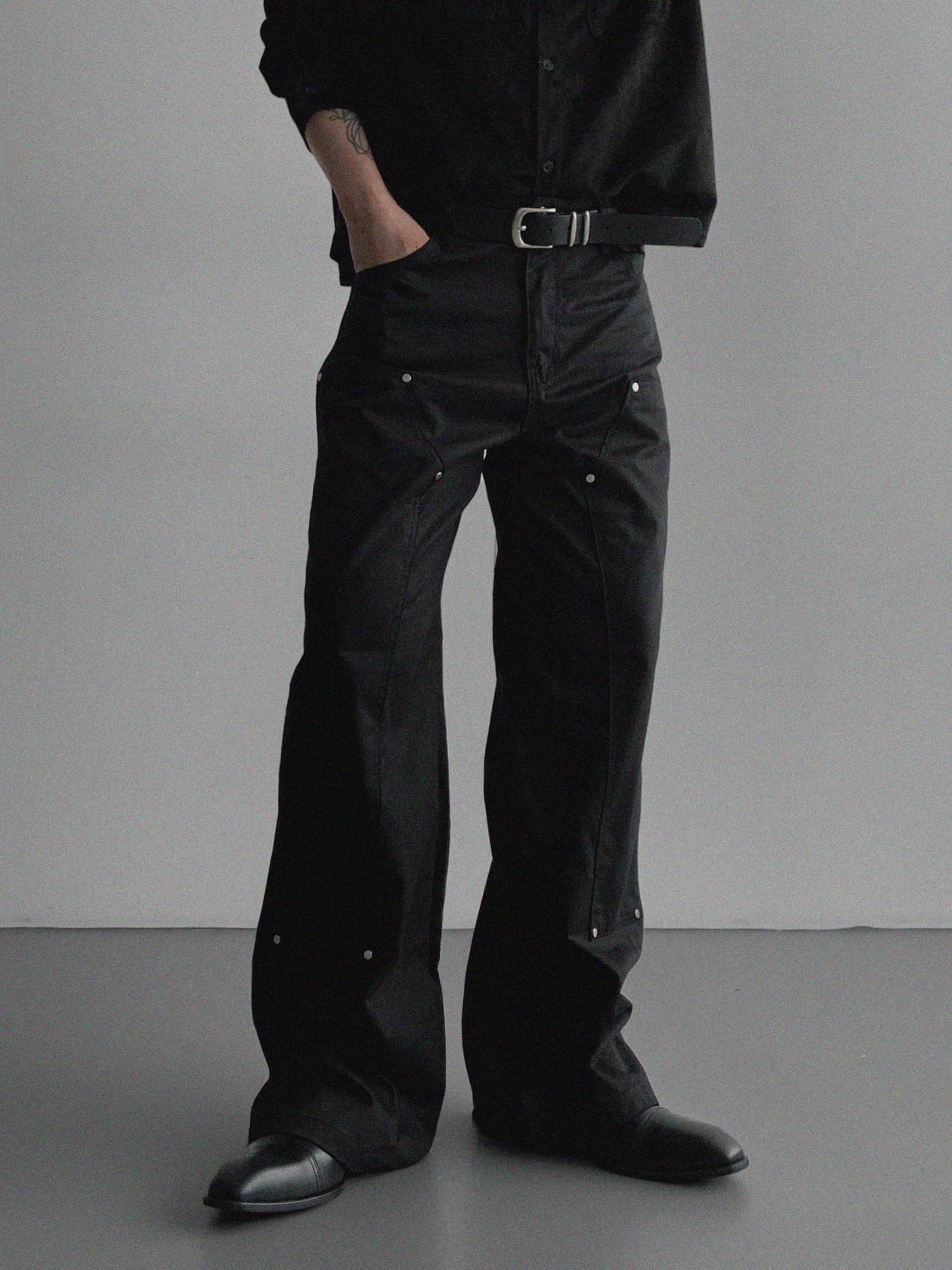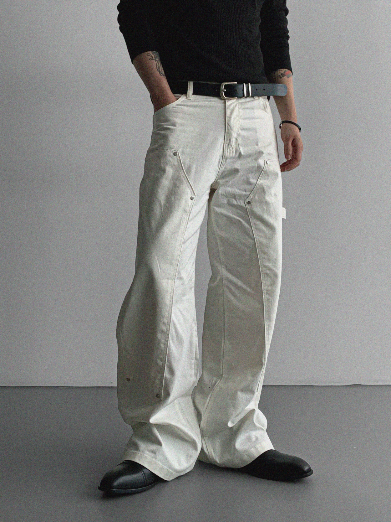 레더 더블니 코팅 와이드 팬츠