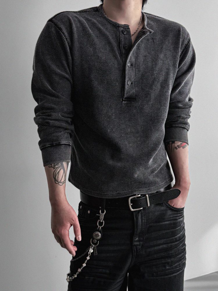 Pigment Waffle Henley neck cropped T-shirt