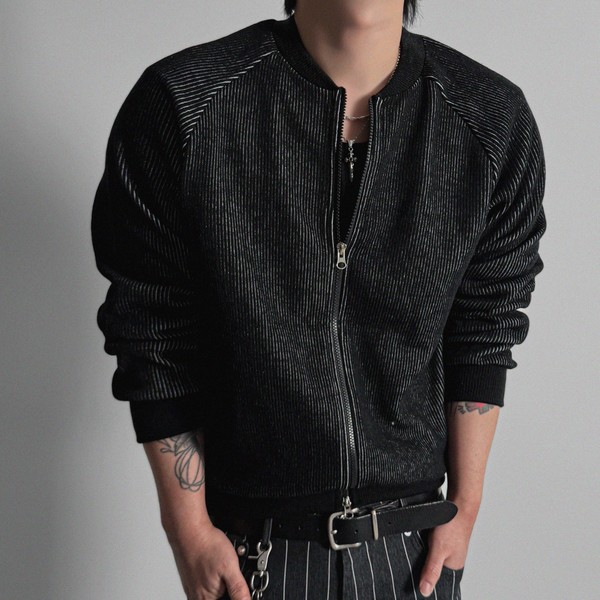 Silk Stripe Knit Zip-Up