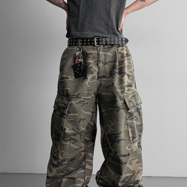 Nine cargo parasuit wide denim pants (카키카모 L size 4/20 입고)