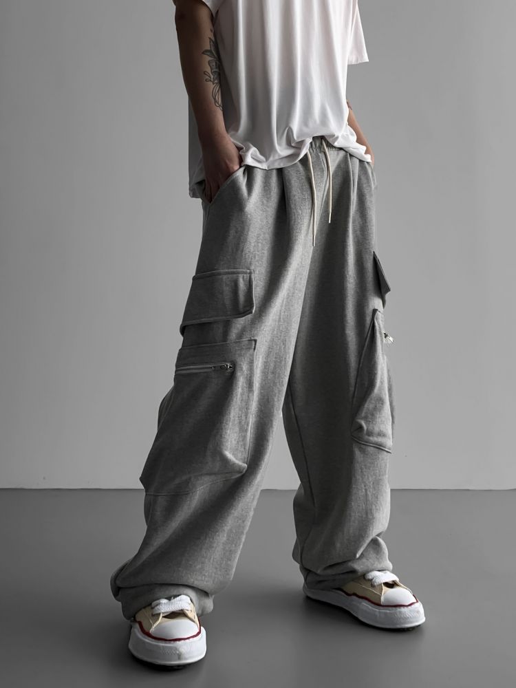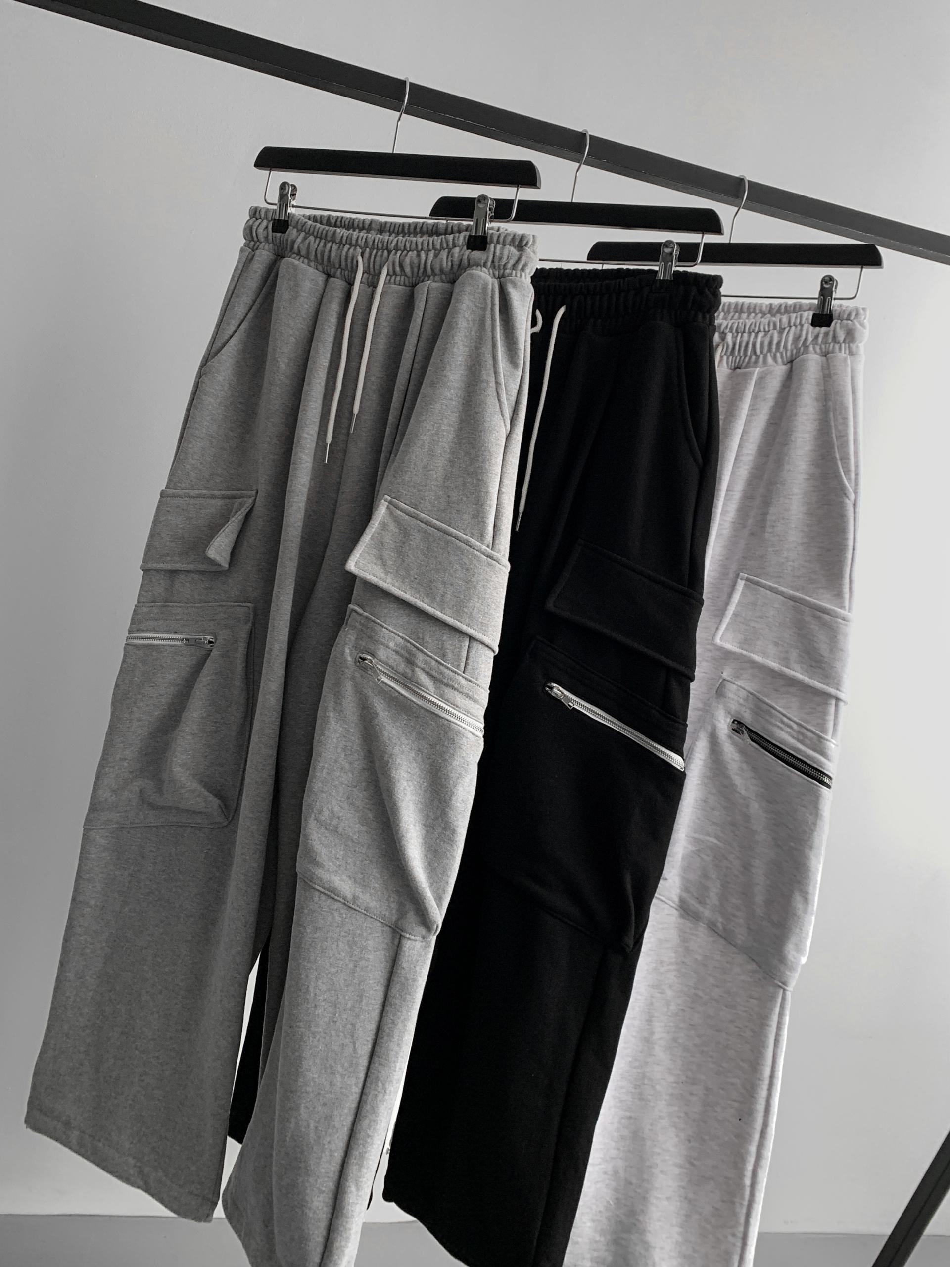 지퍼 카고 와이드 스웻 팬츠 (3colors)