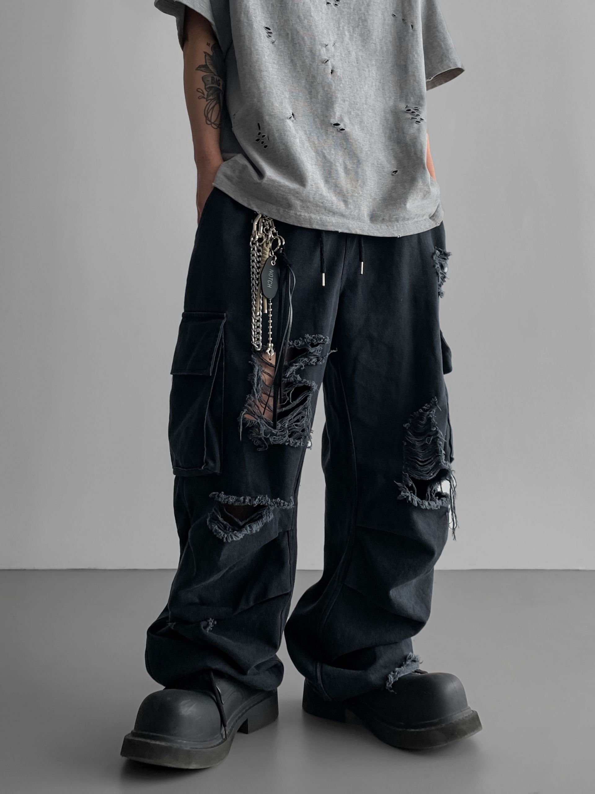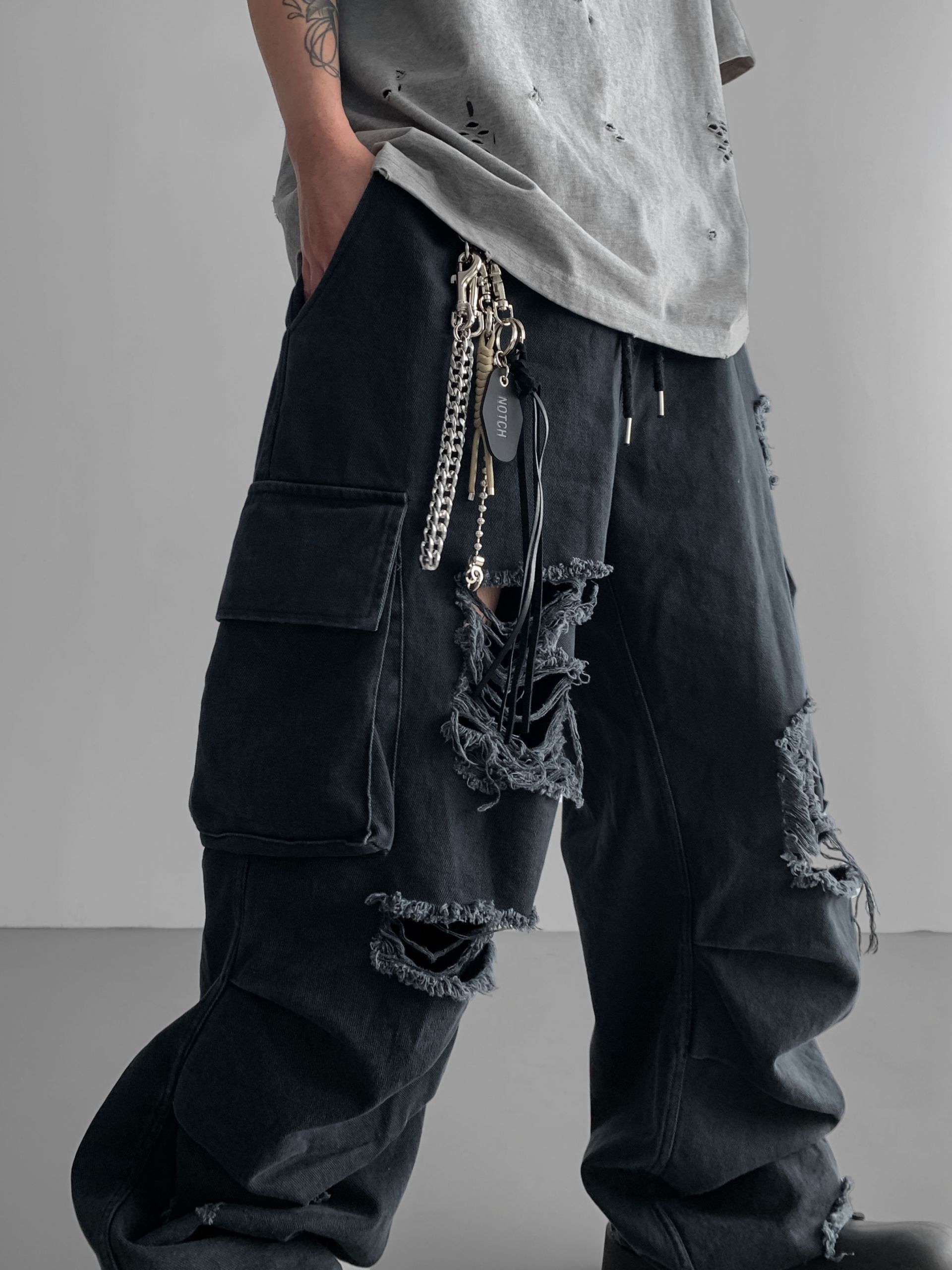 데미지 빈티지 카고 데님 팬츠
