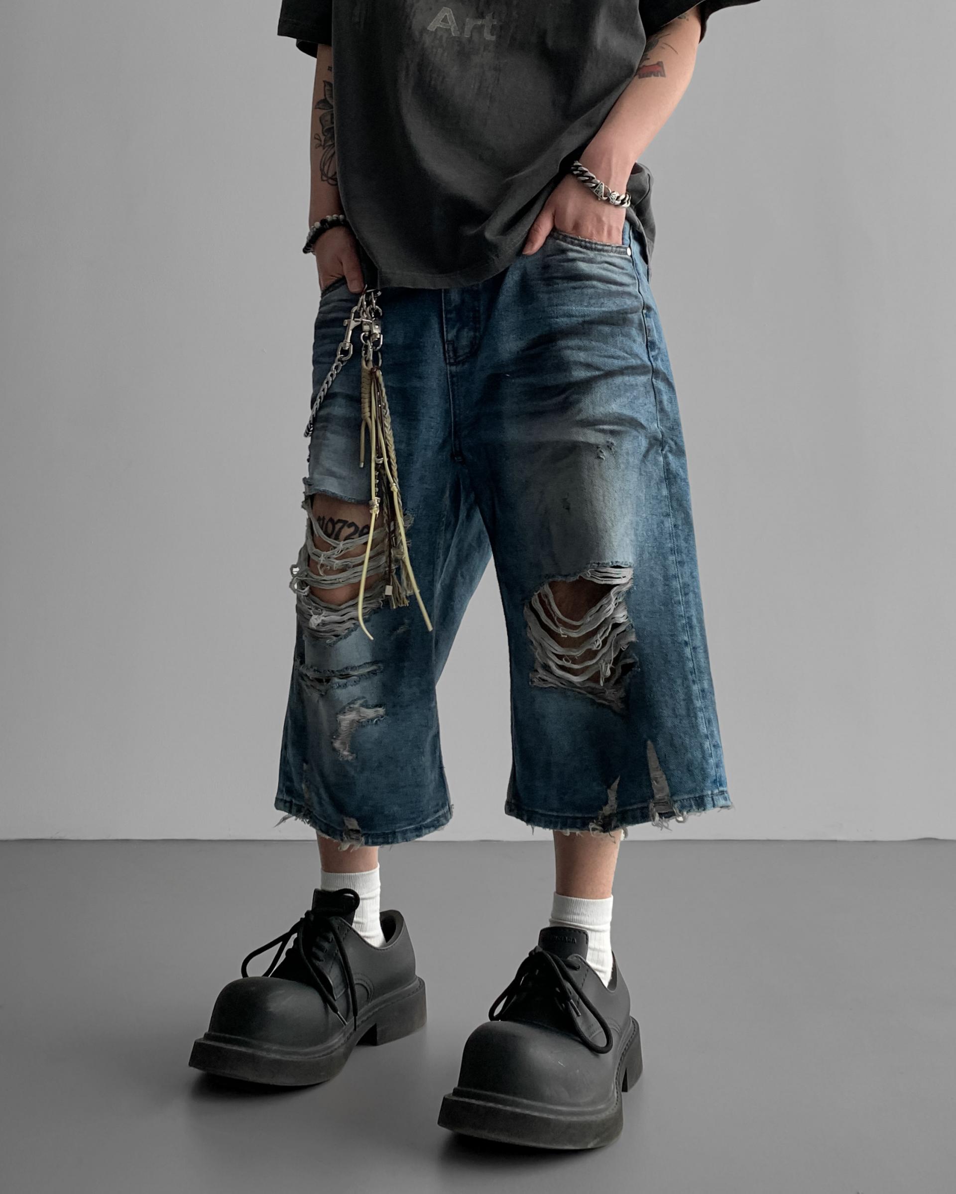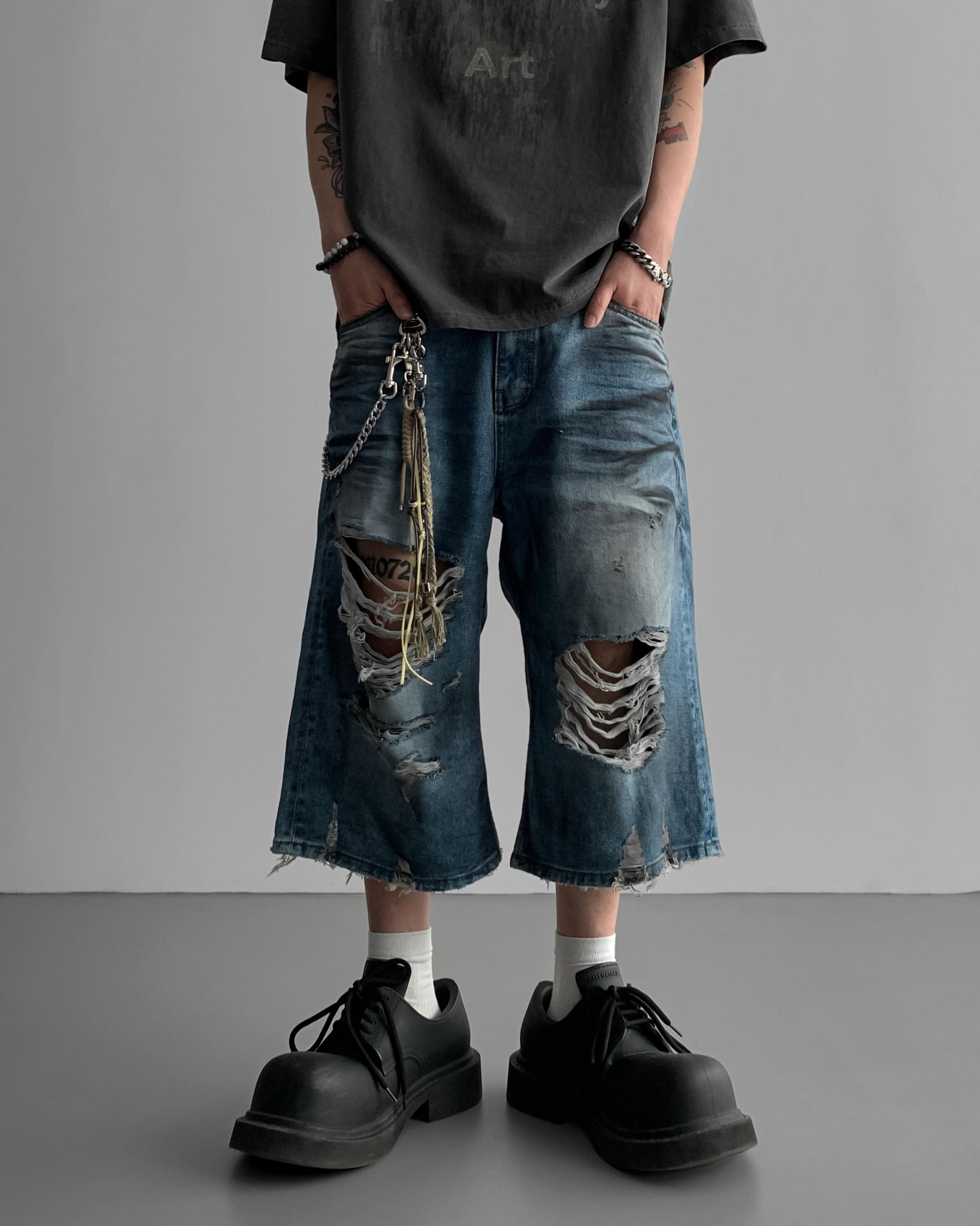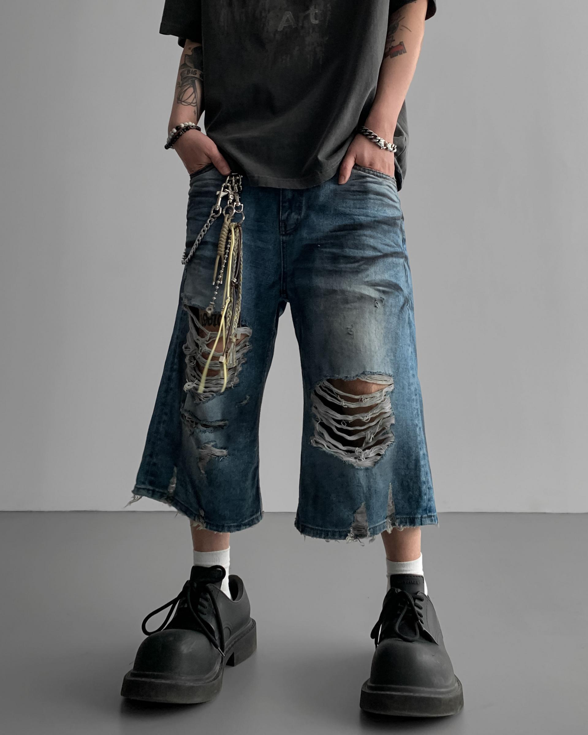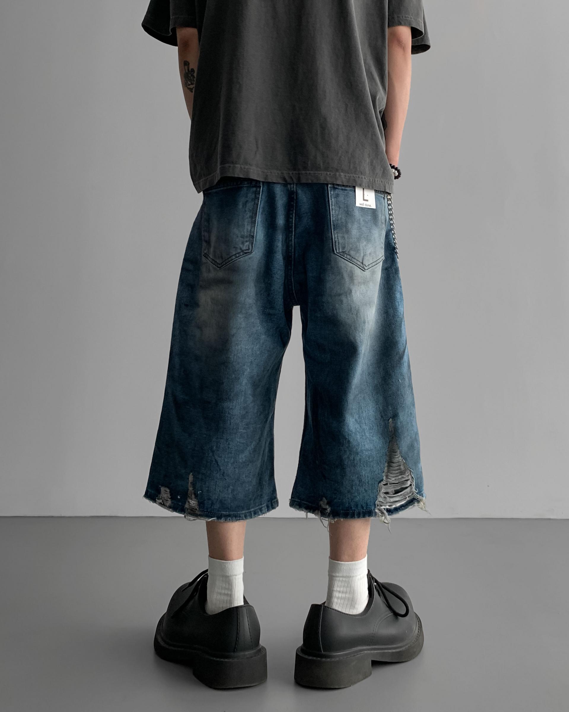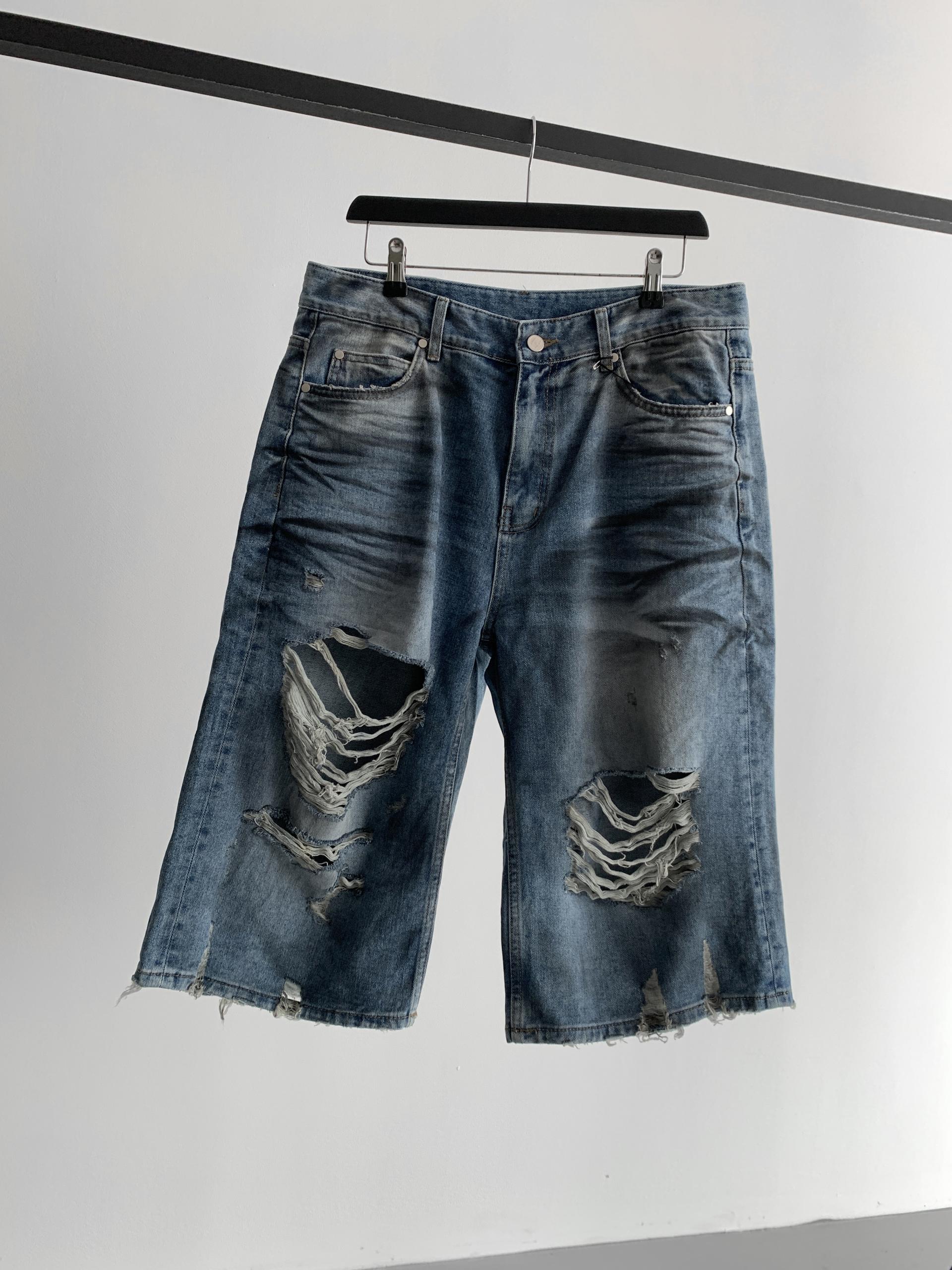 1047 오픈 데미지 엠보 버뮤다 데님 팬츠