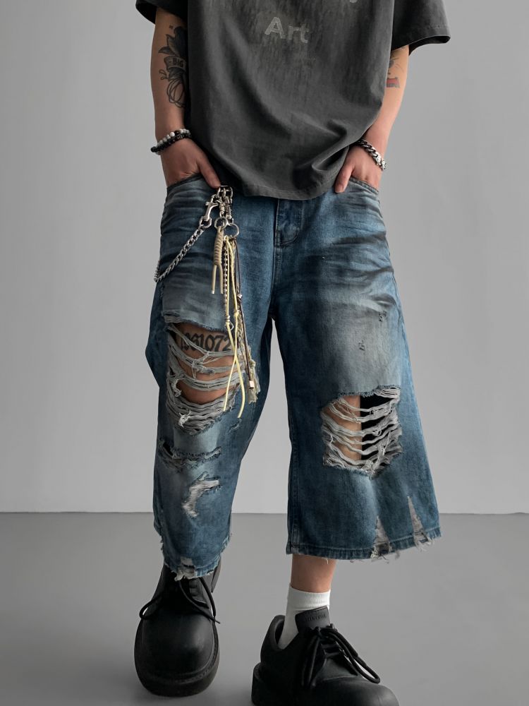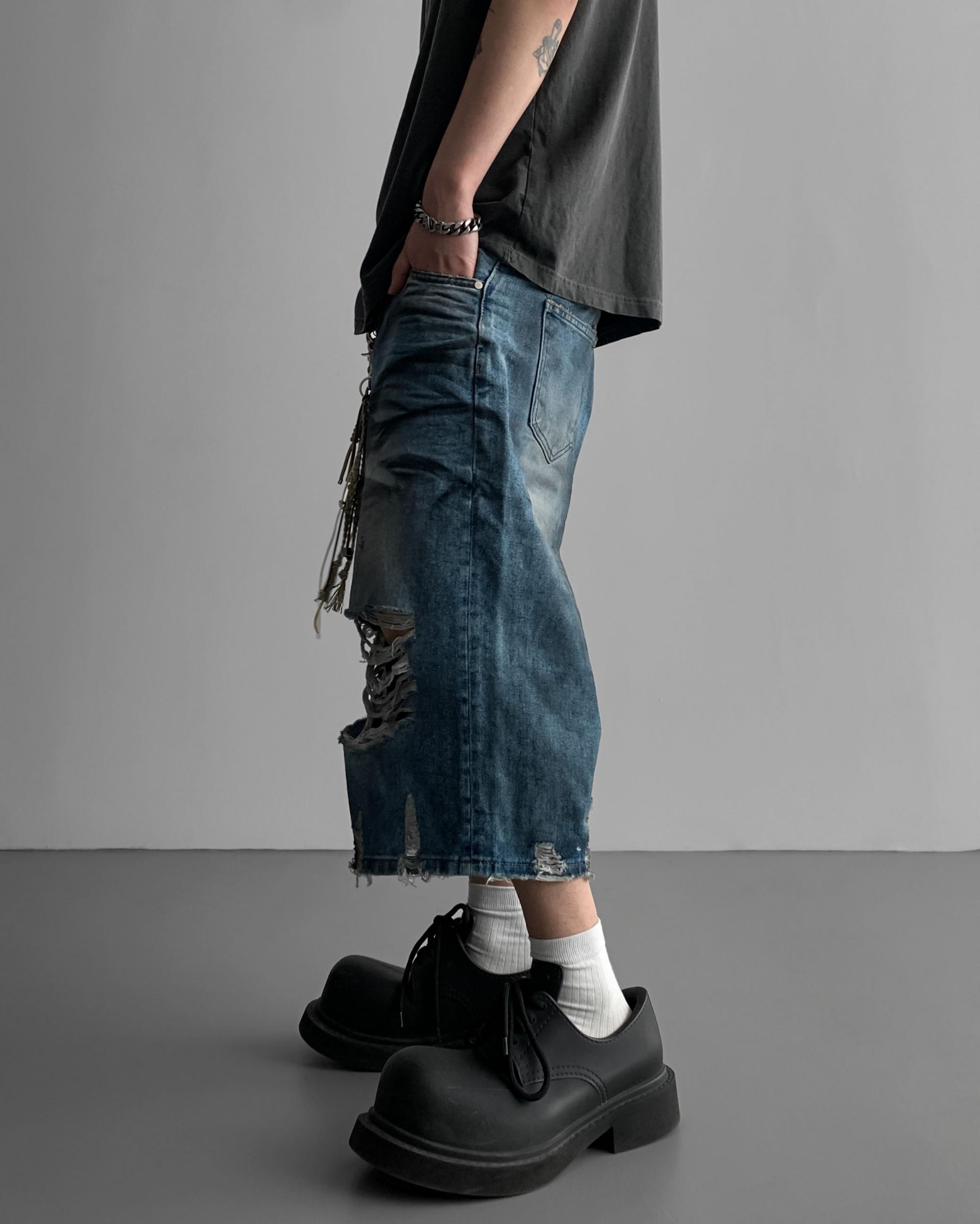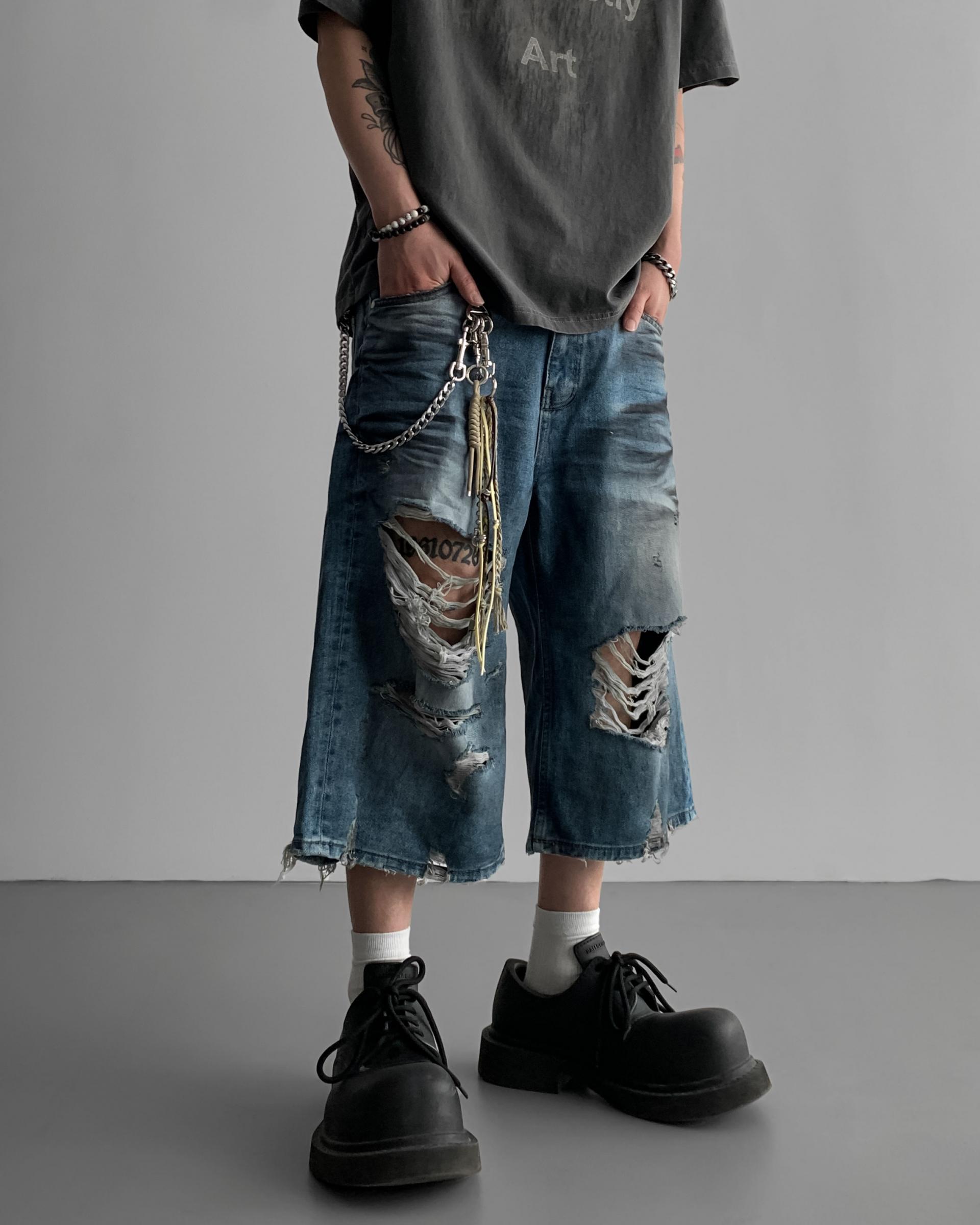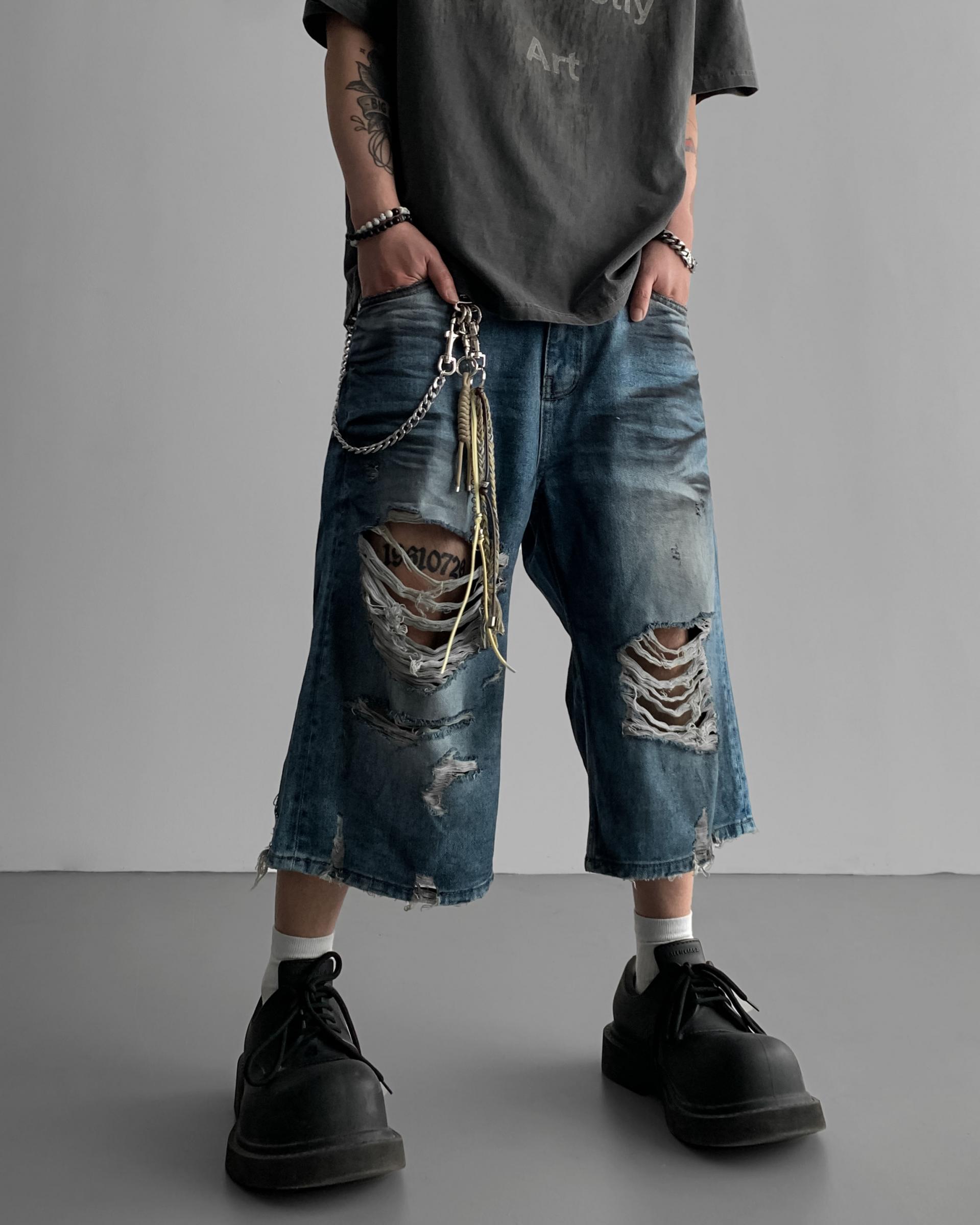 1047 오픈 데미지 엠보 버뮤다 데님 팬츠