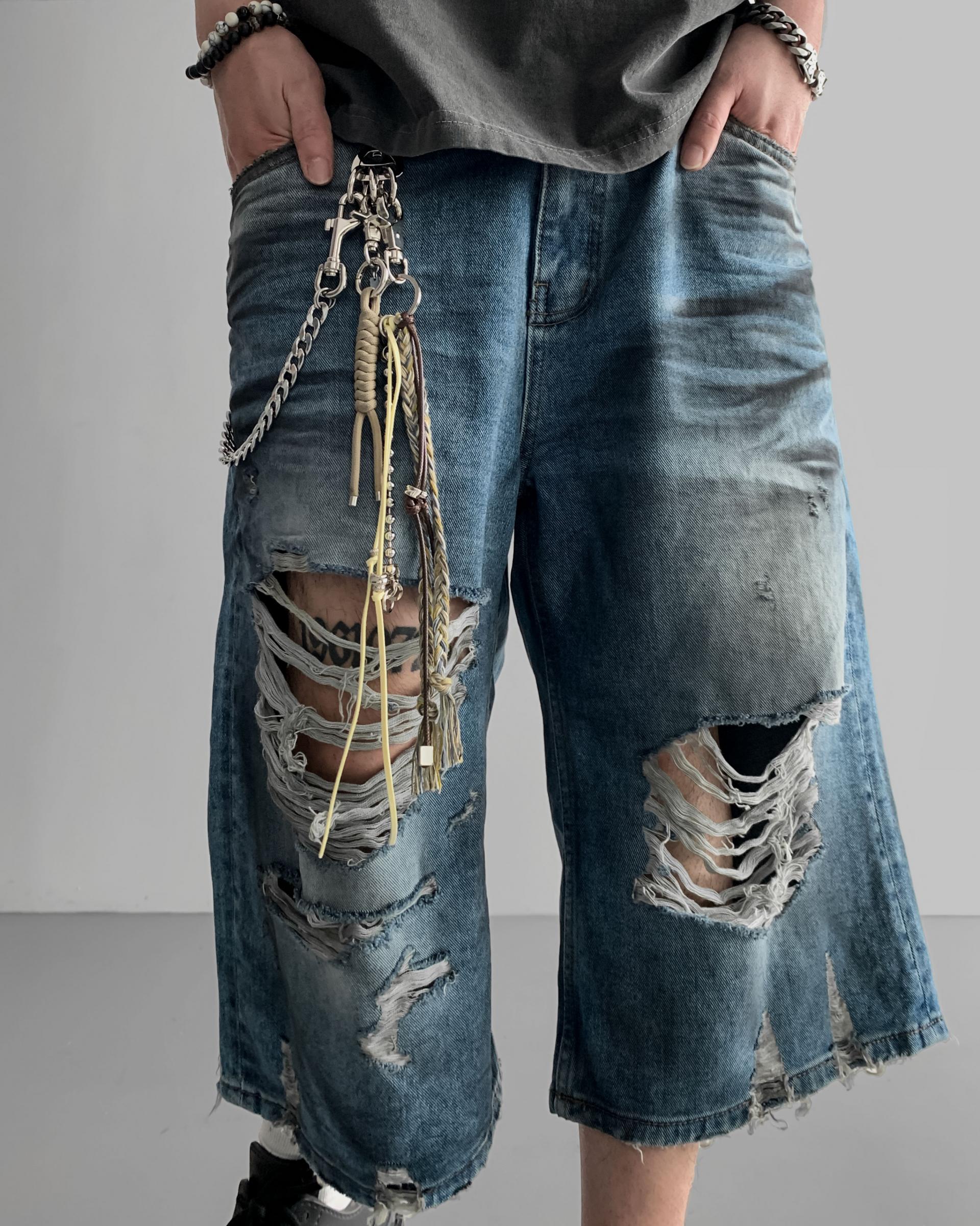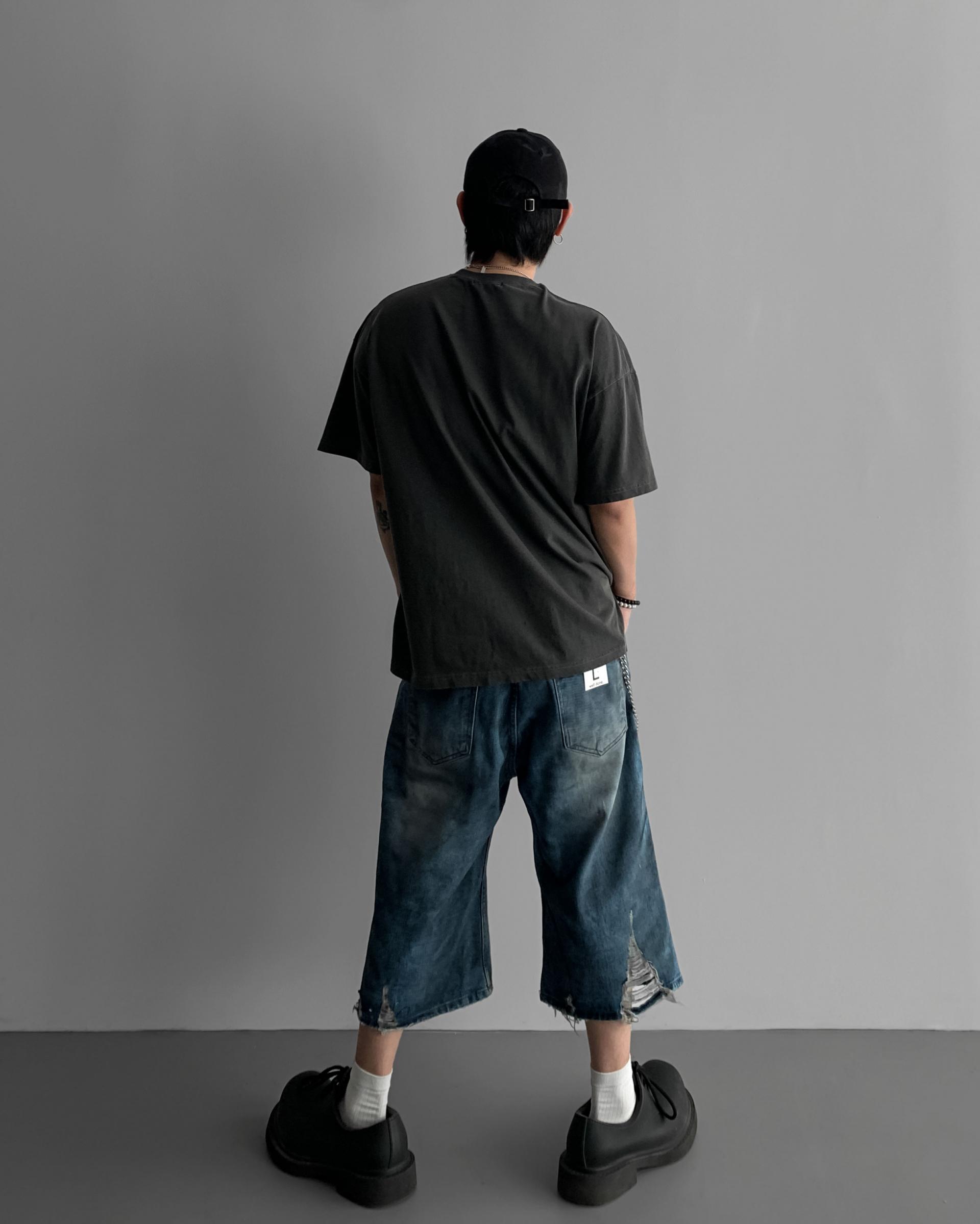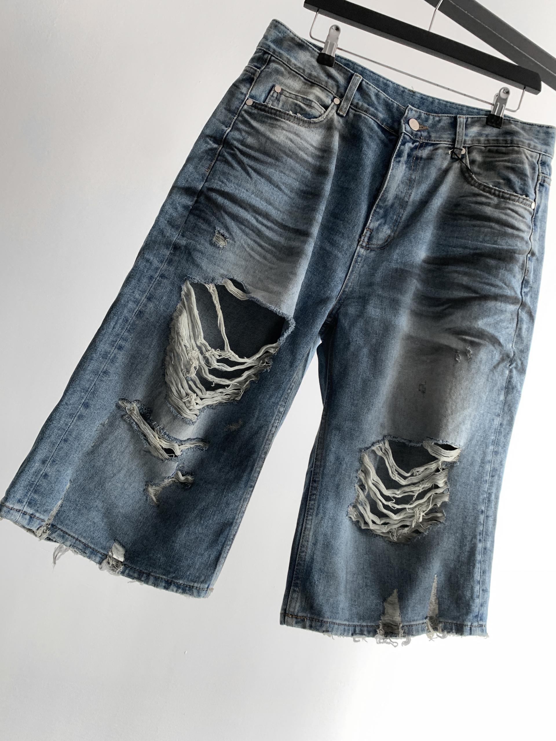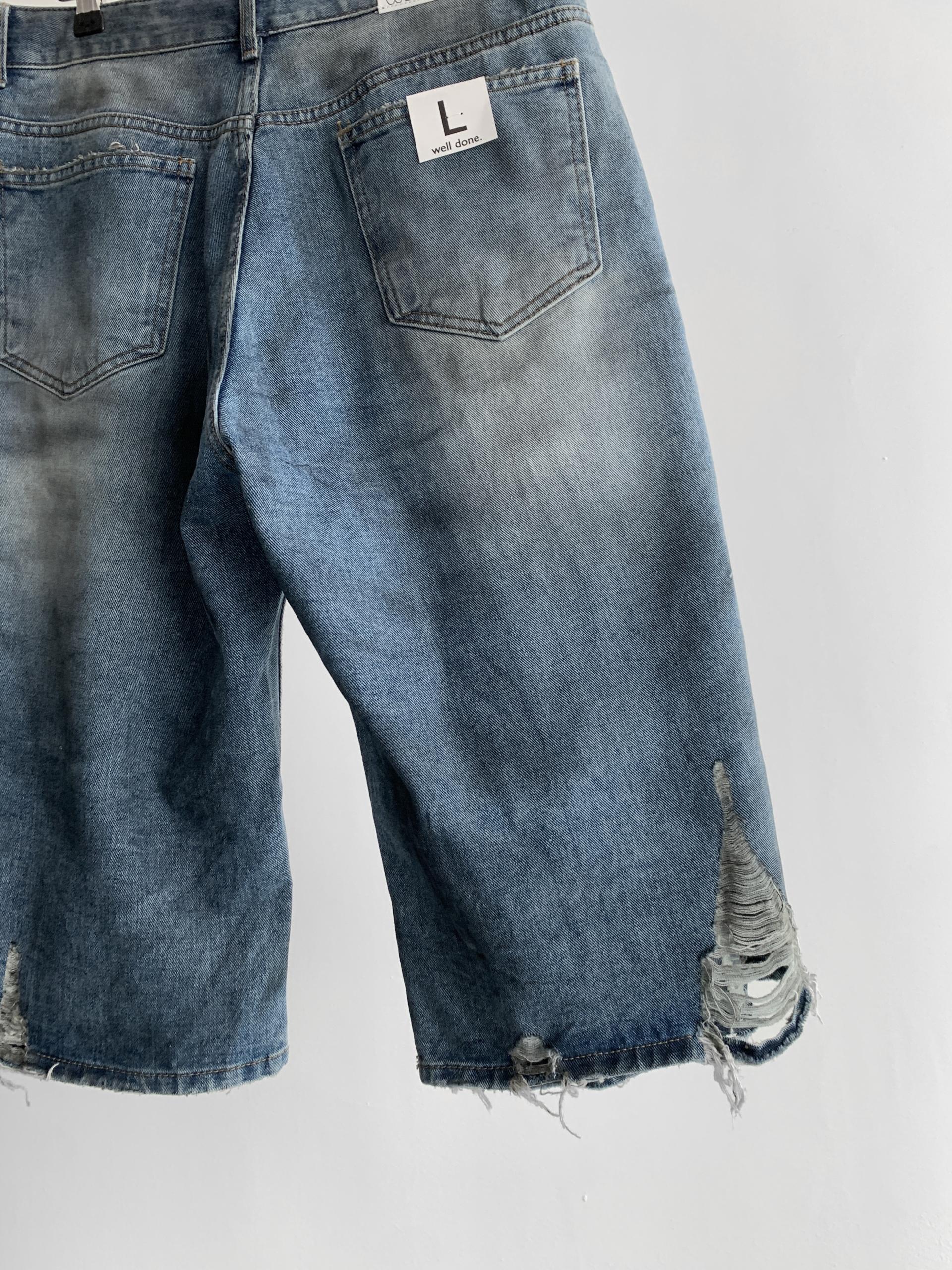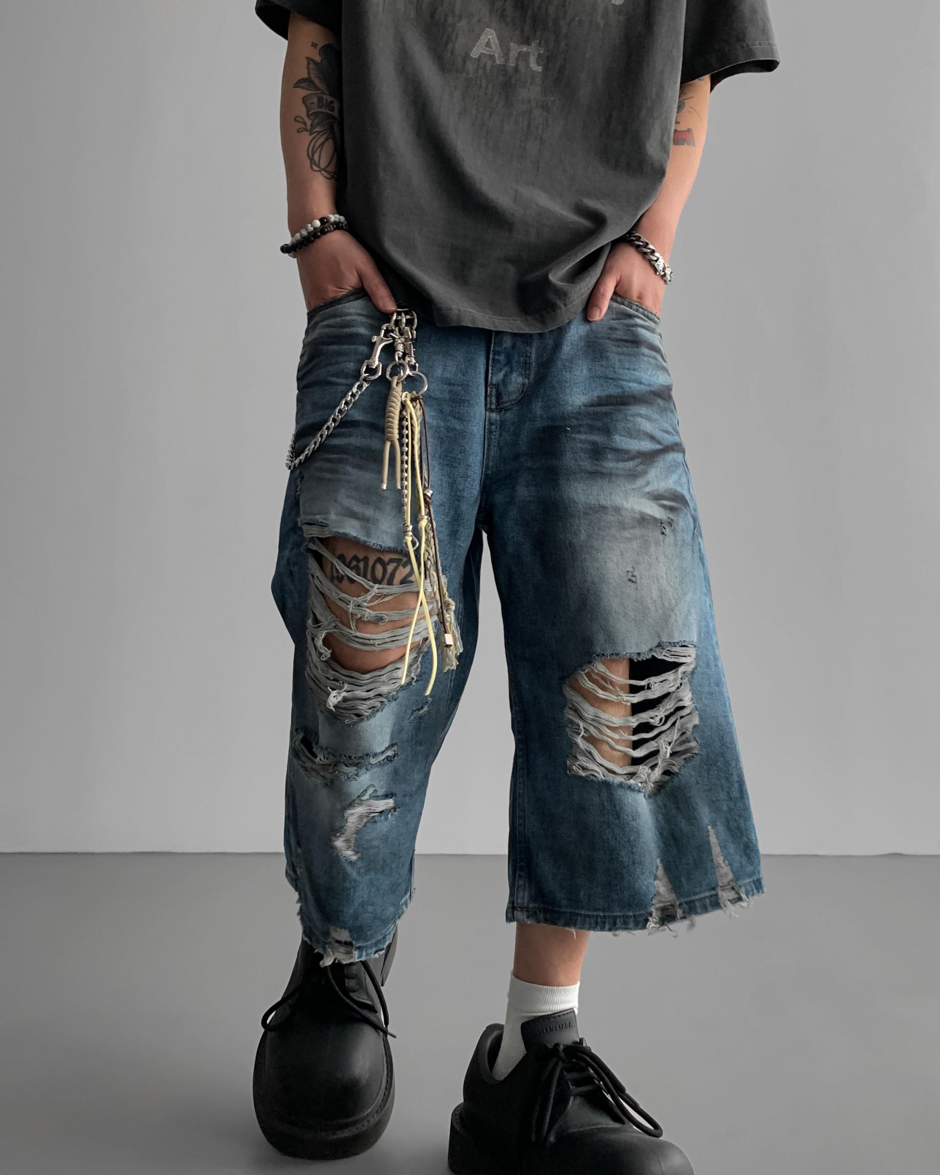 1047 오픈 데미지 엠보 버뮤다 데님 팬츠