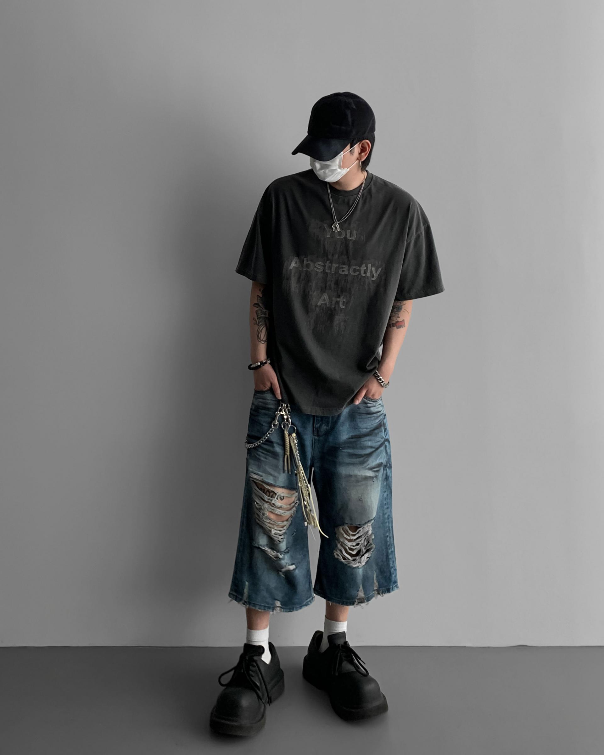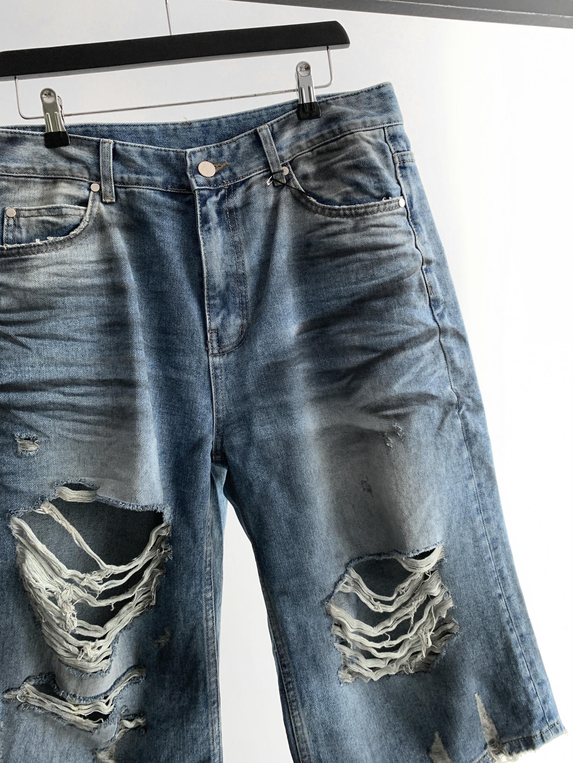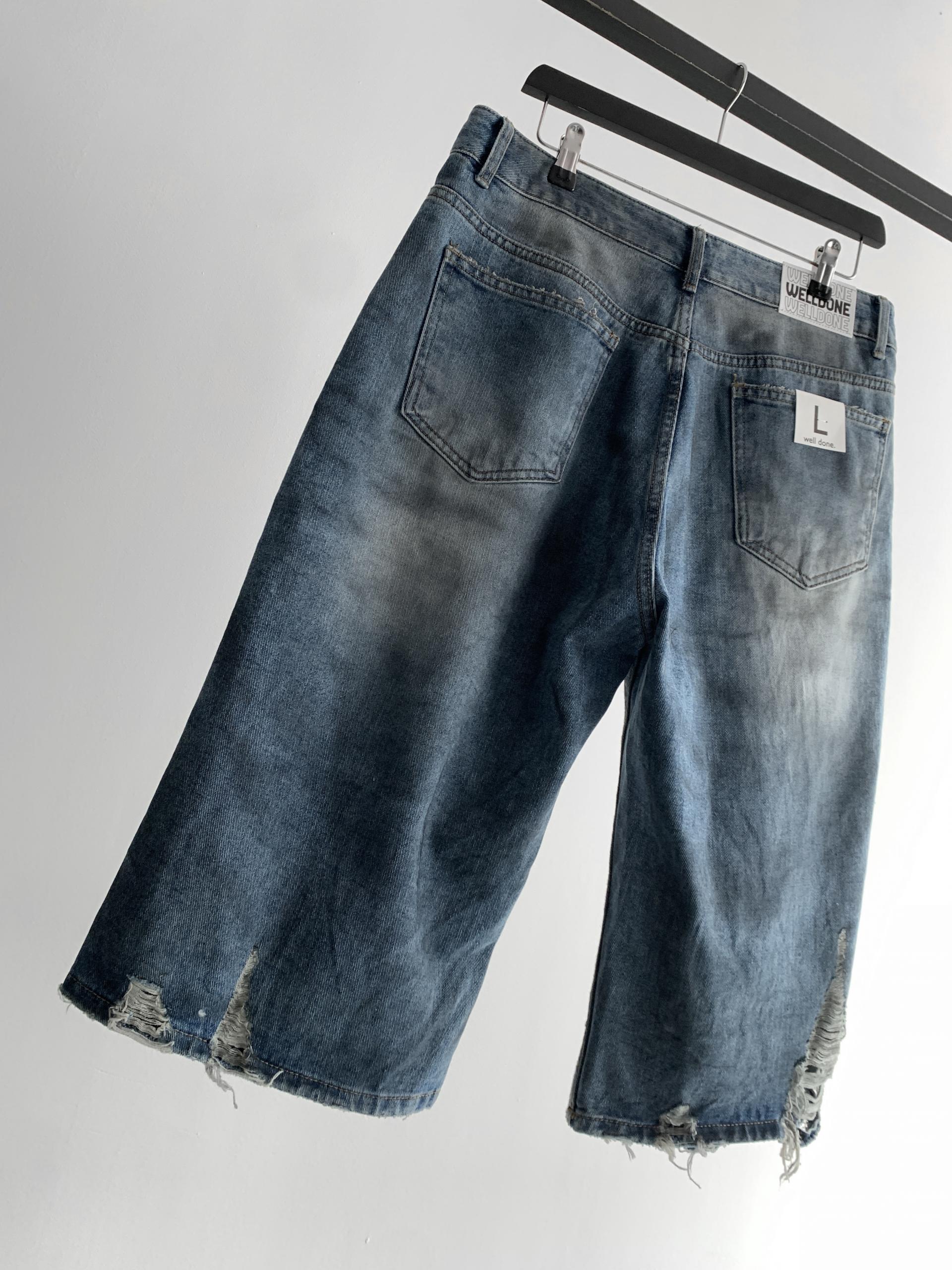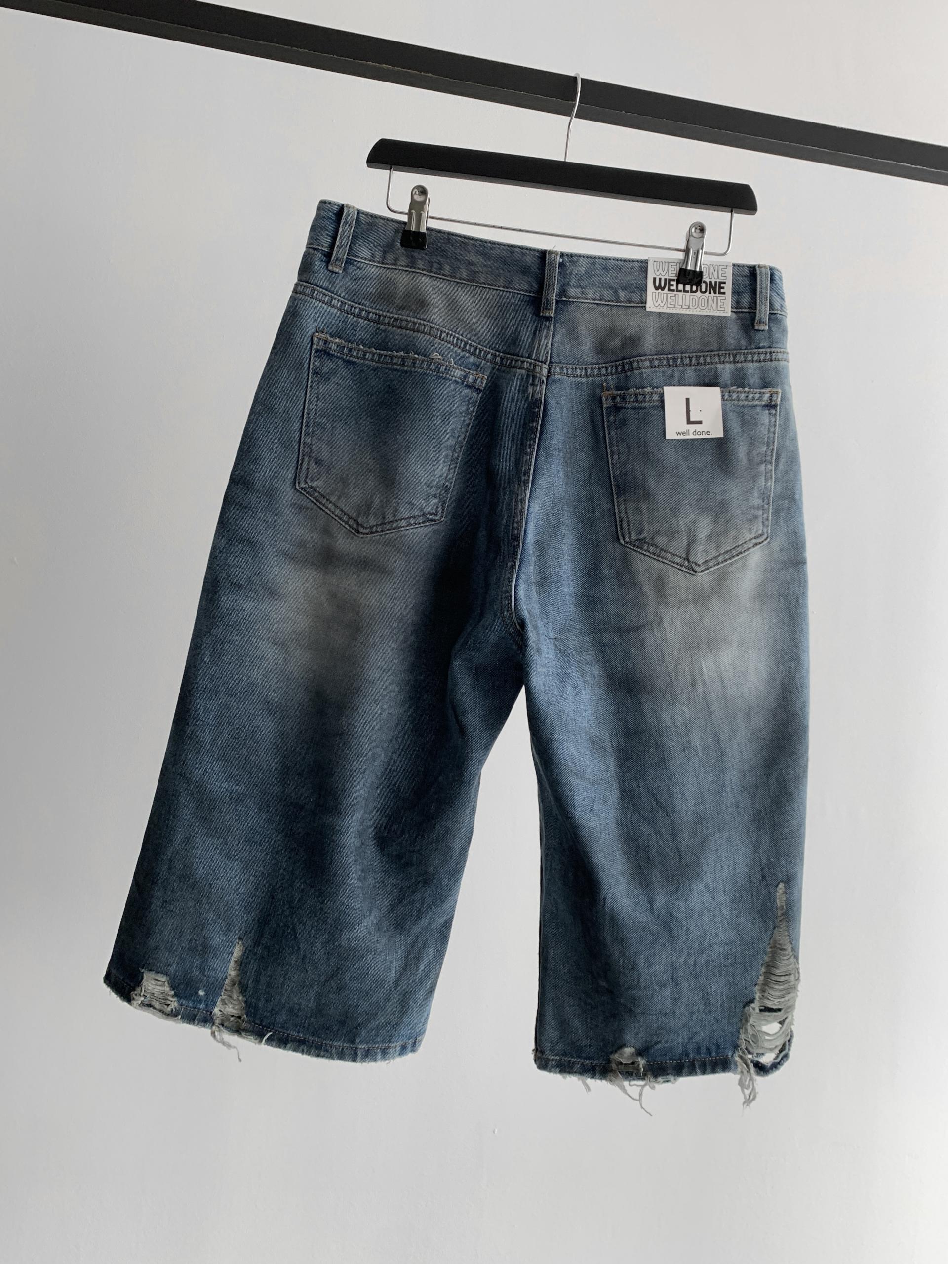 1047 오픈 데미지 엠보 버뮤다 데님 팬츠