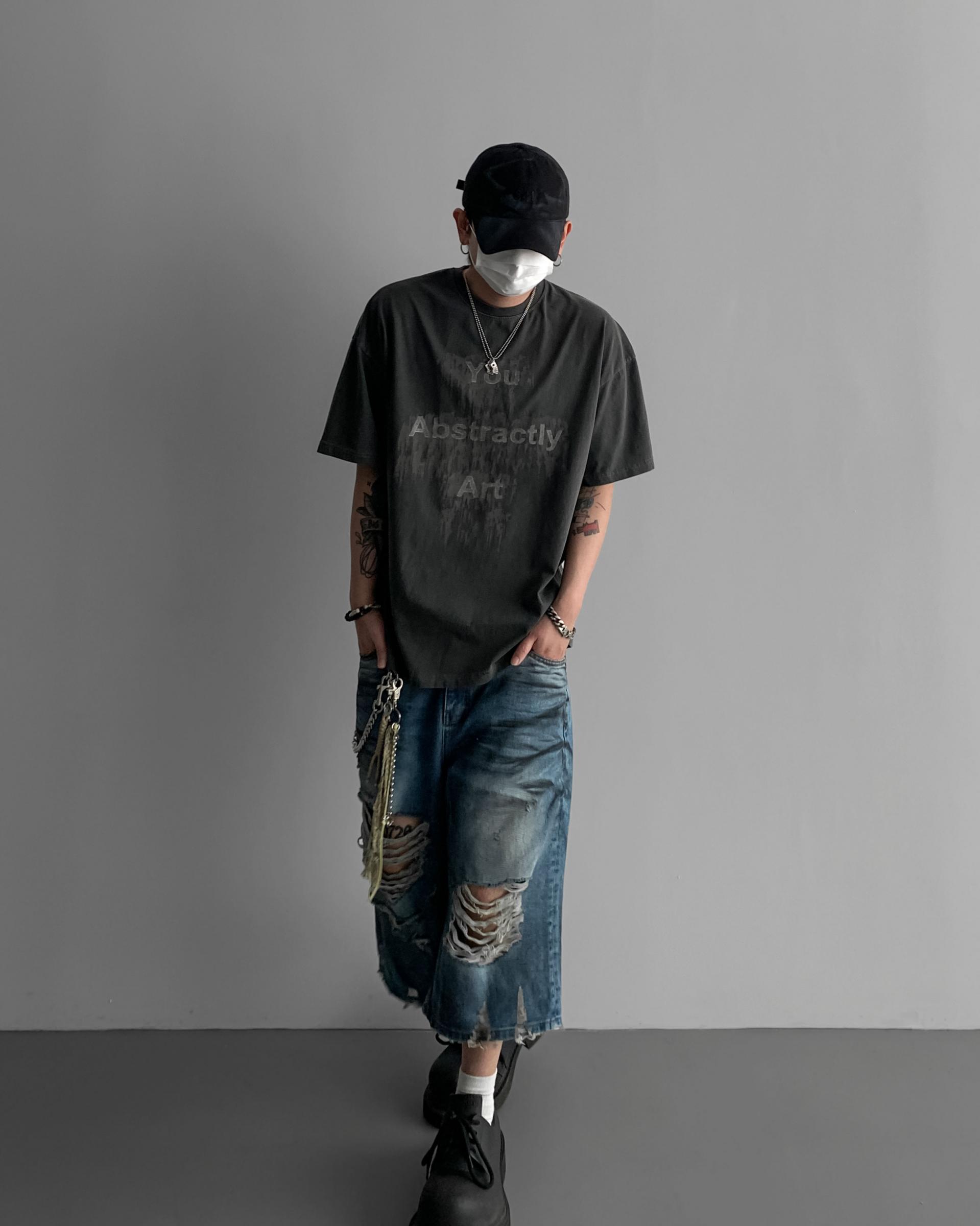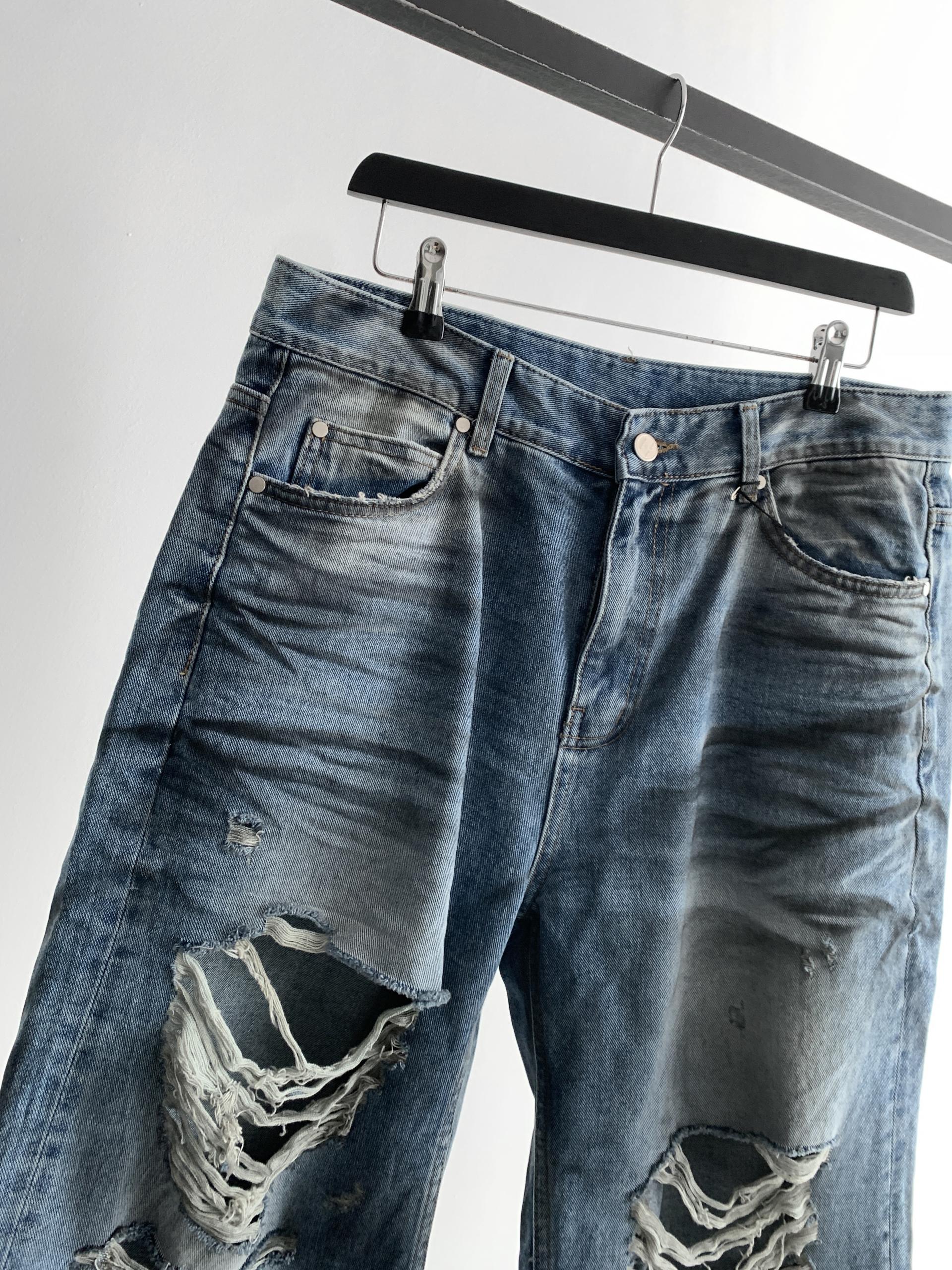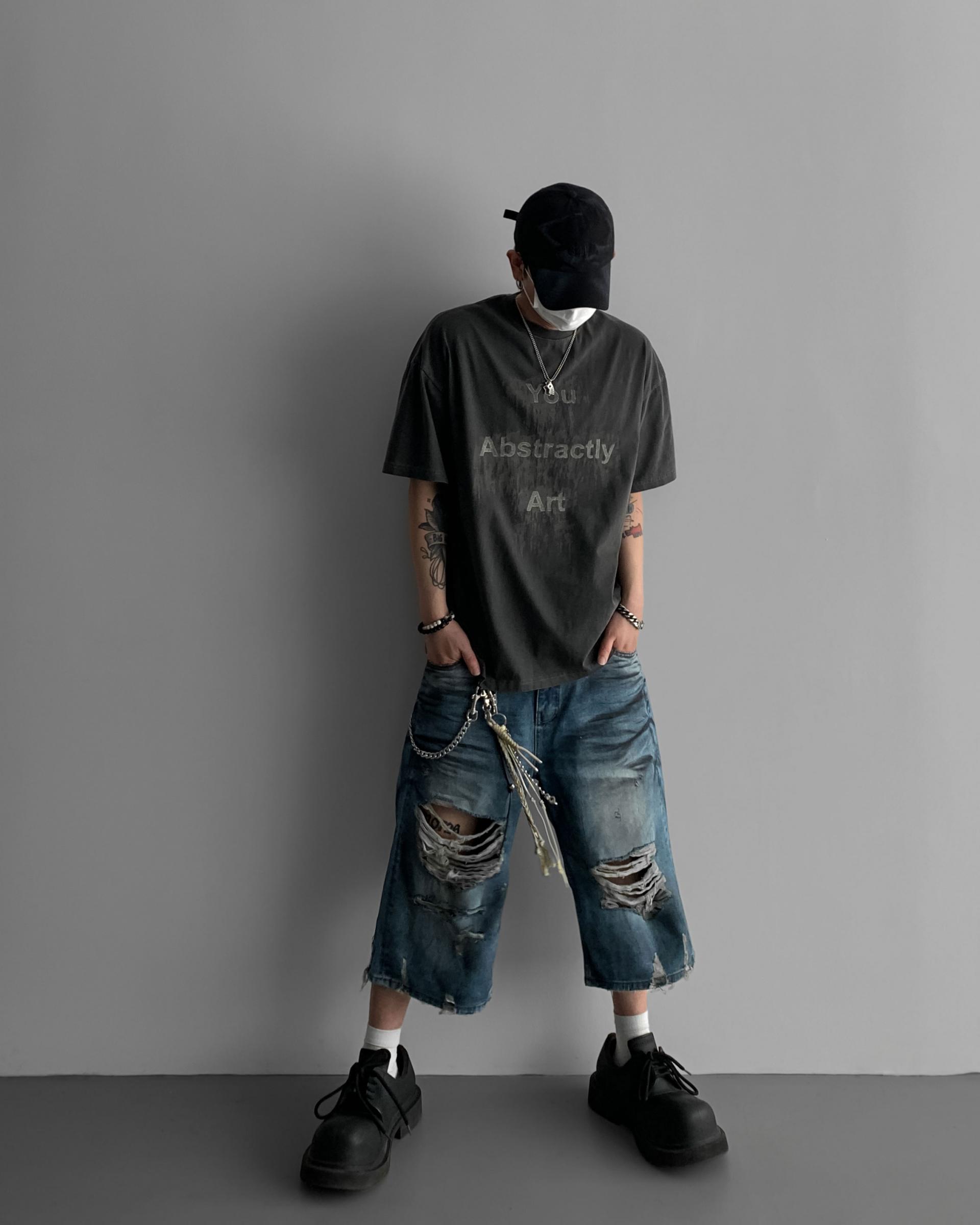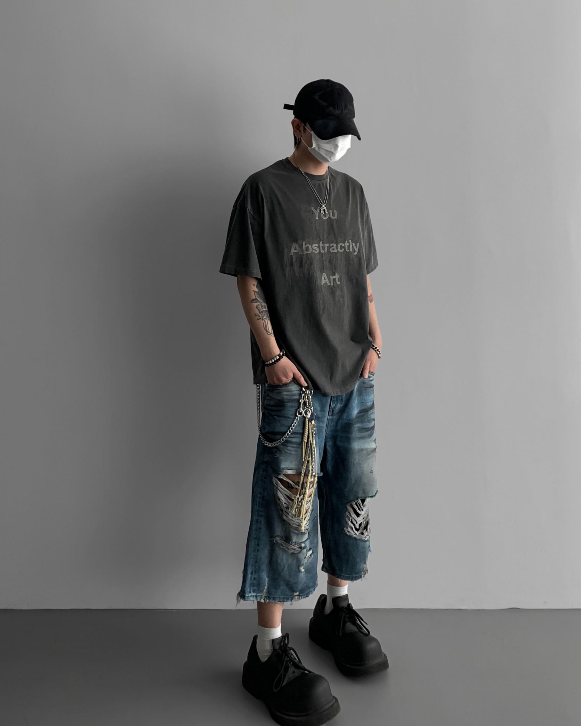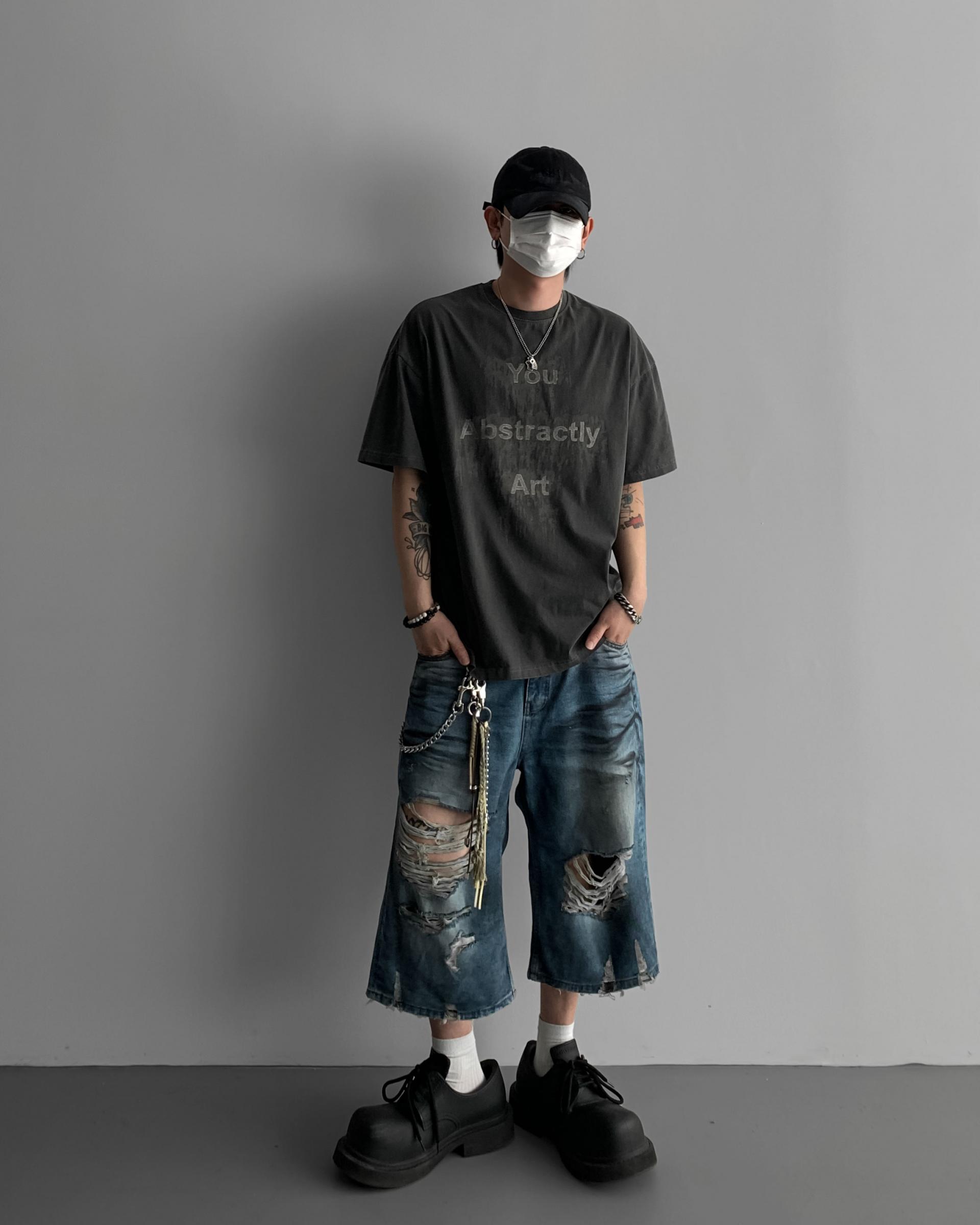 1047 오픈 데미지 엠보 버뮤다 데님 팬츠