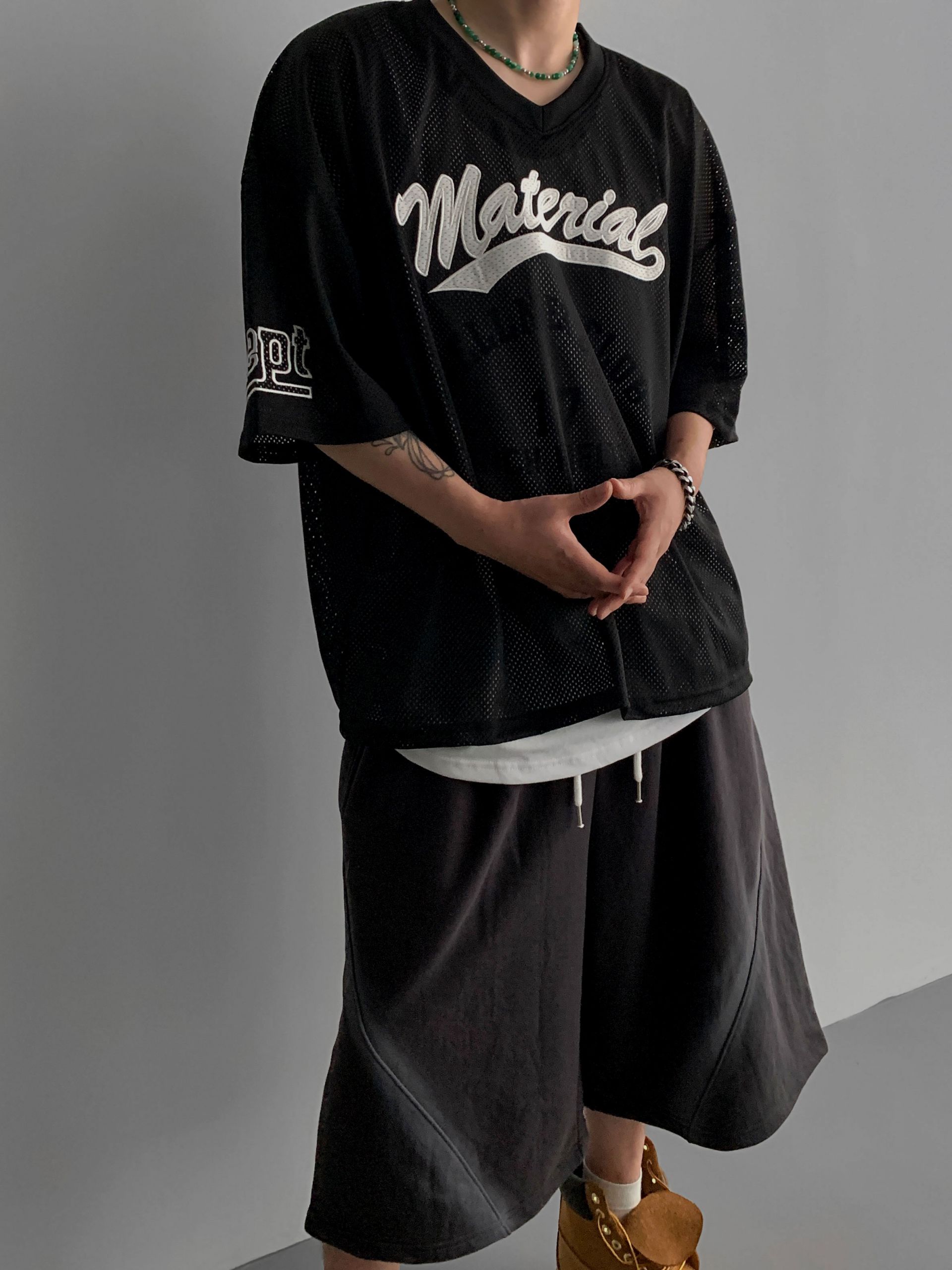 메테리얼 메쉬 반팔 티셔츠 (5colors)