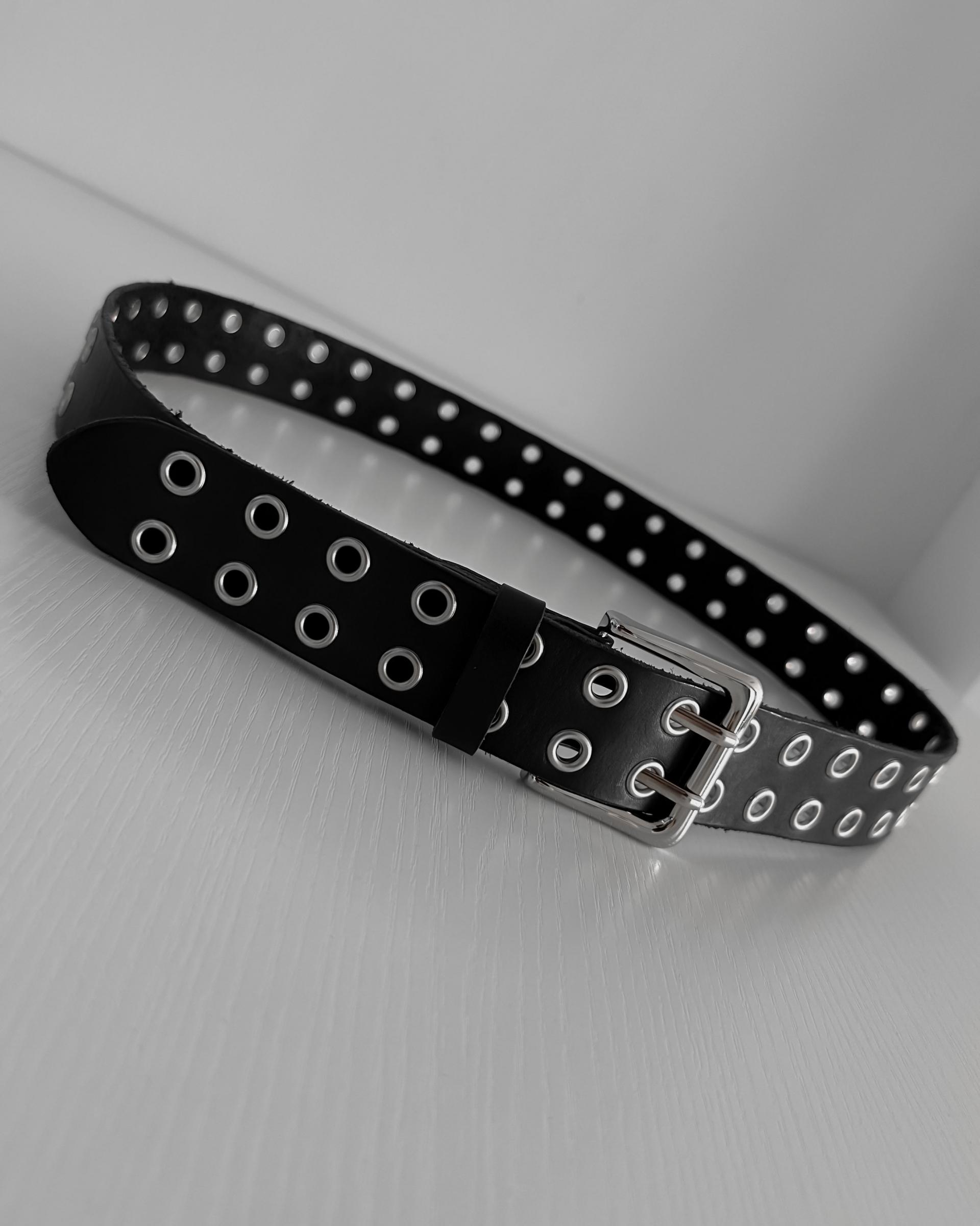 -벨트 전체에 더블 아일렛 디테일