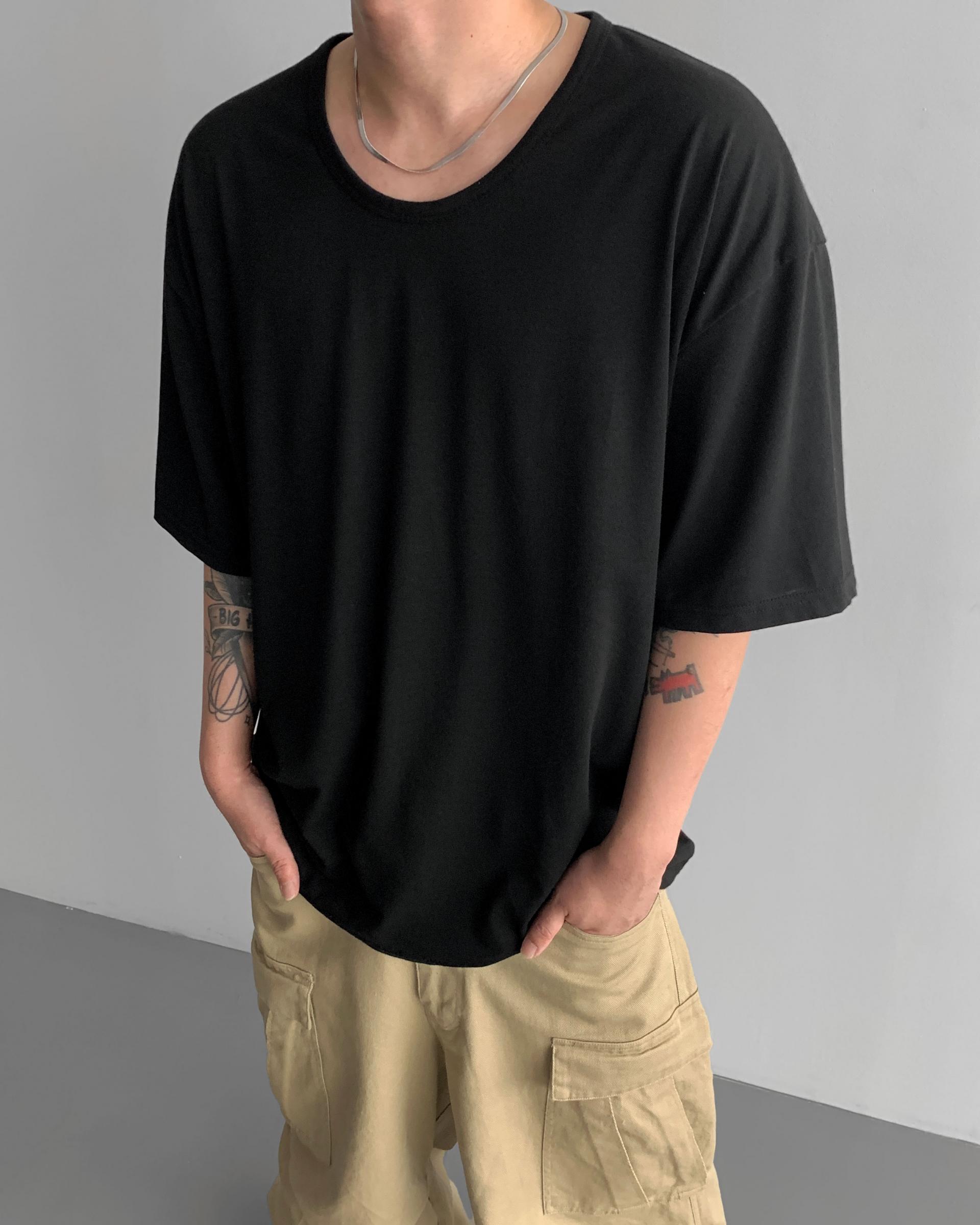 실크 오버 U 넥 반팔 티셔츠 (6colors)