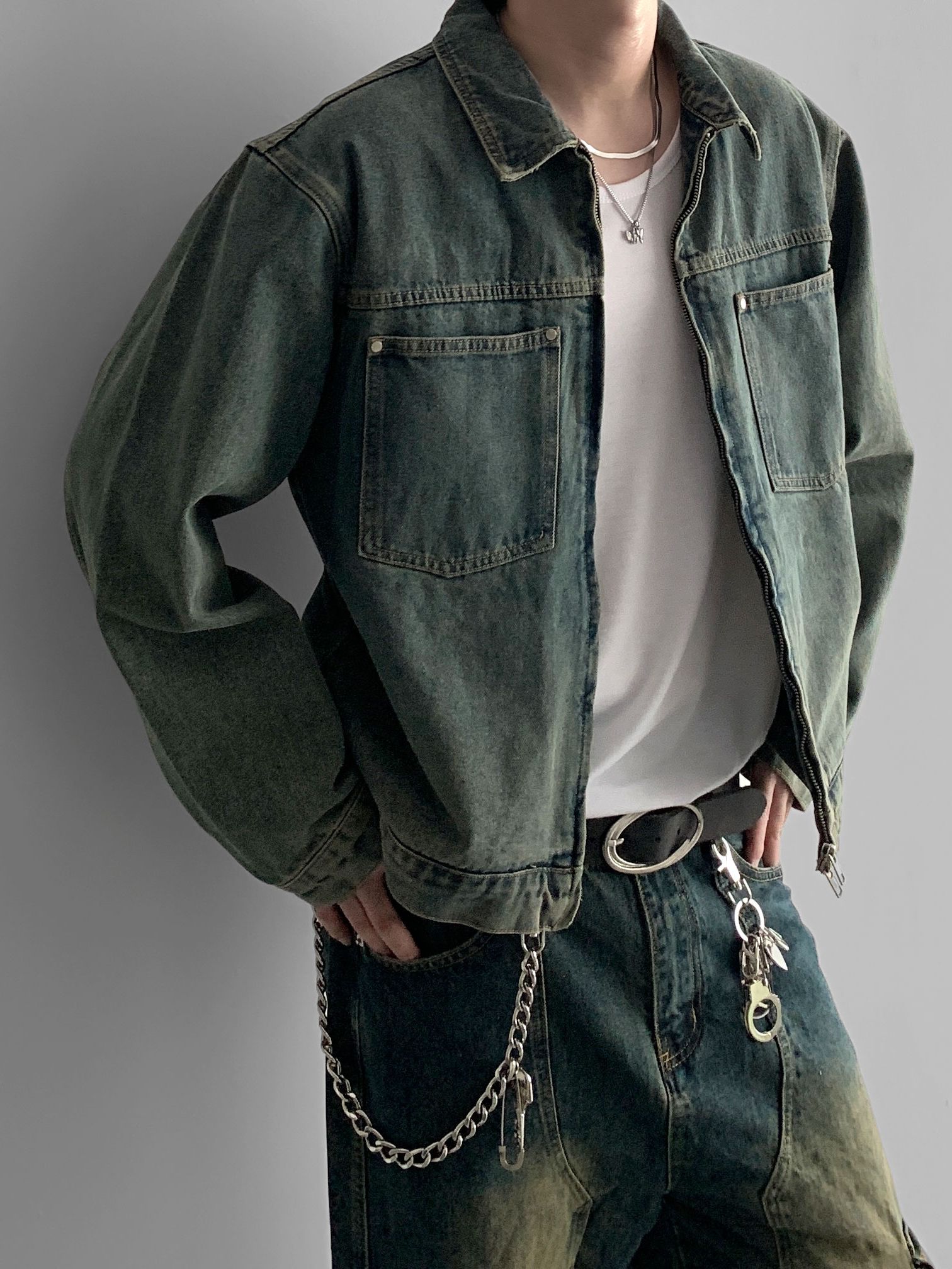 절개 포켓 크롭 데님 자켓 (2colors)
