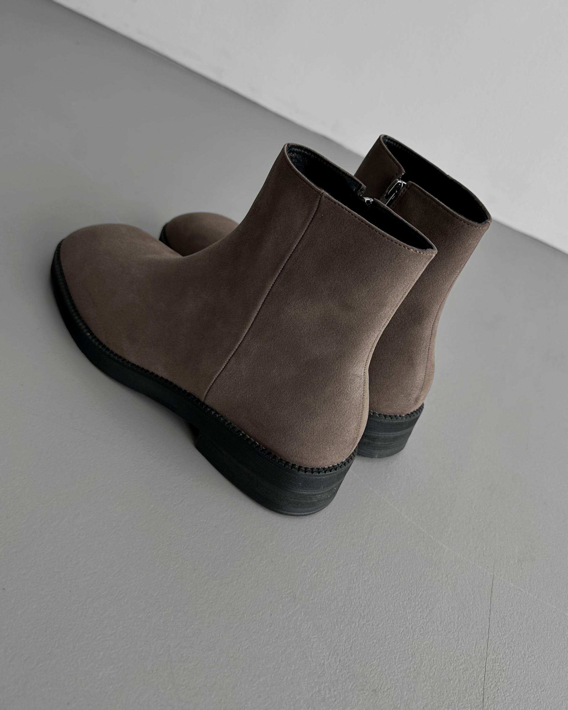 -브라운 컬러는 스웨이드 질감의 매트한 소재