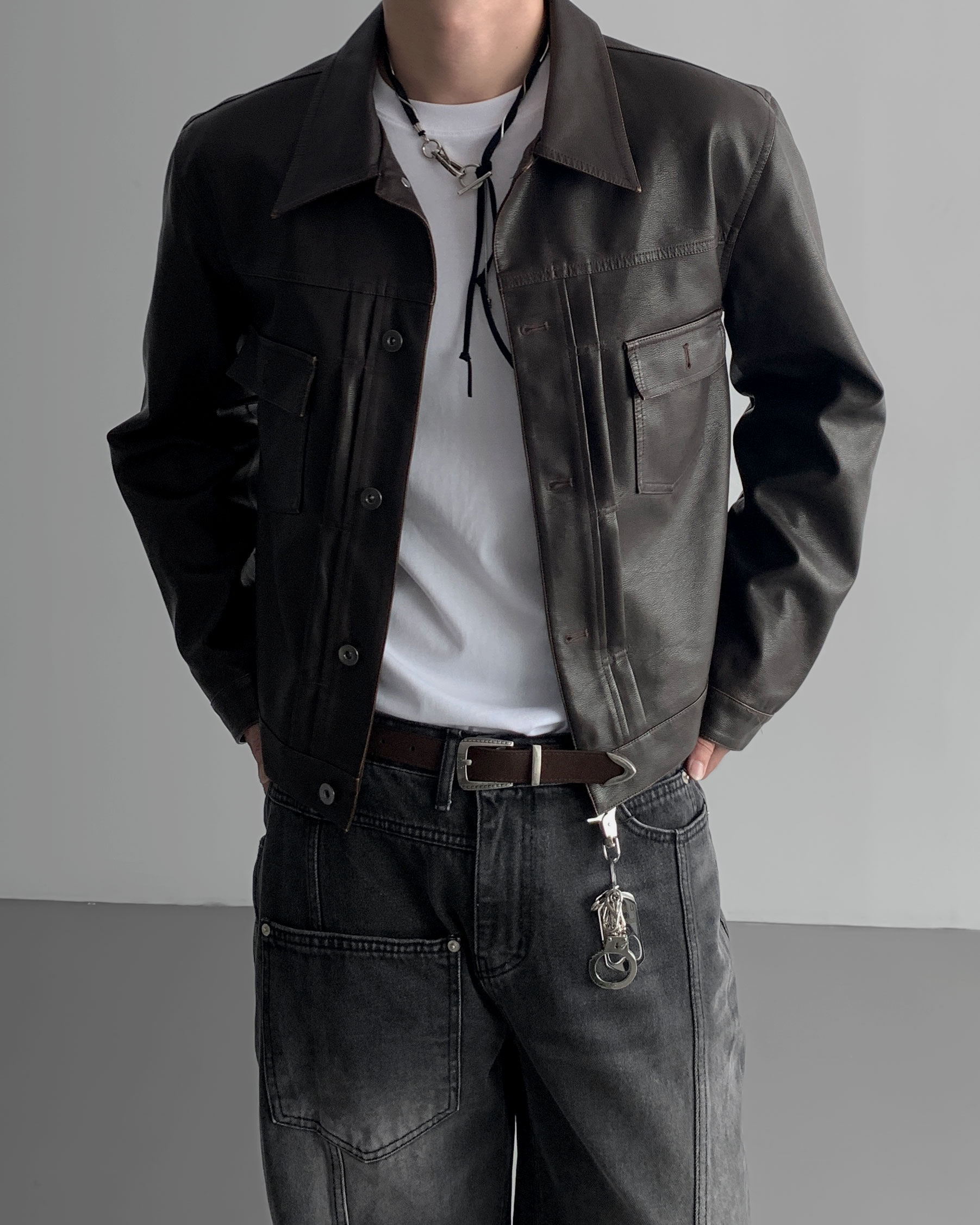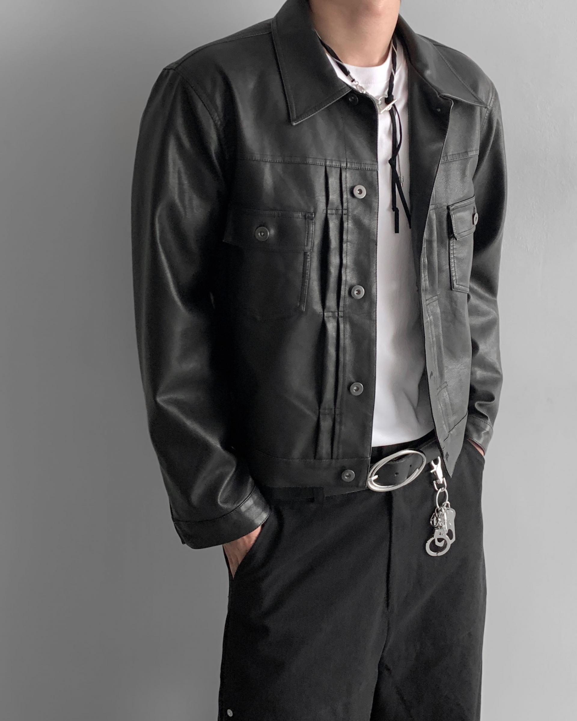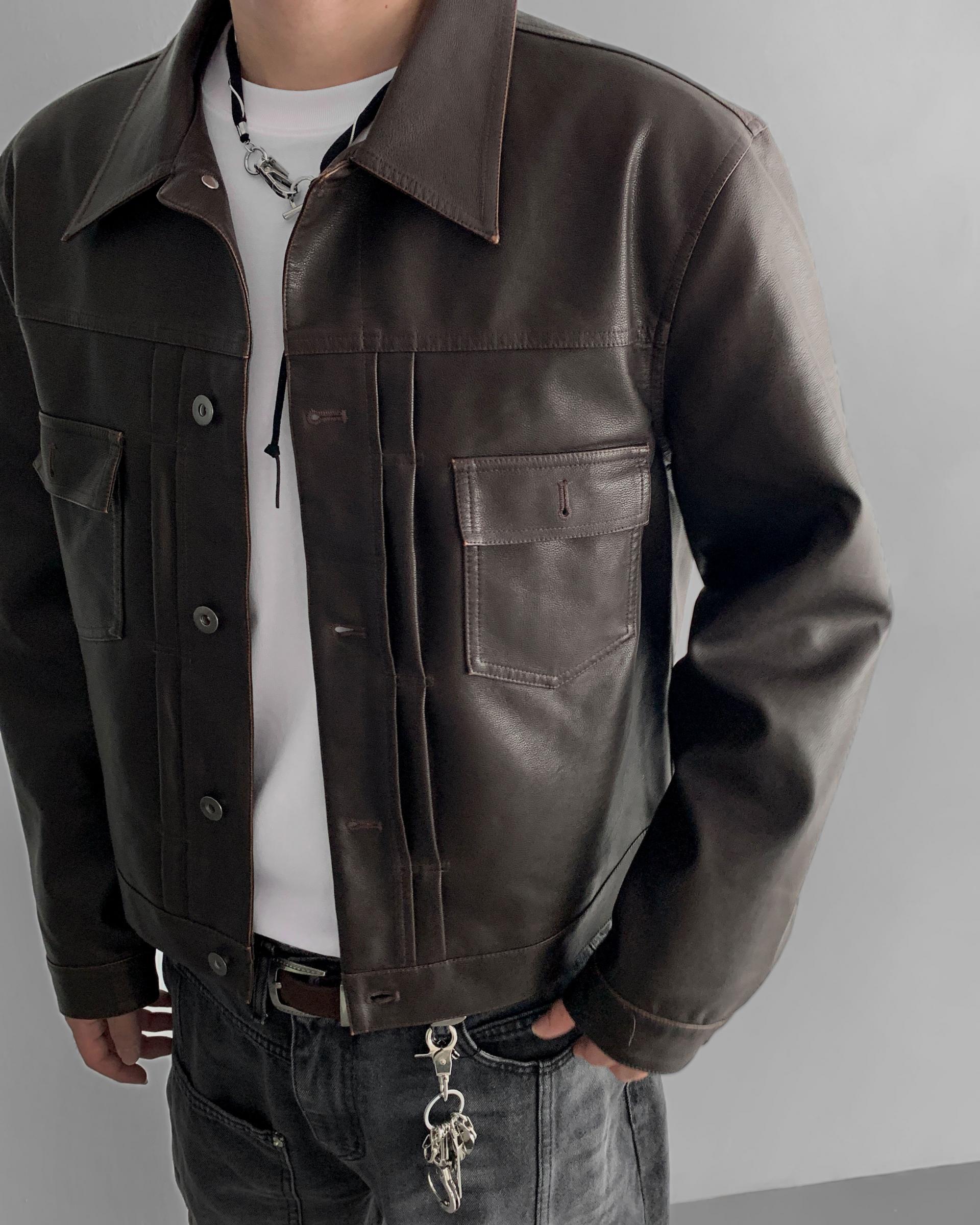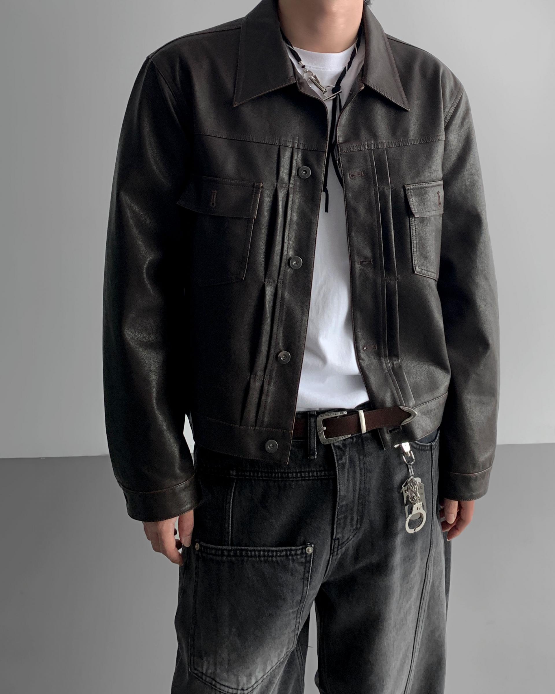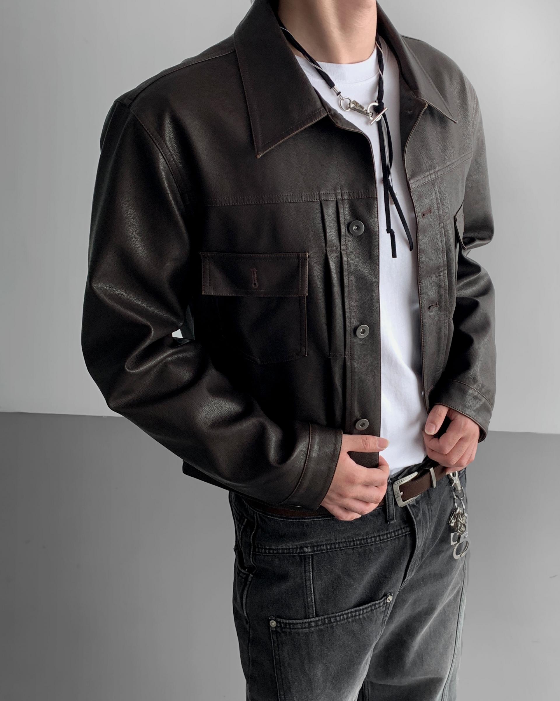 -트러커 자켓 디자인의 클래식한 레더 자켓
