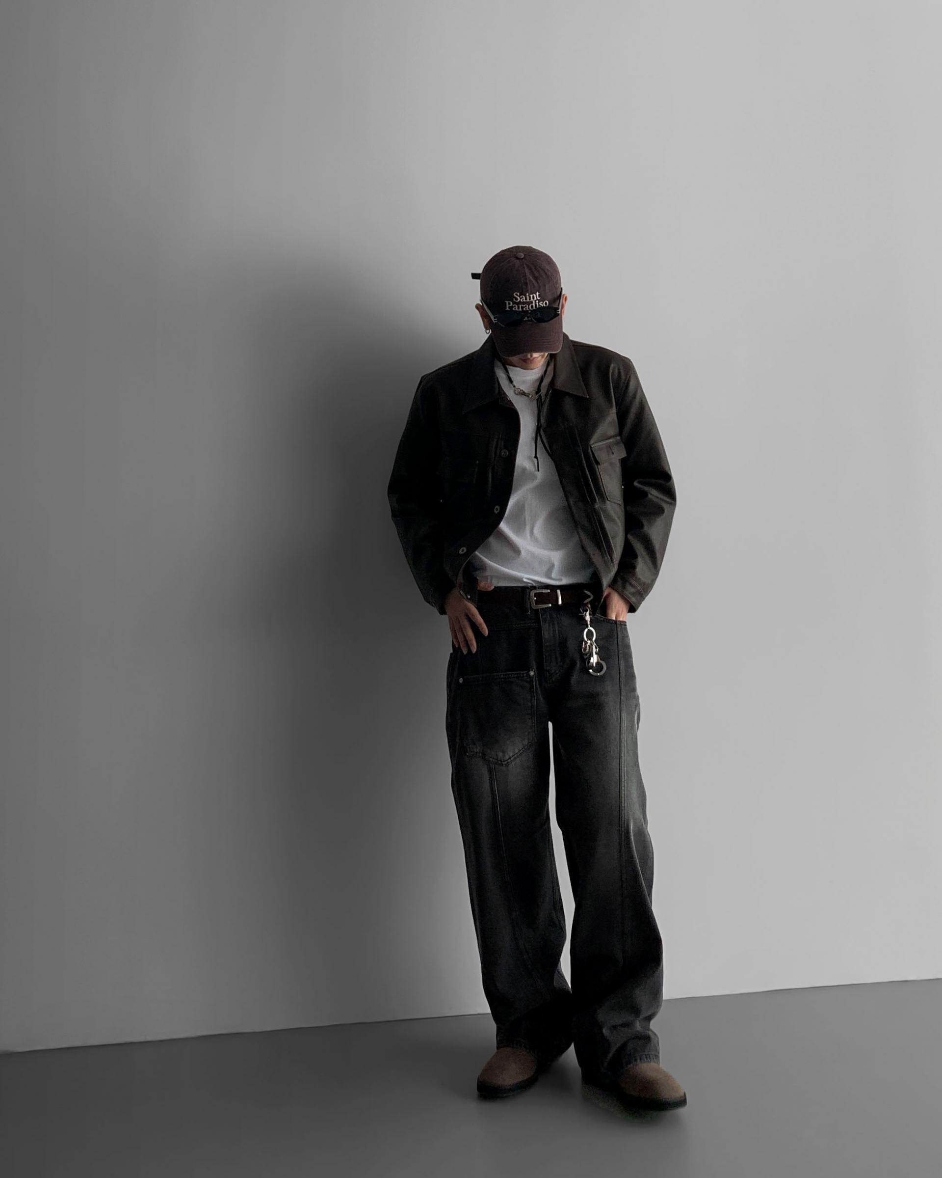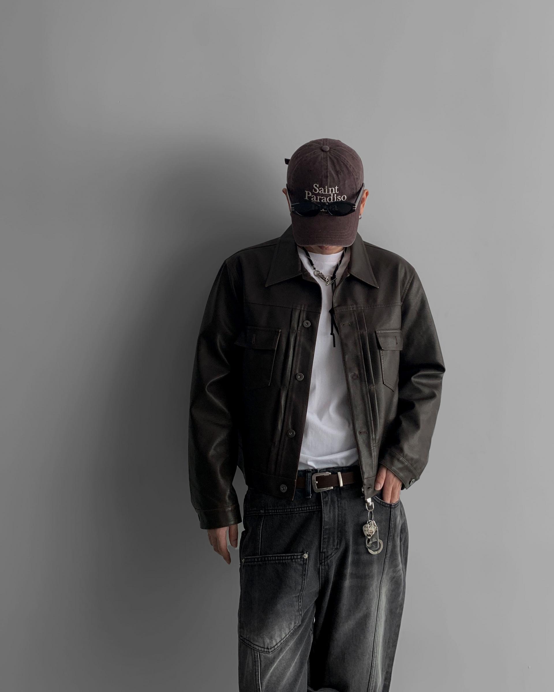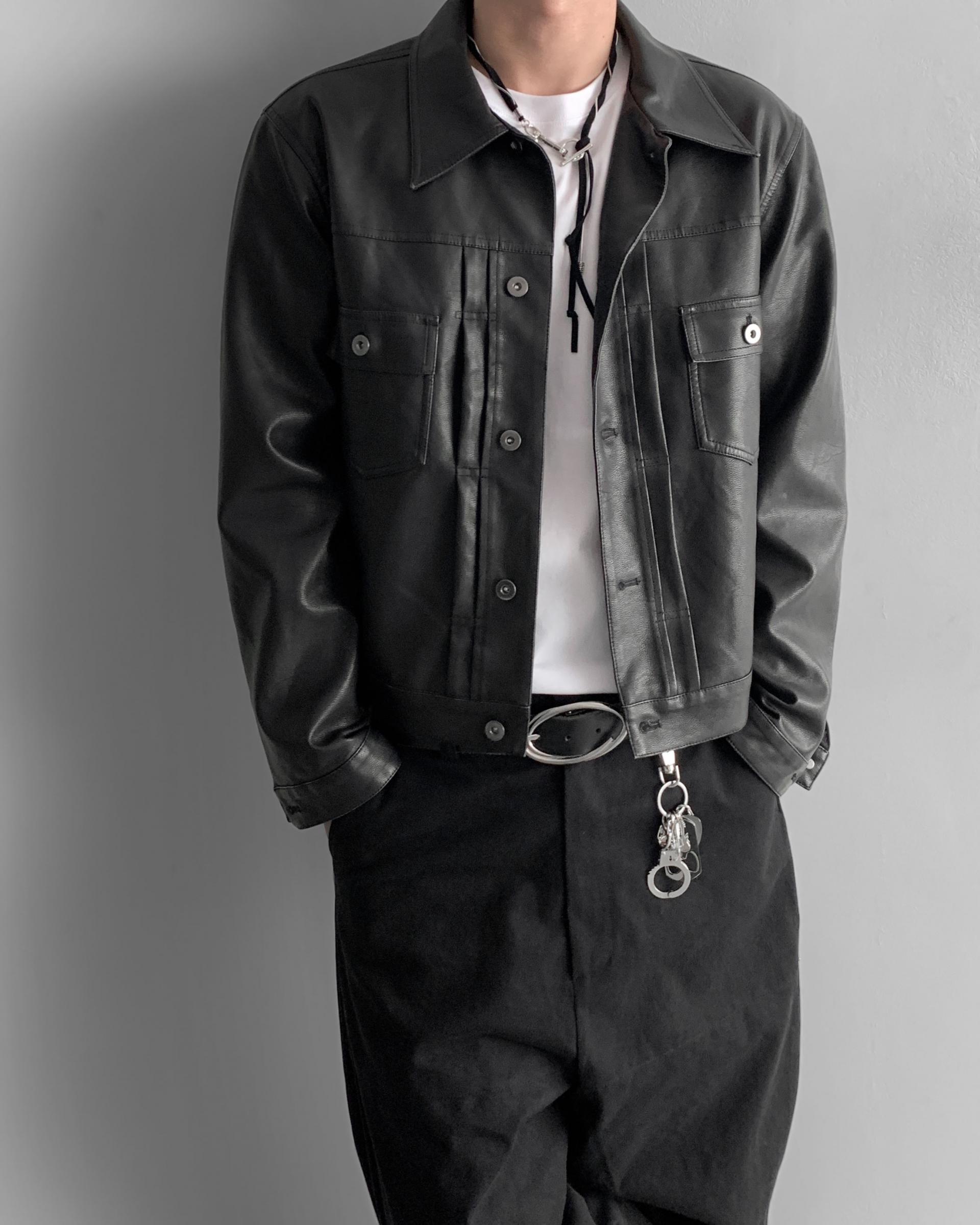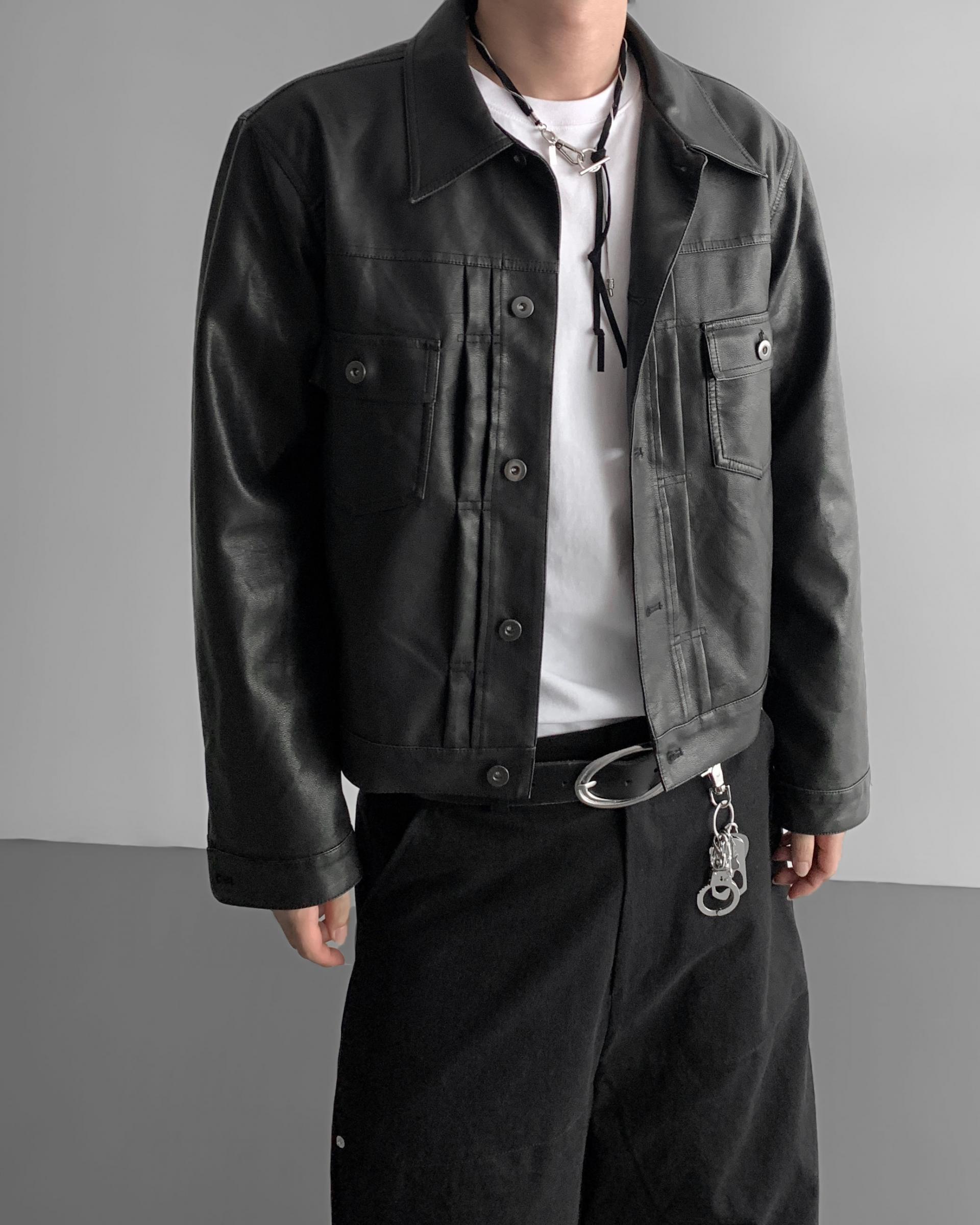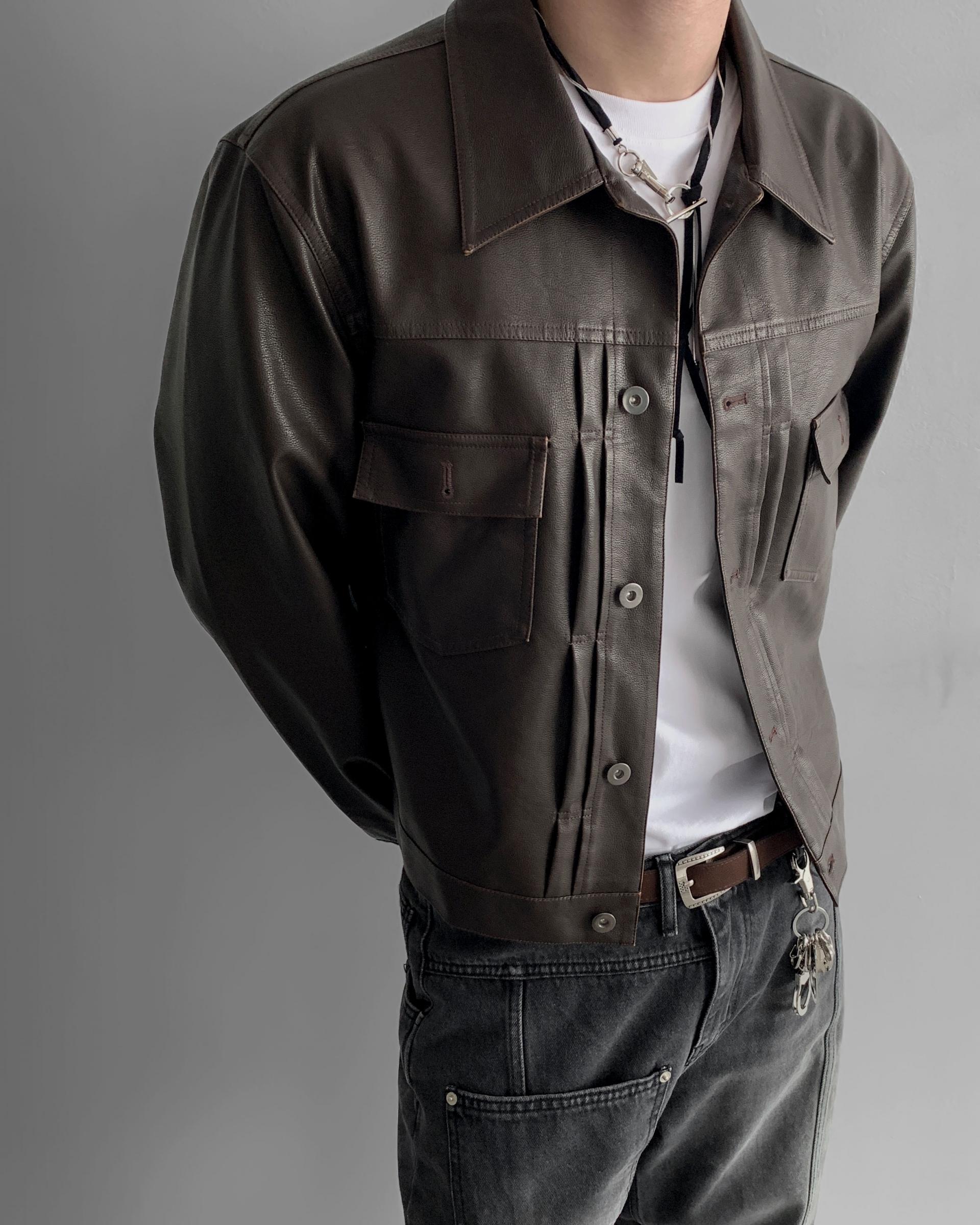 -트러커 자켓 디자인의 클래식한 레더 자켓