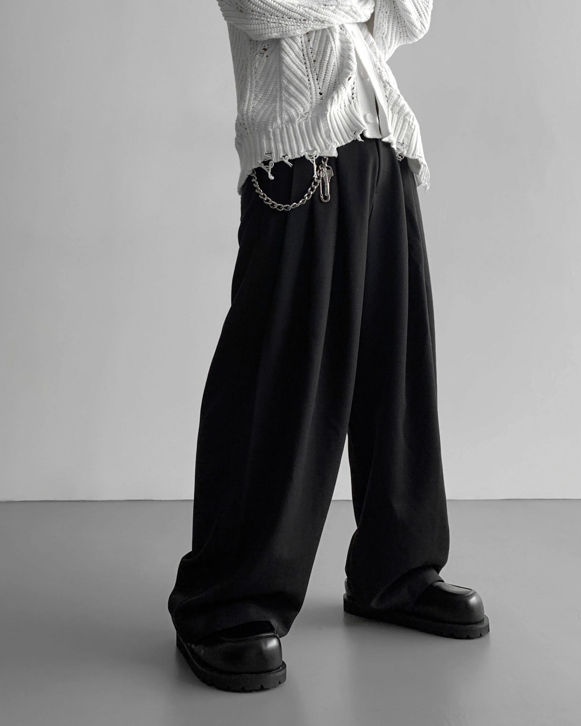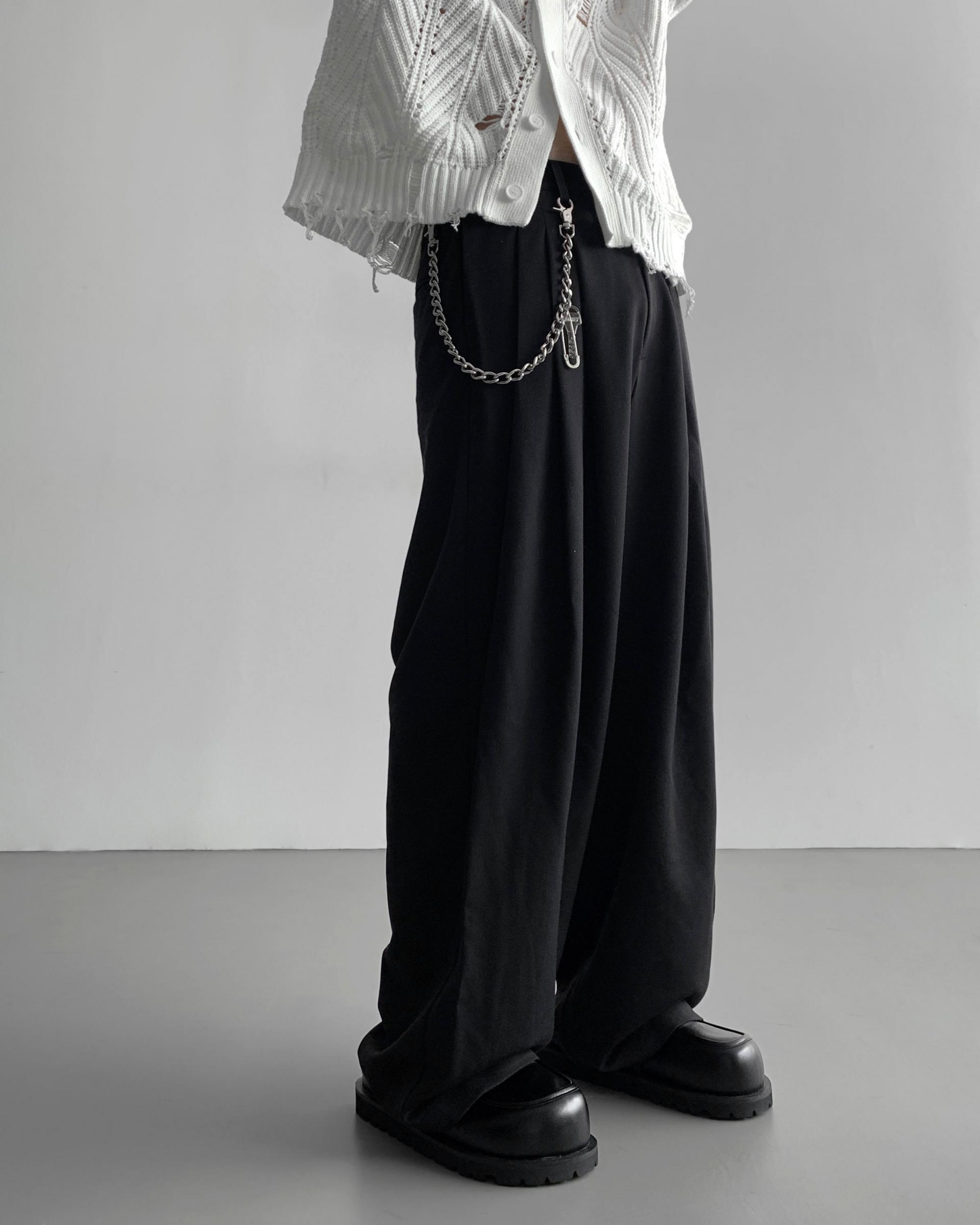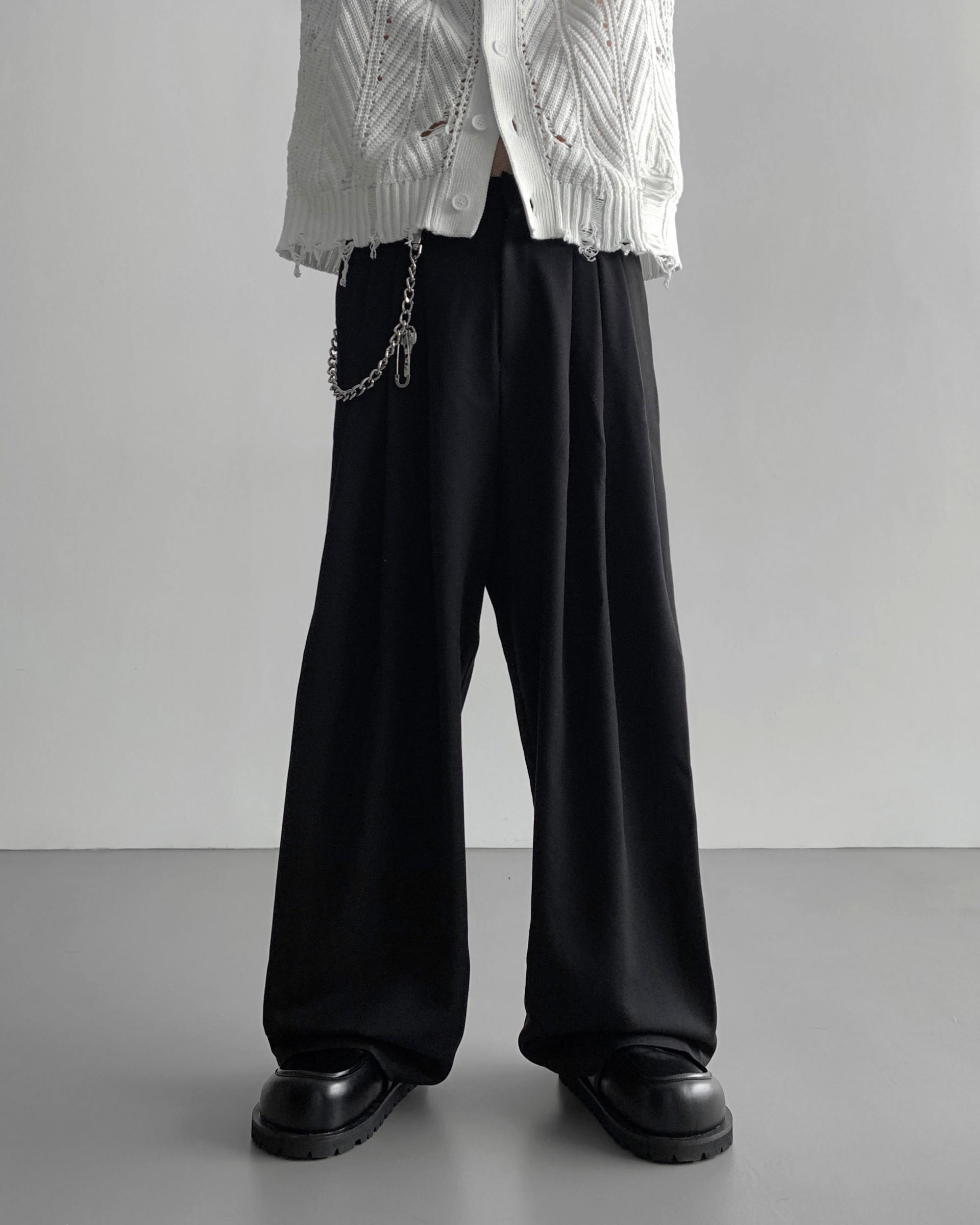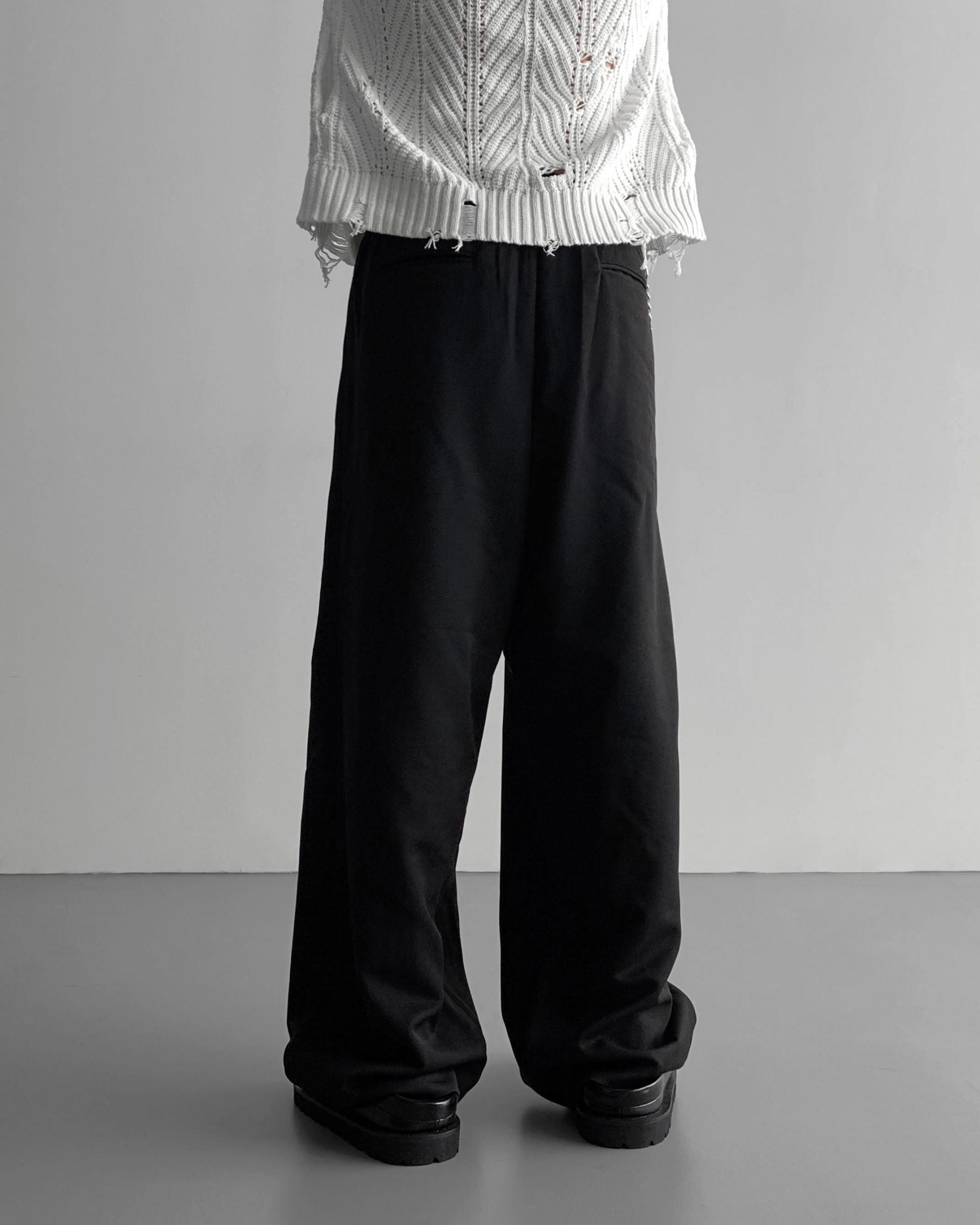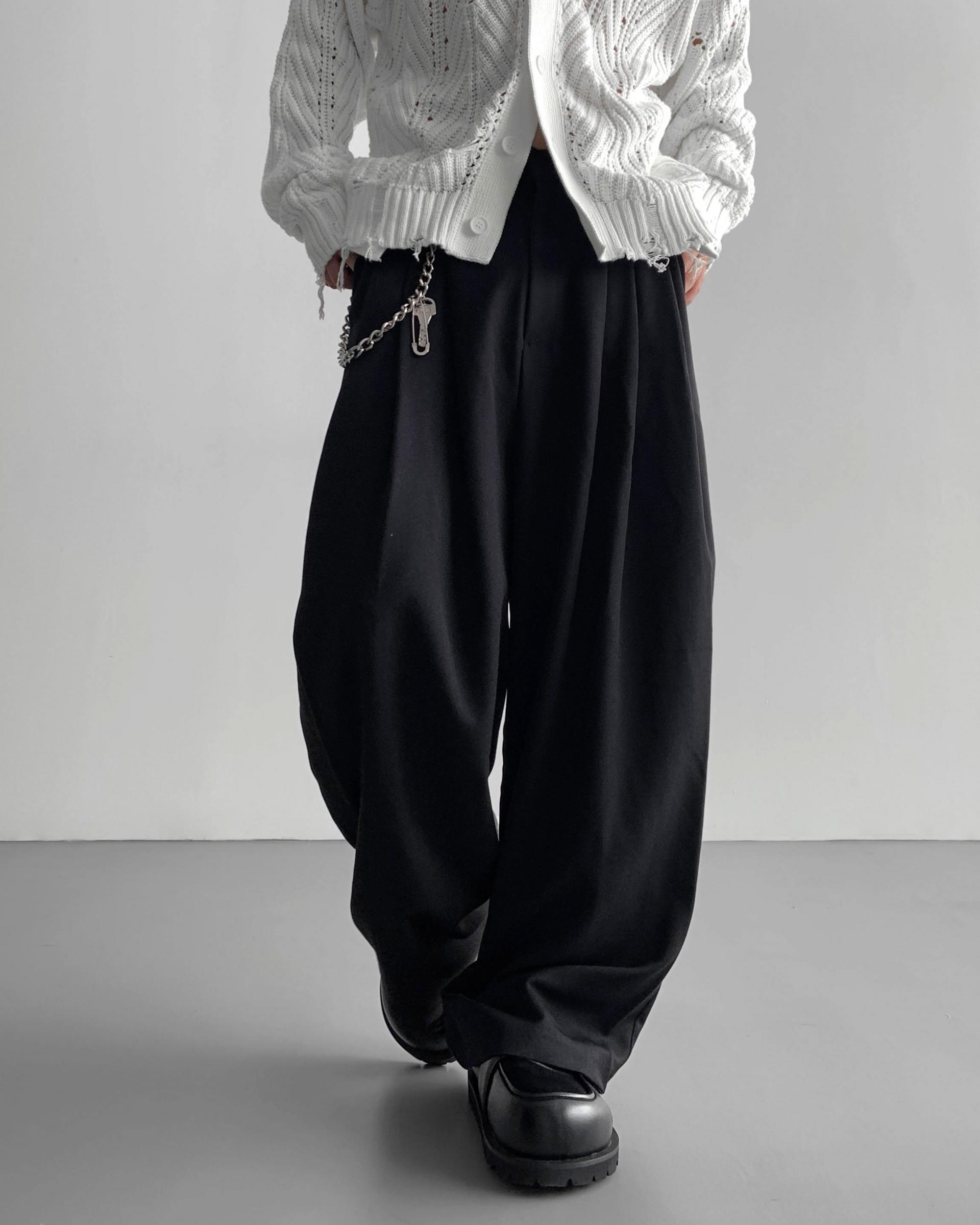 -밑위가 길어 일반적인 슬랙스와 다르게 힙한 느낌을 나타냄