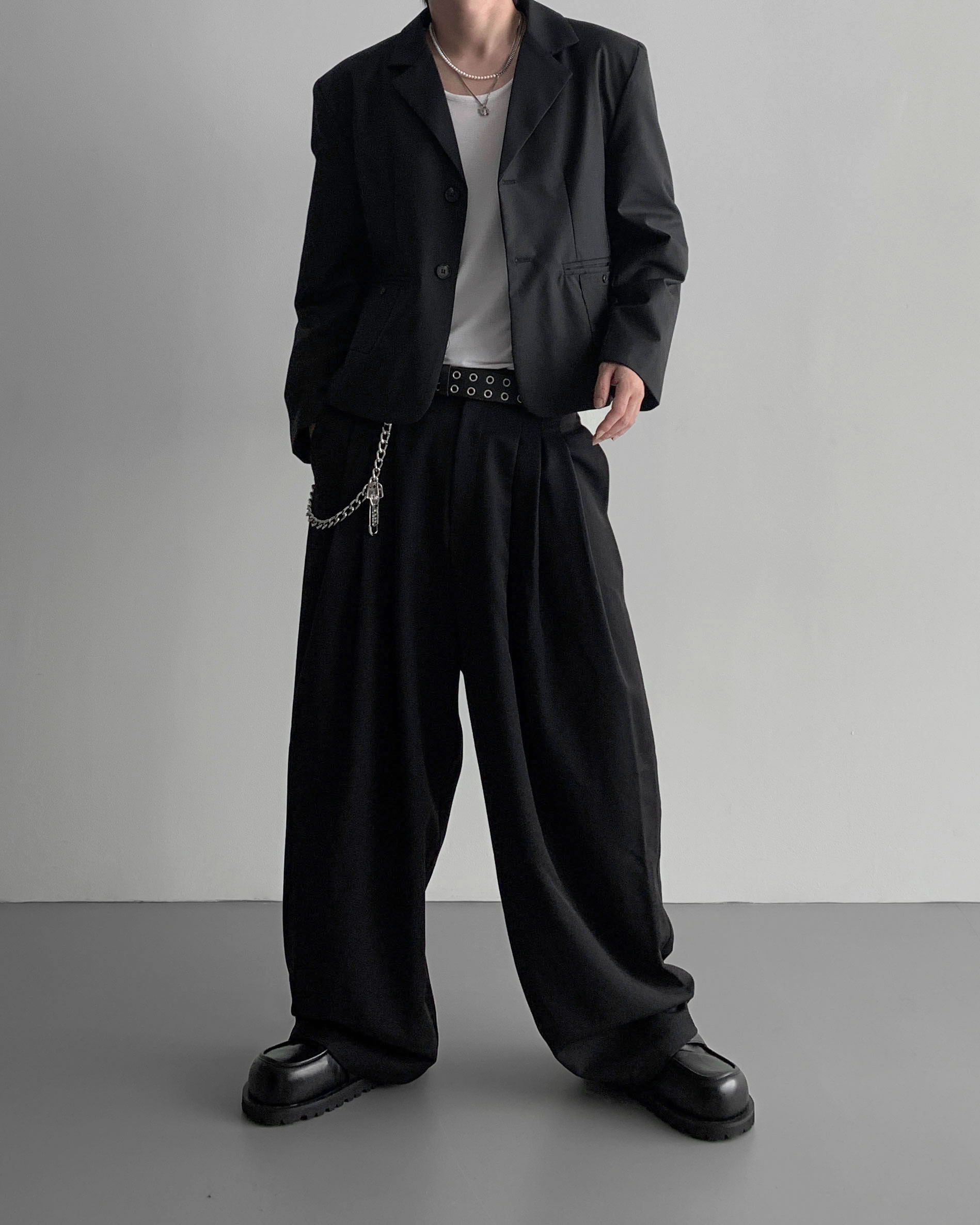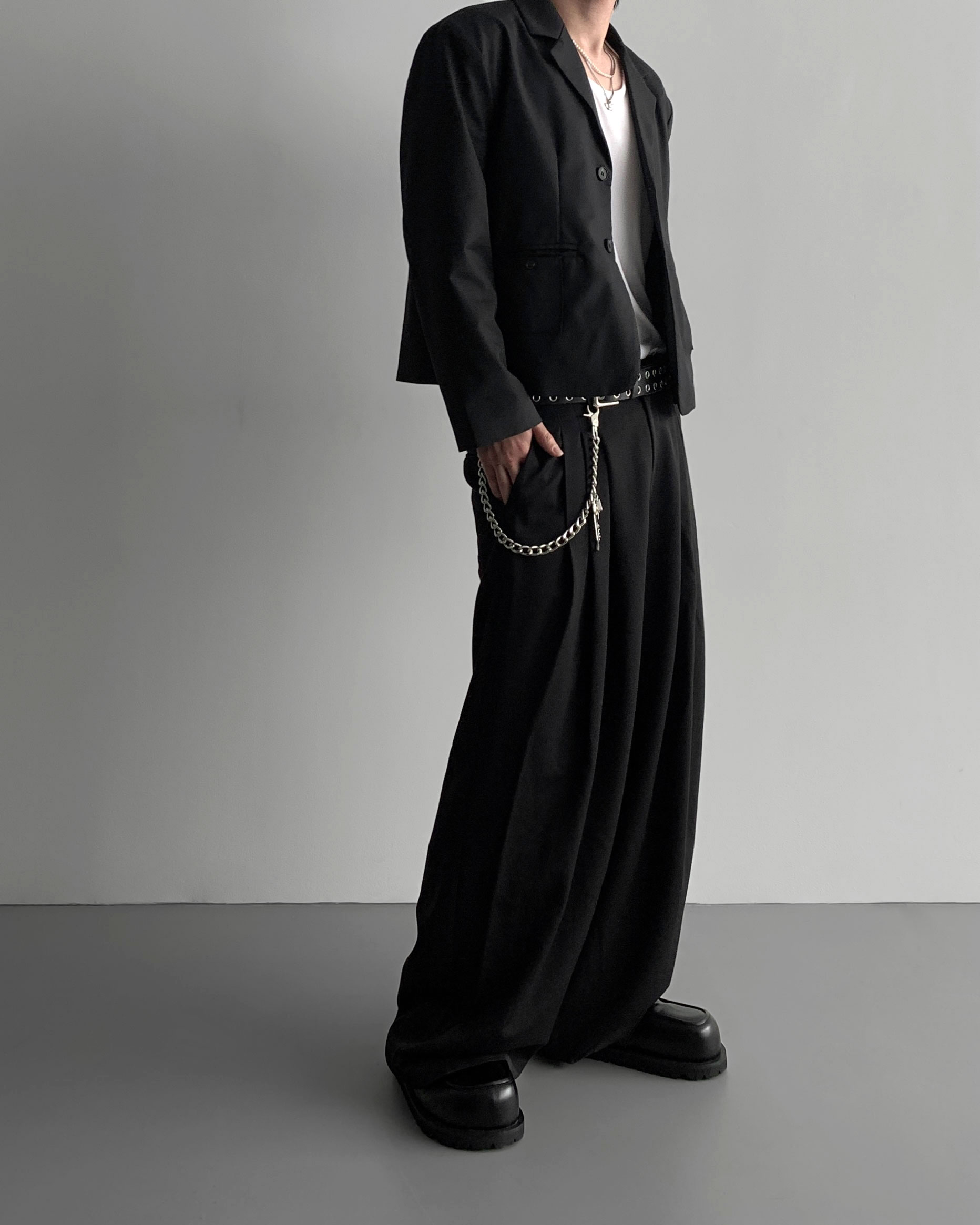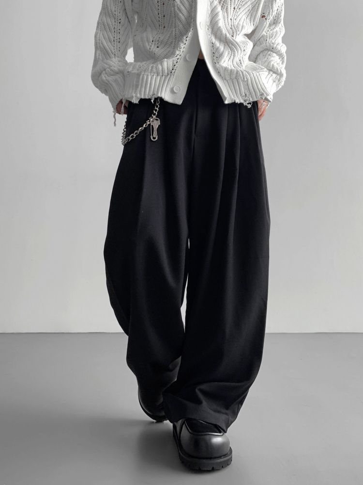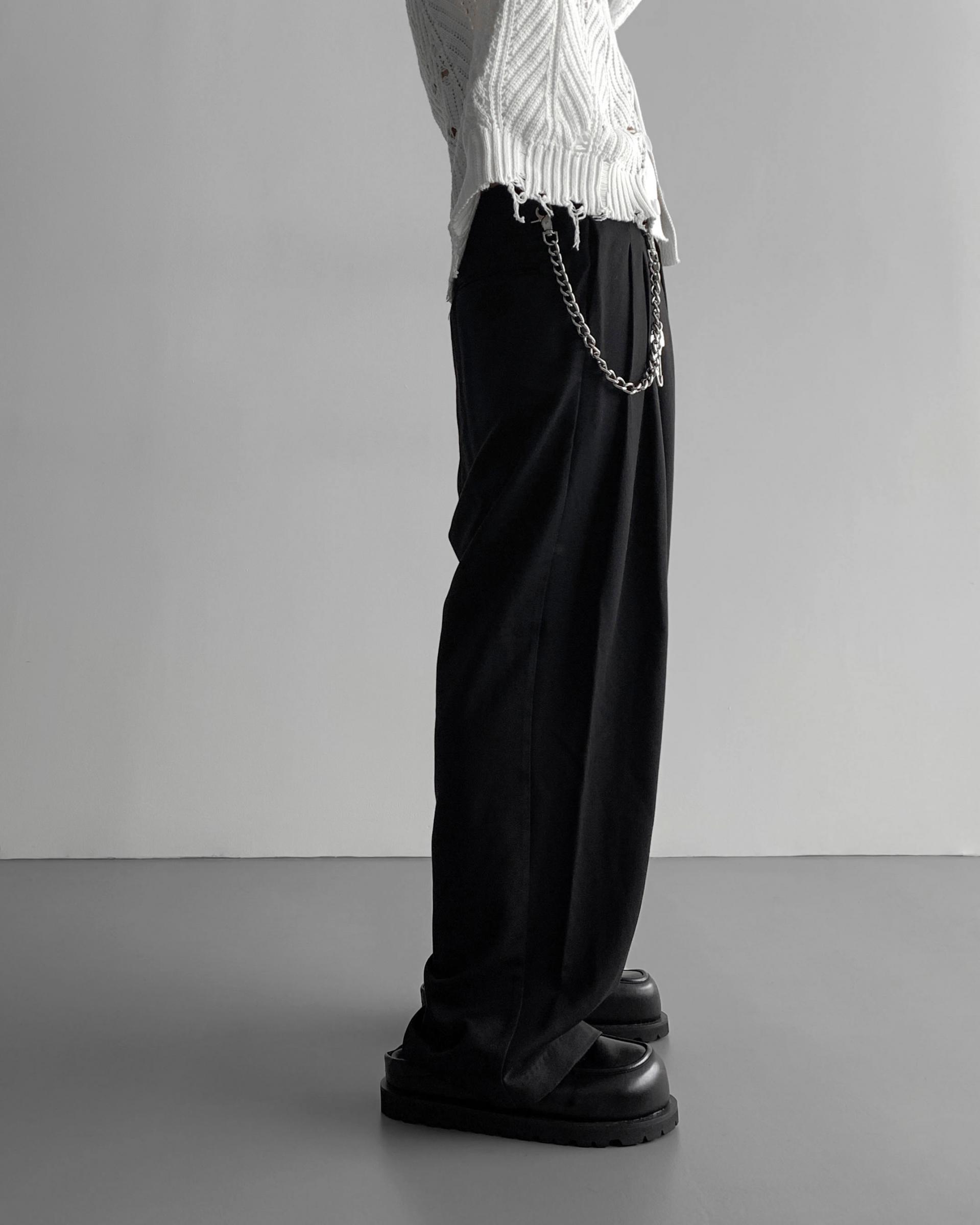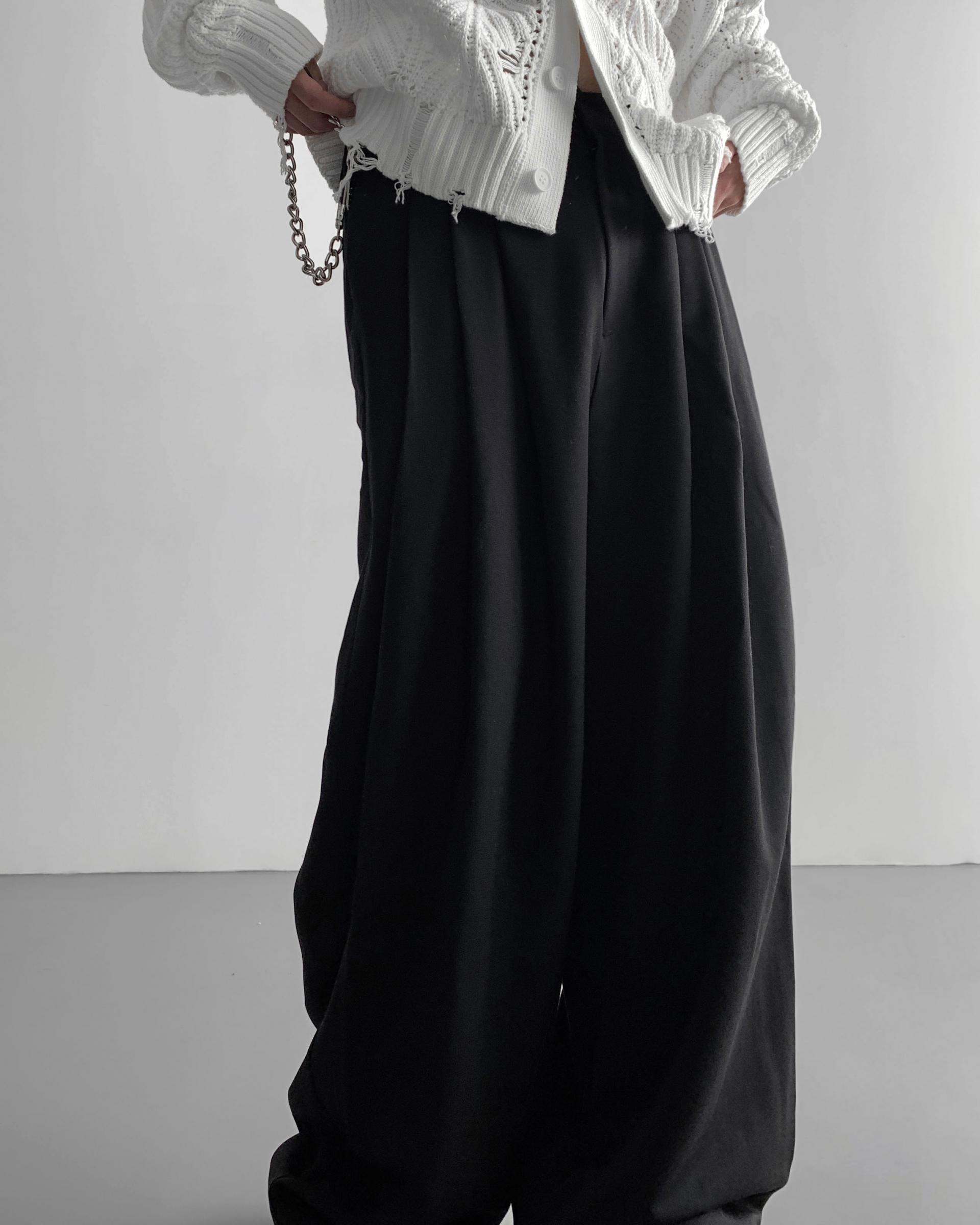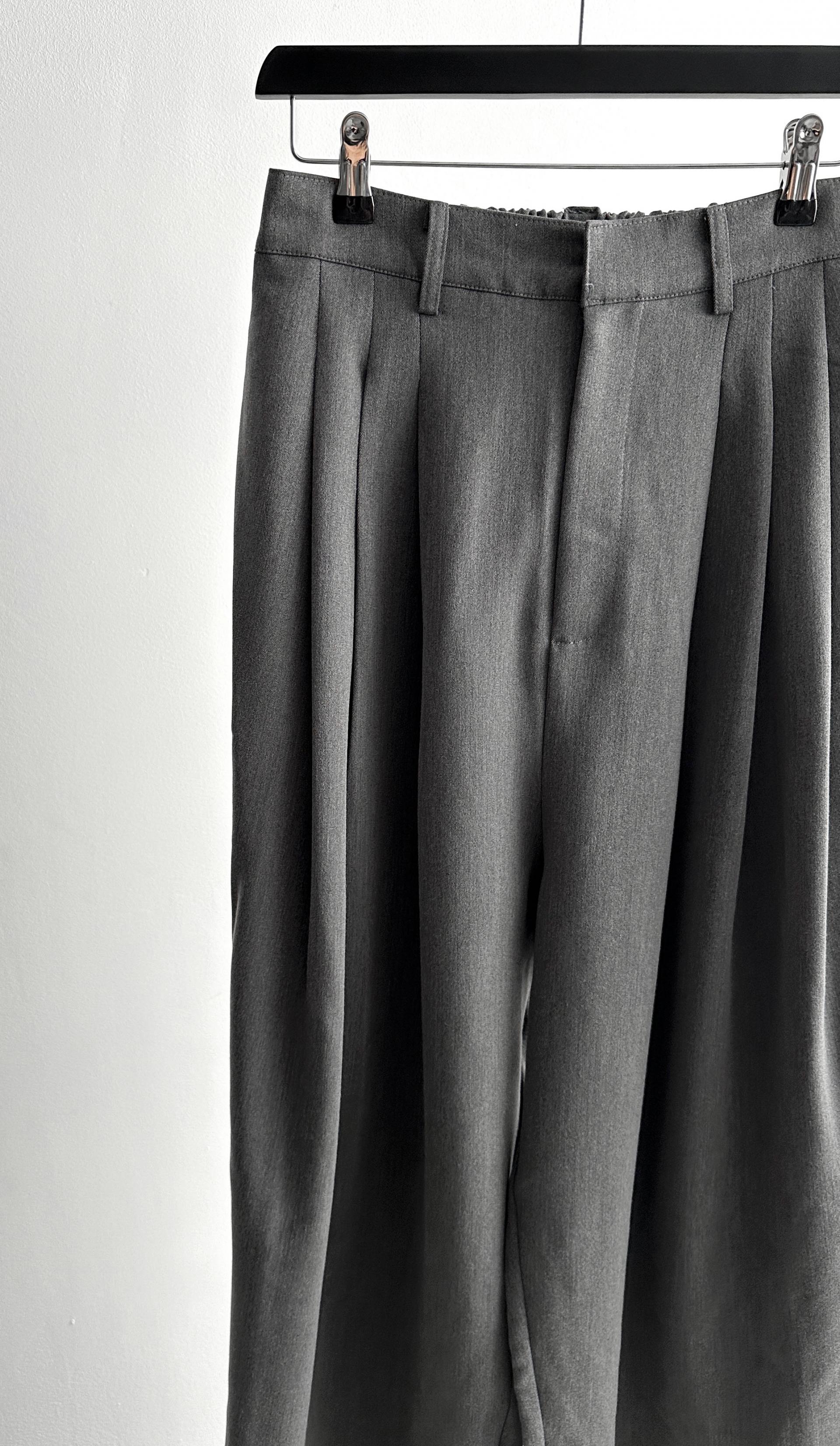 -밑위가 길어 일반적인 슬랙스와 다르게 힙한 느낌을 나타냄