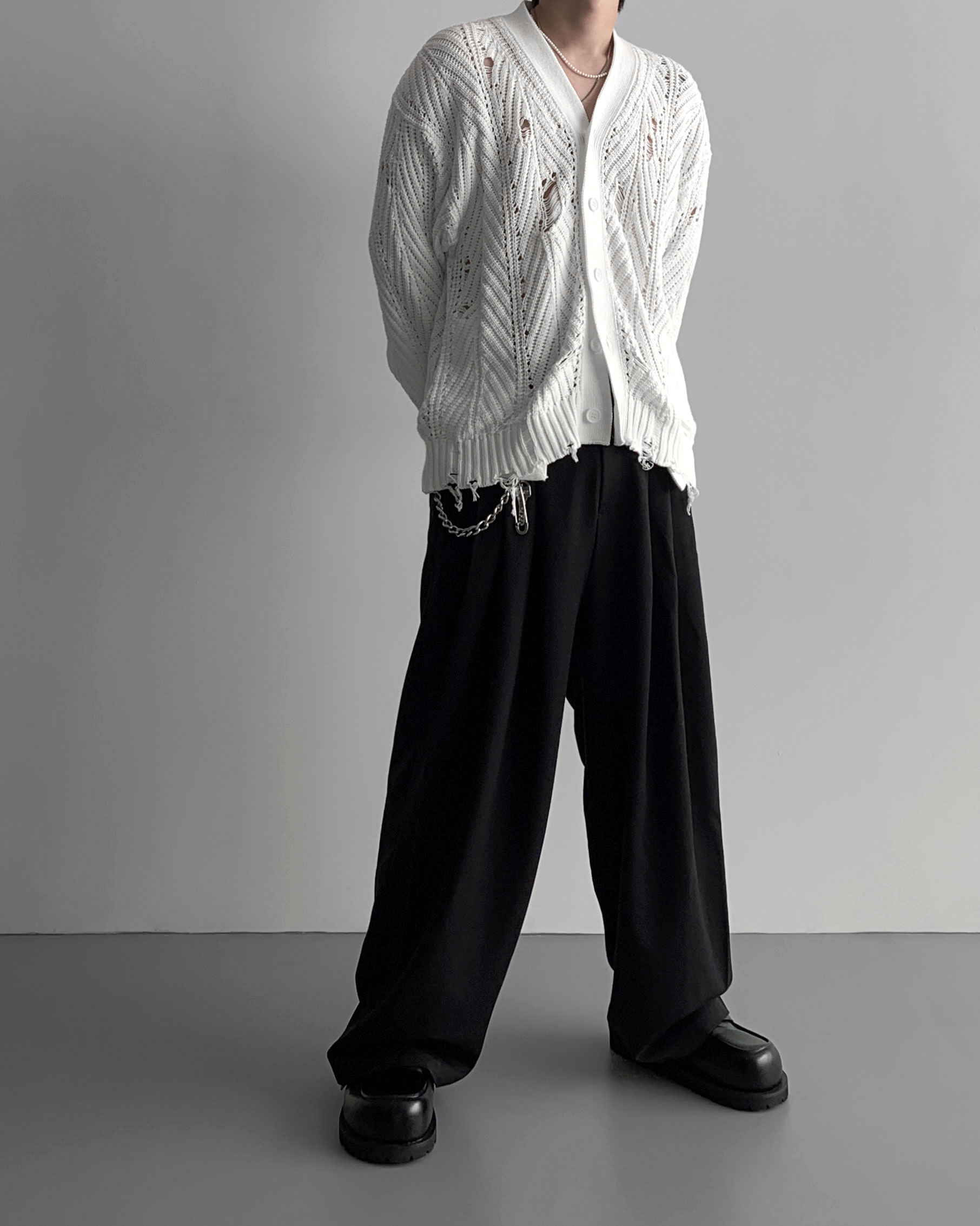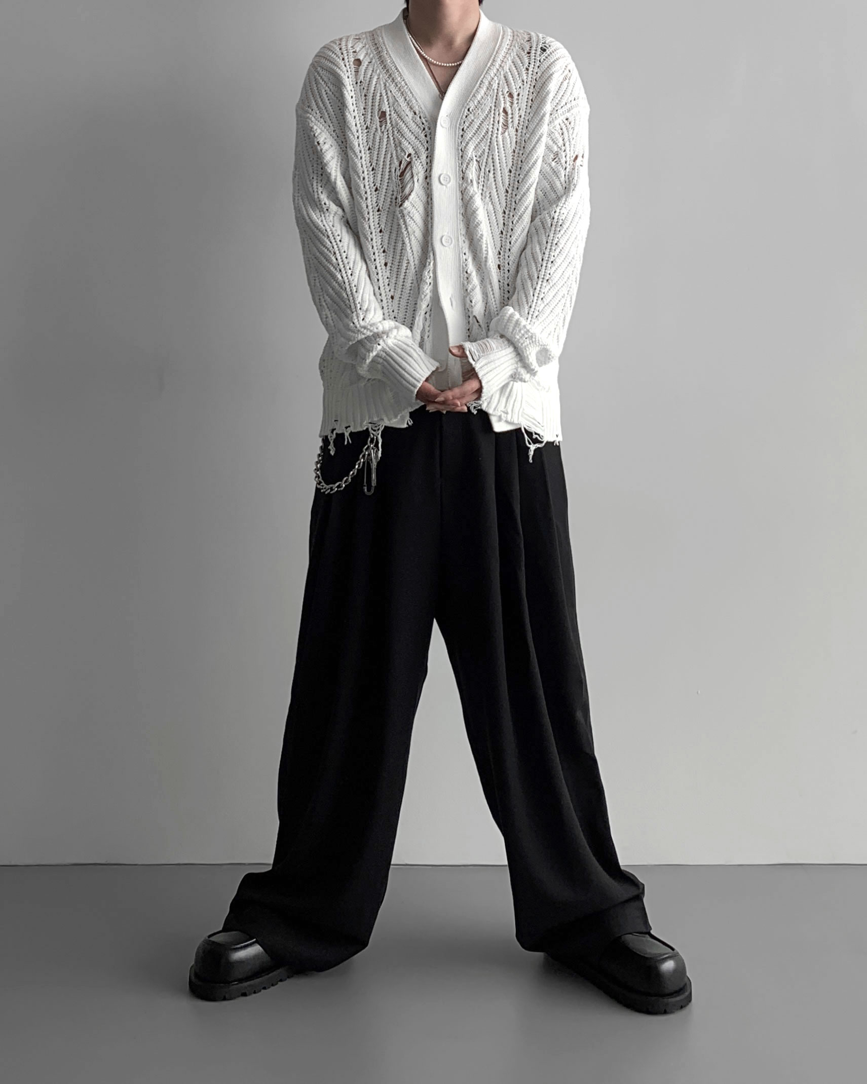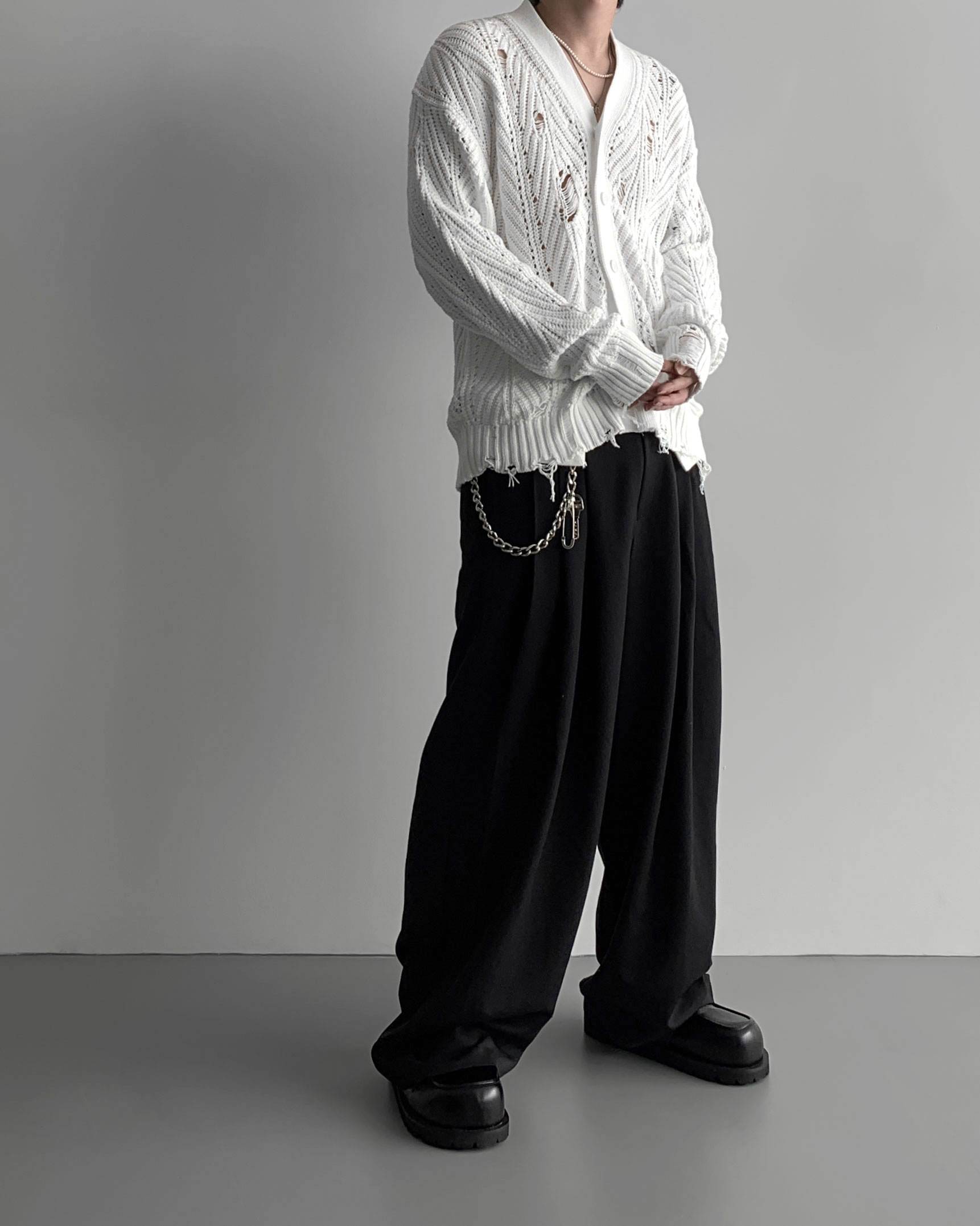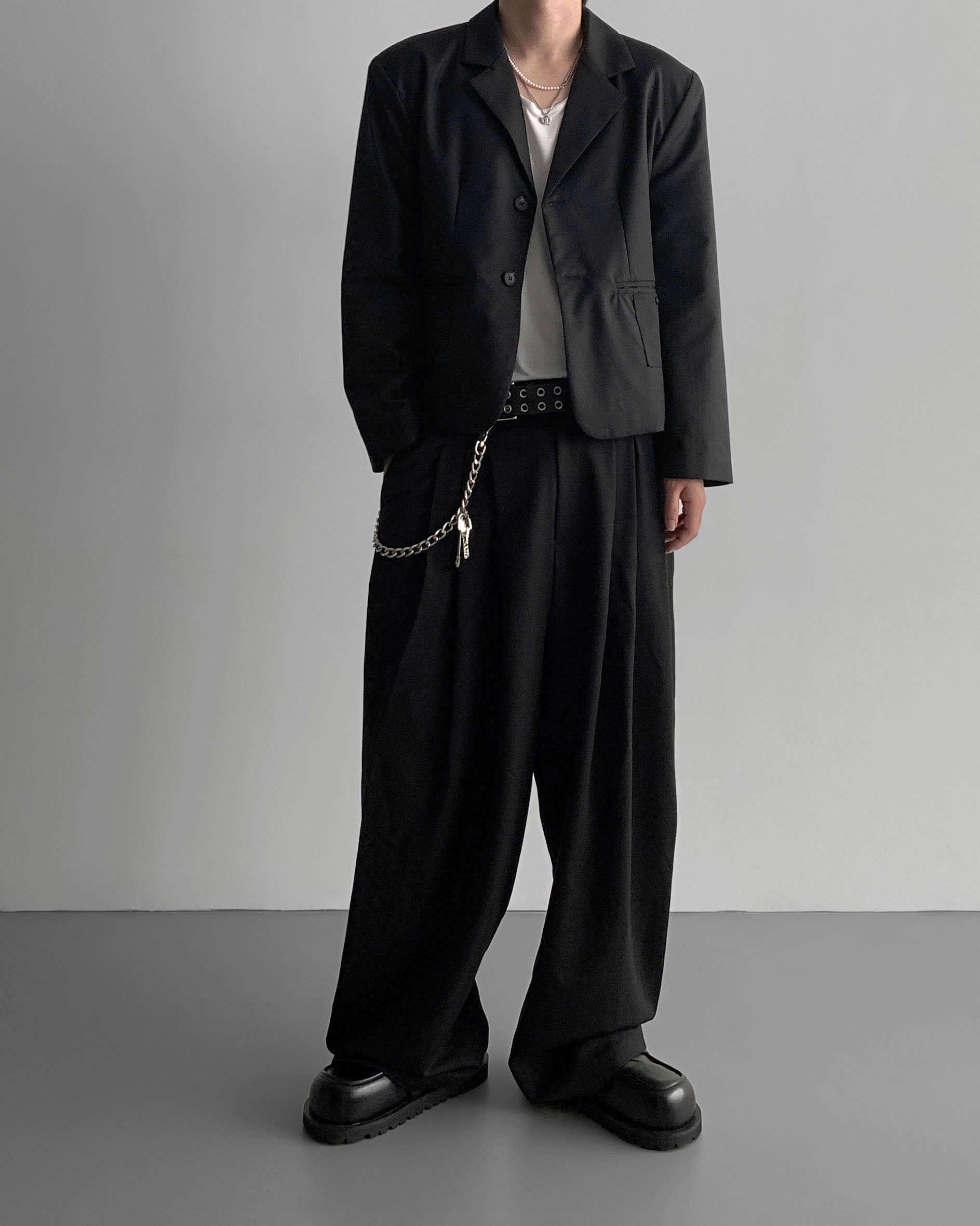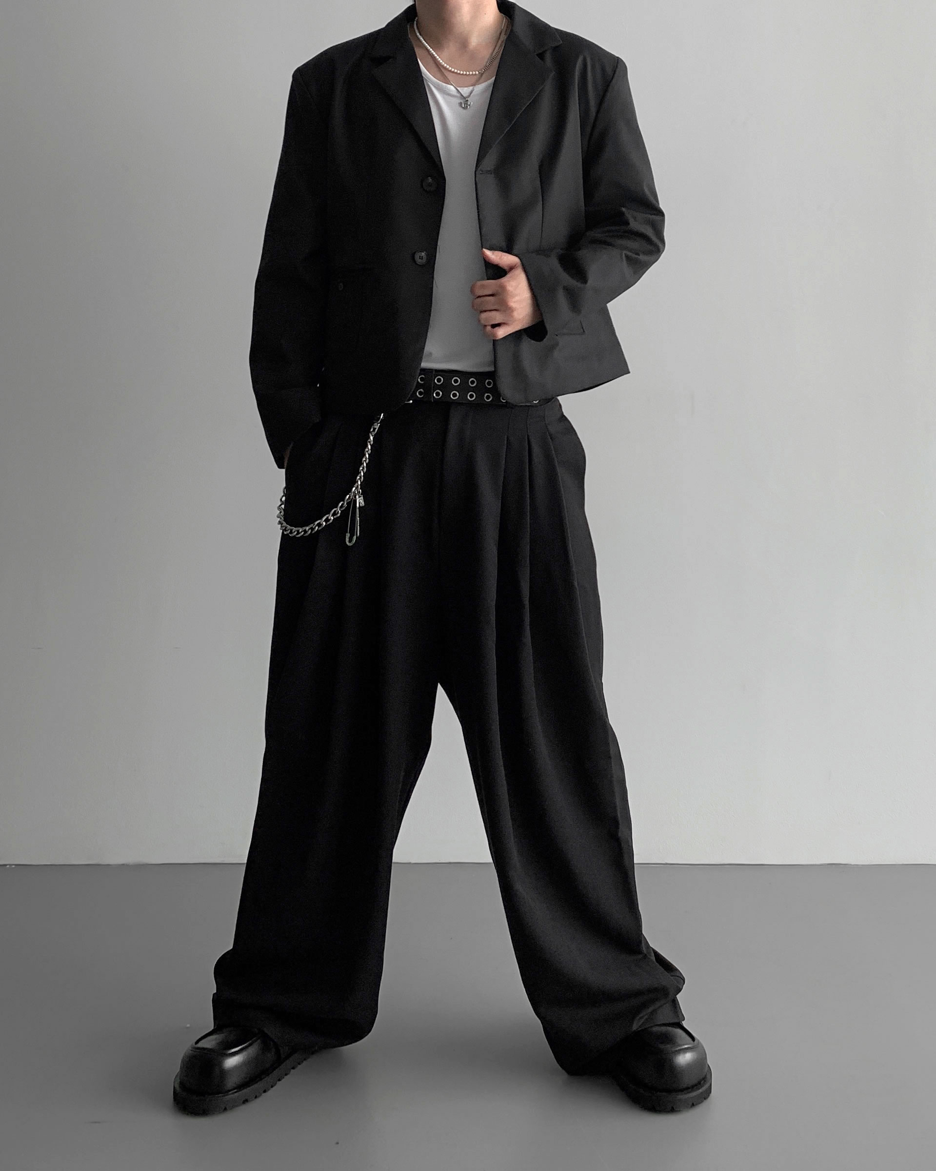 -밑위가 길어 일반적인 슬랙스와 다르게 힙한 느낌을 나타냄