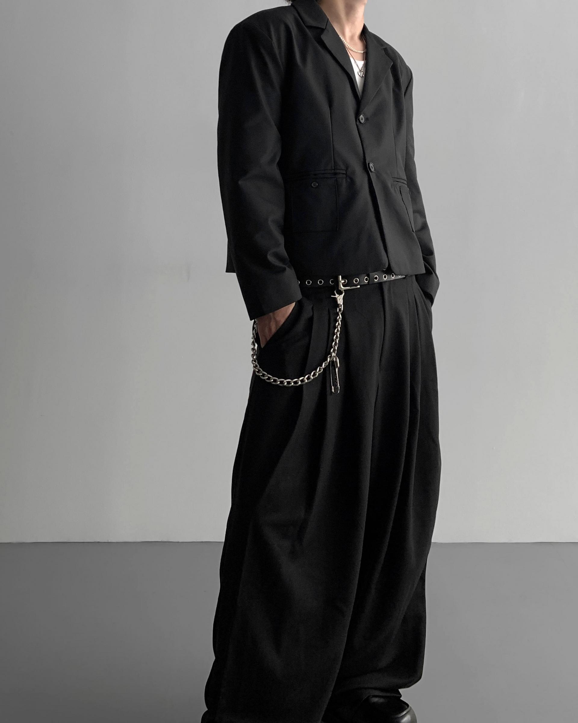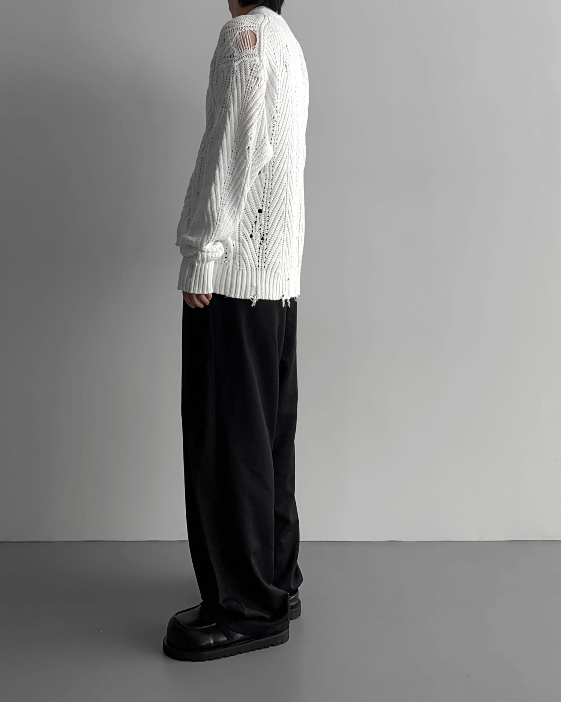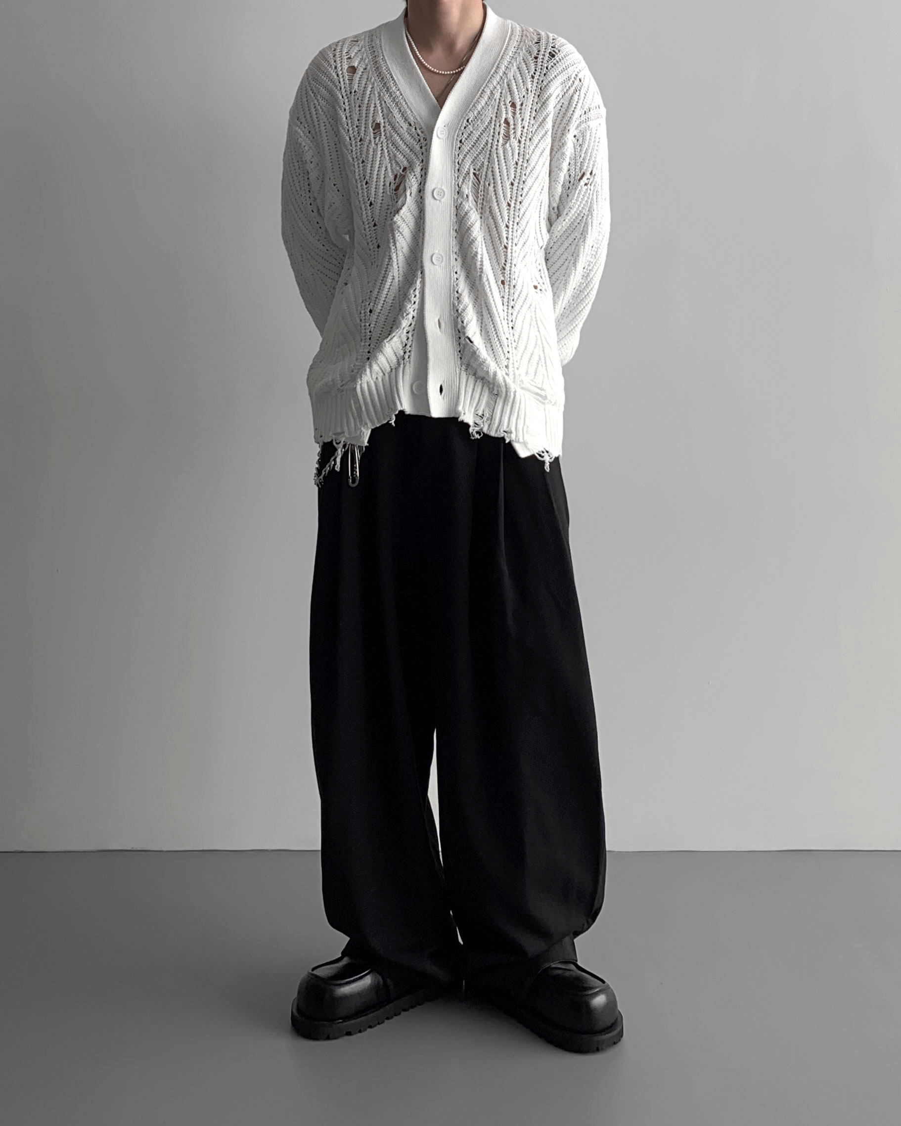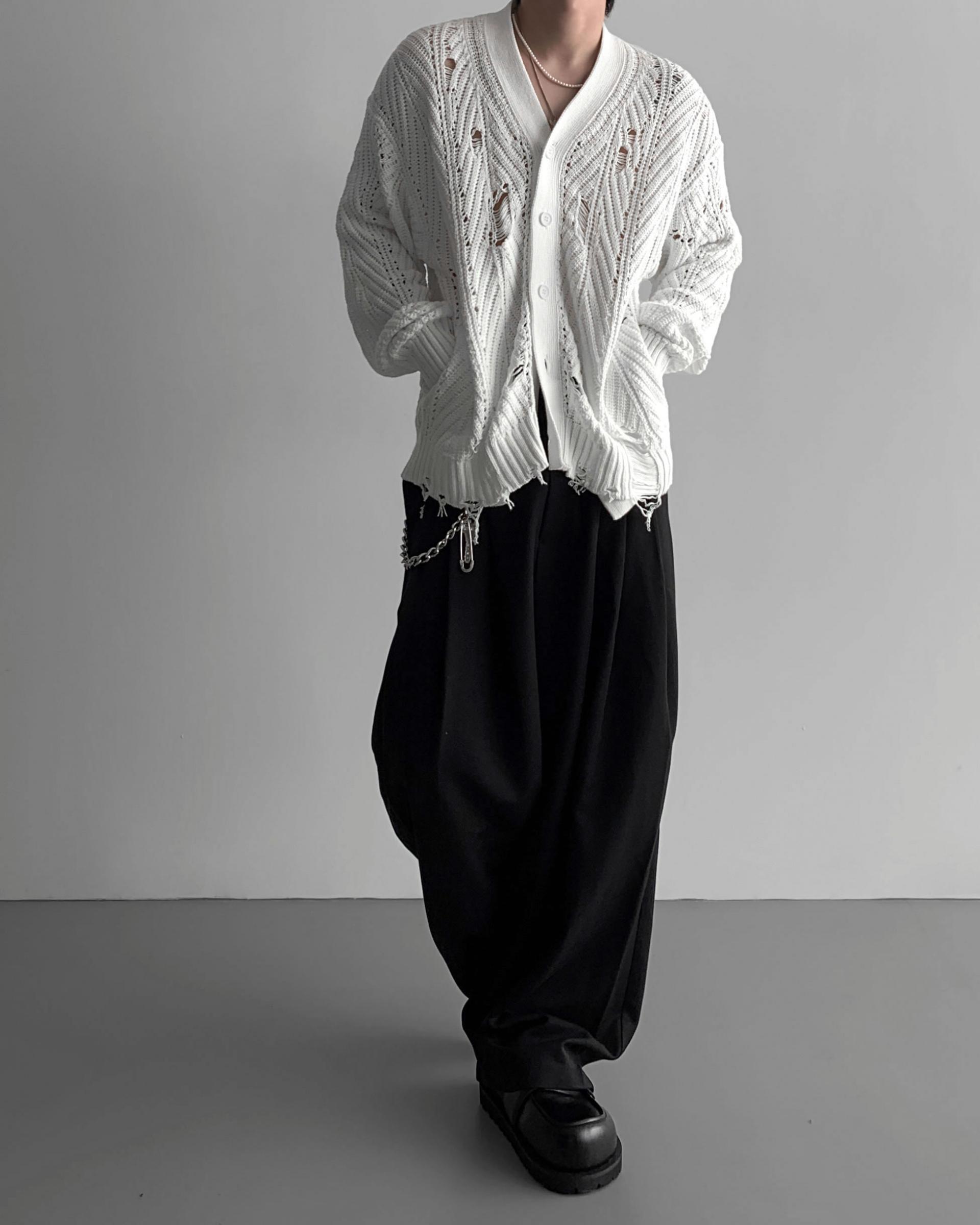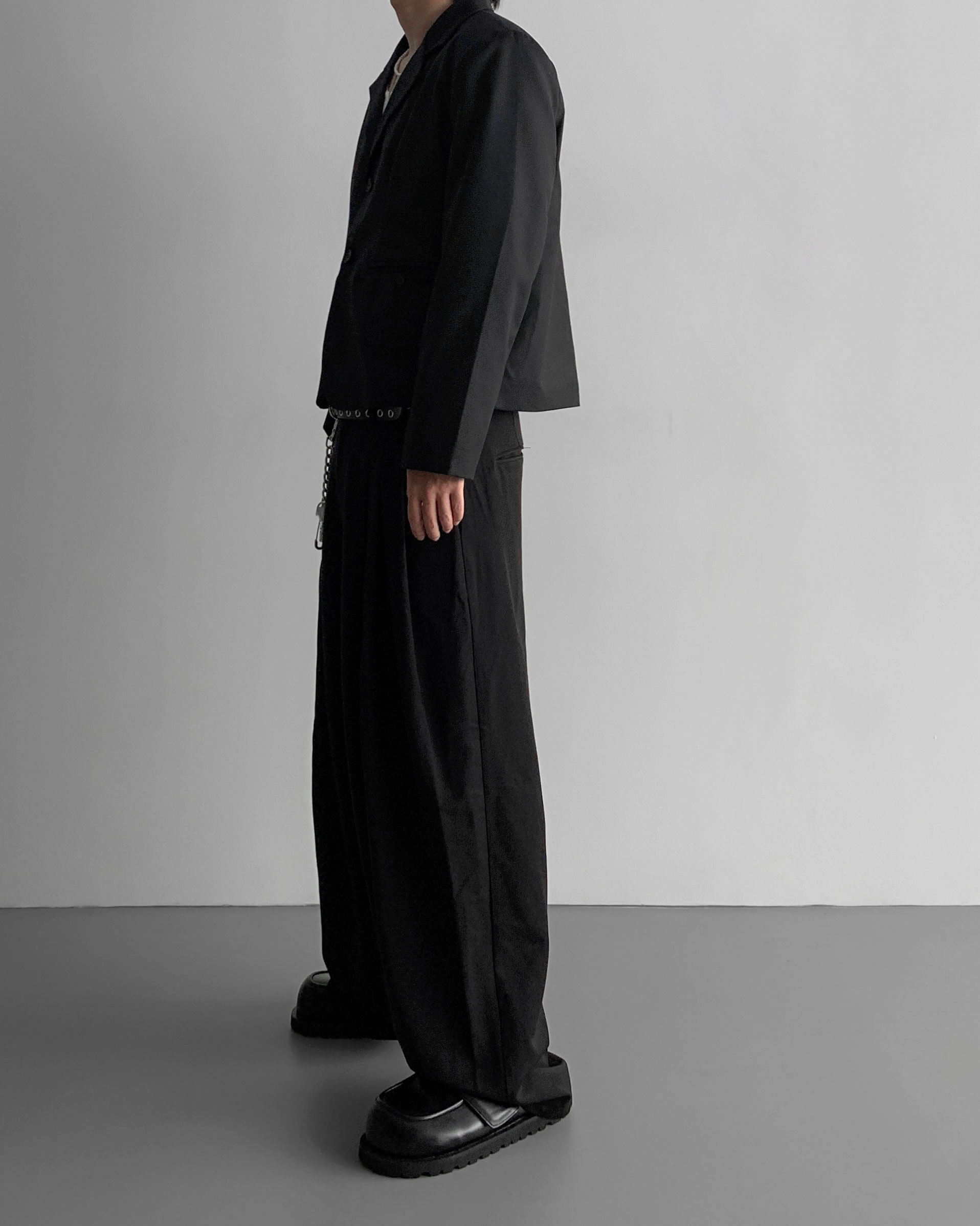 -밑위가 길어 일반적인 슬랙스와 다르게 힙한 느낌을 나타냄
