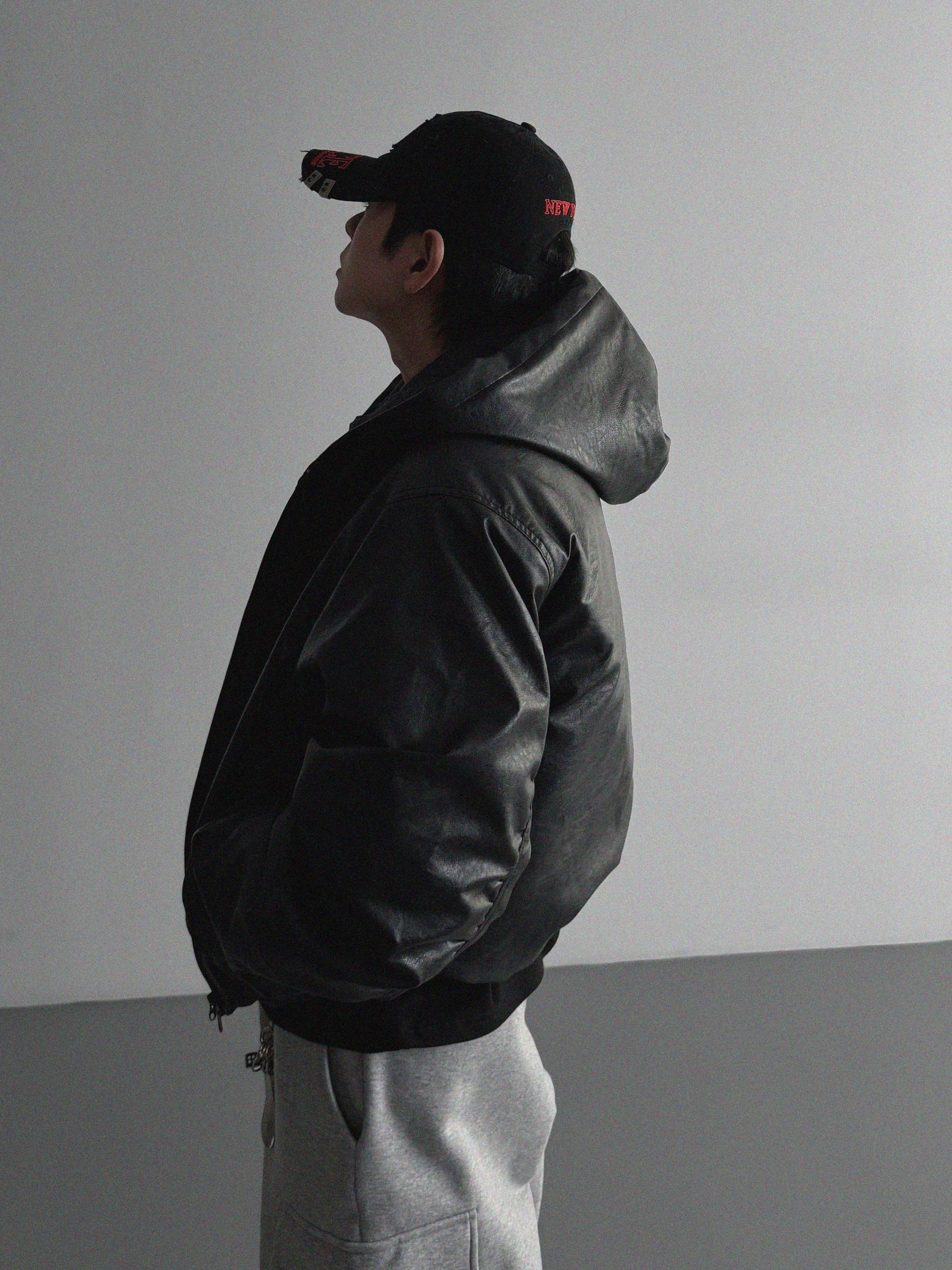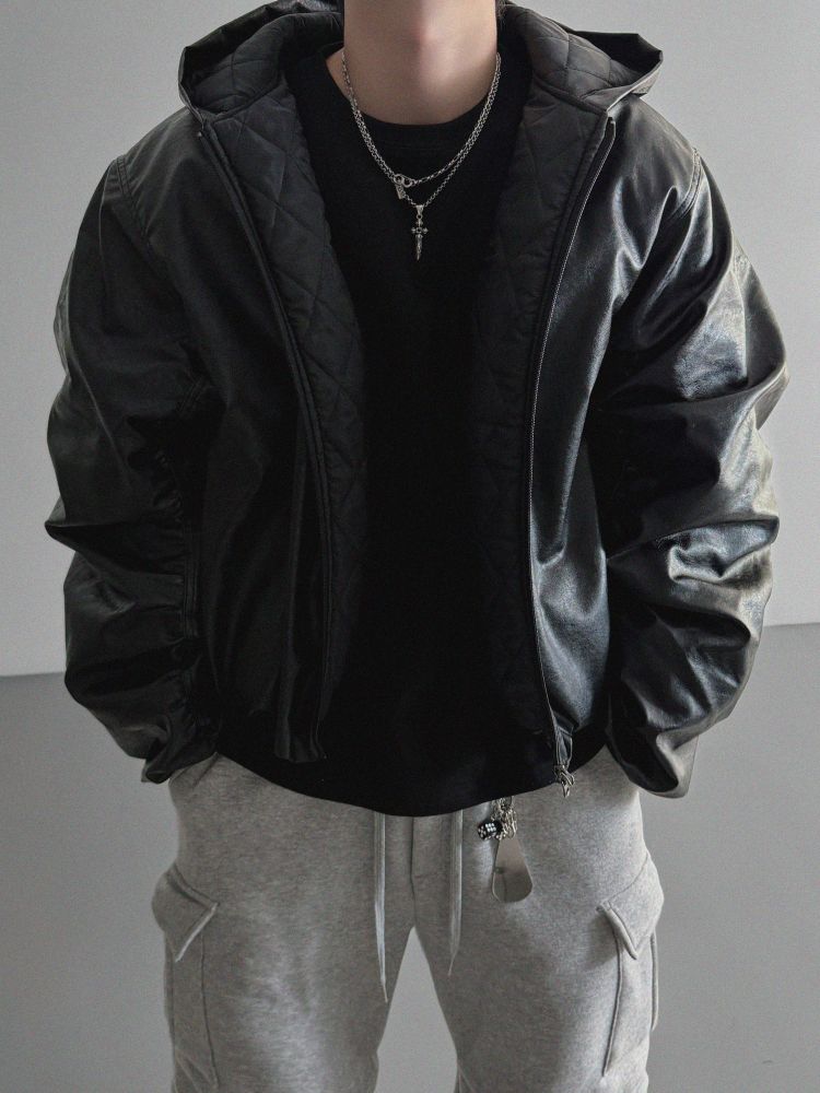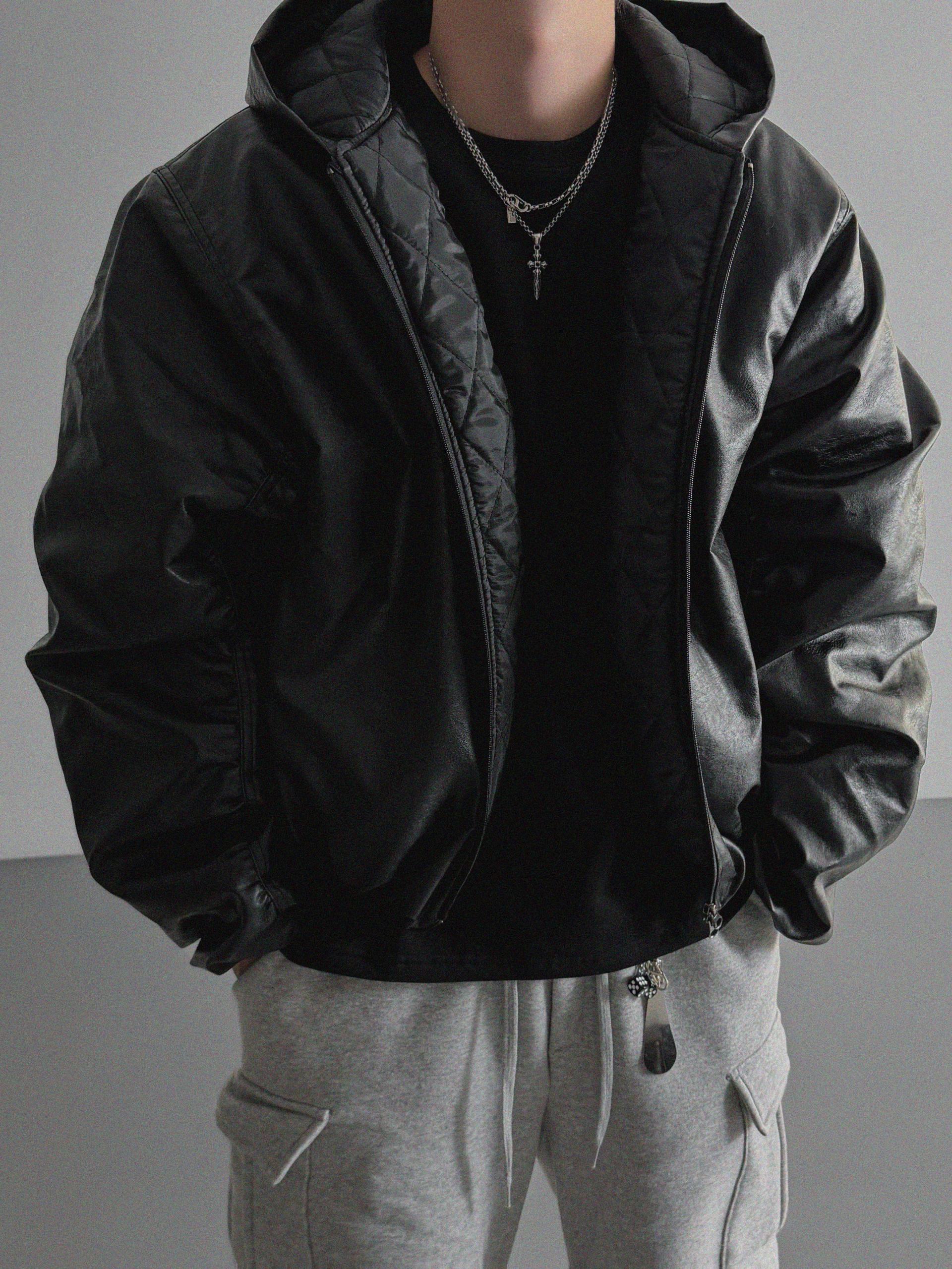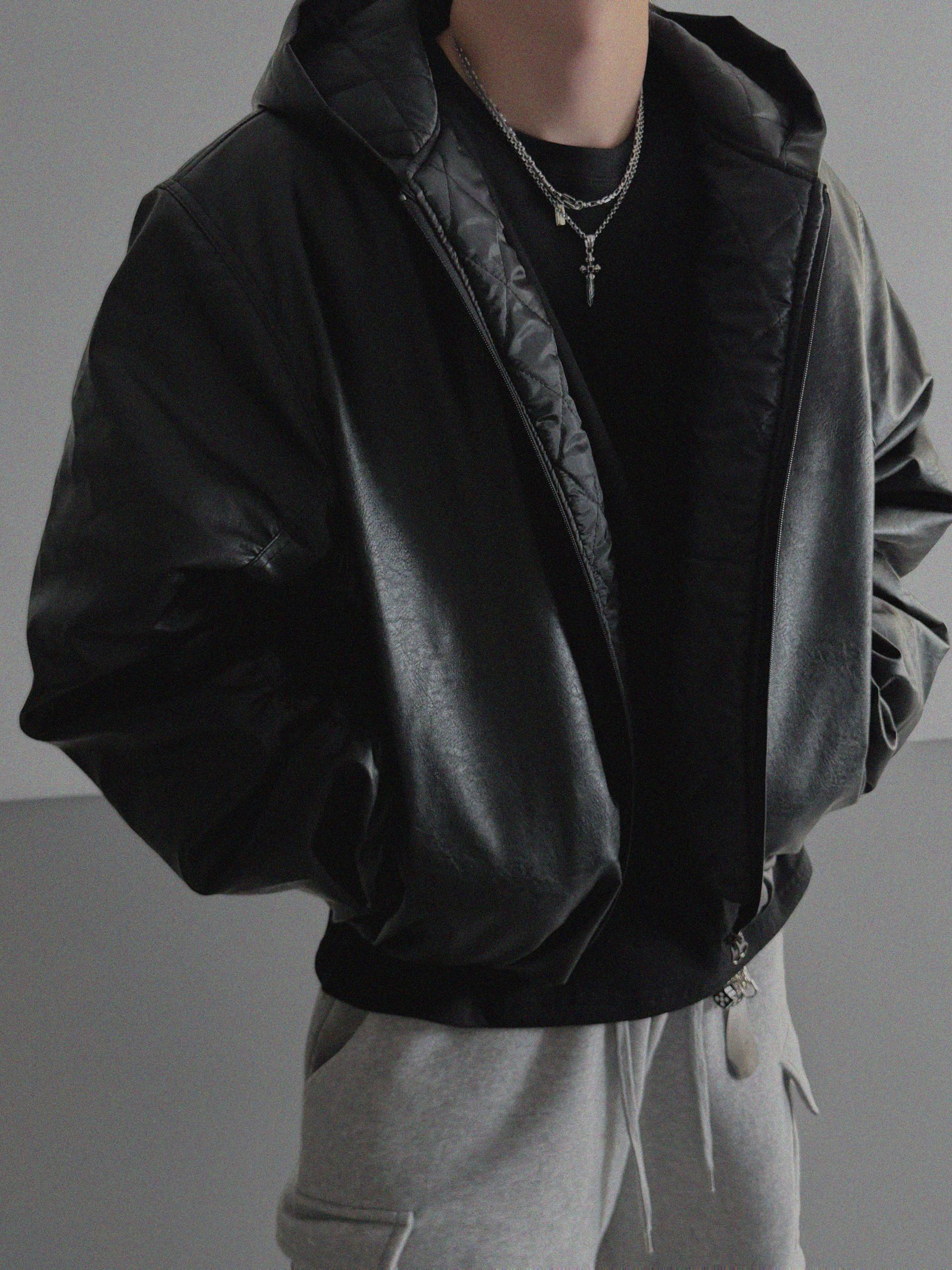 라지핏 레더 후드 봄버 자켓