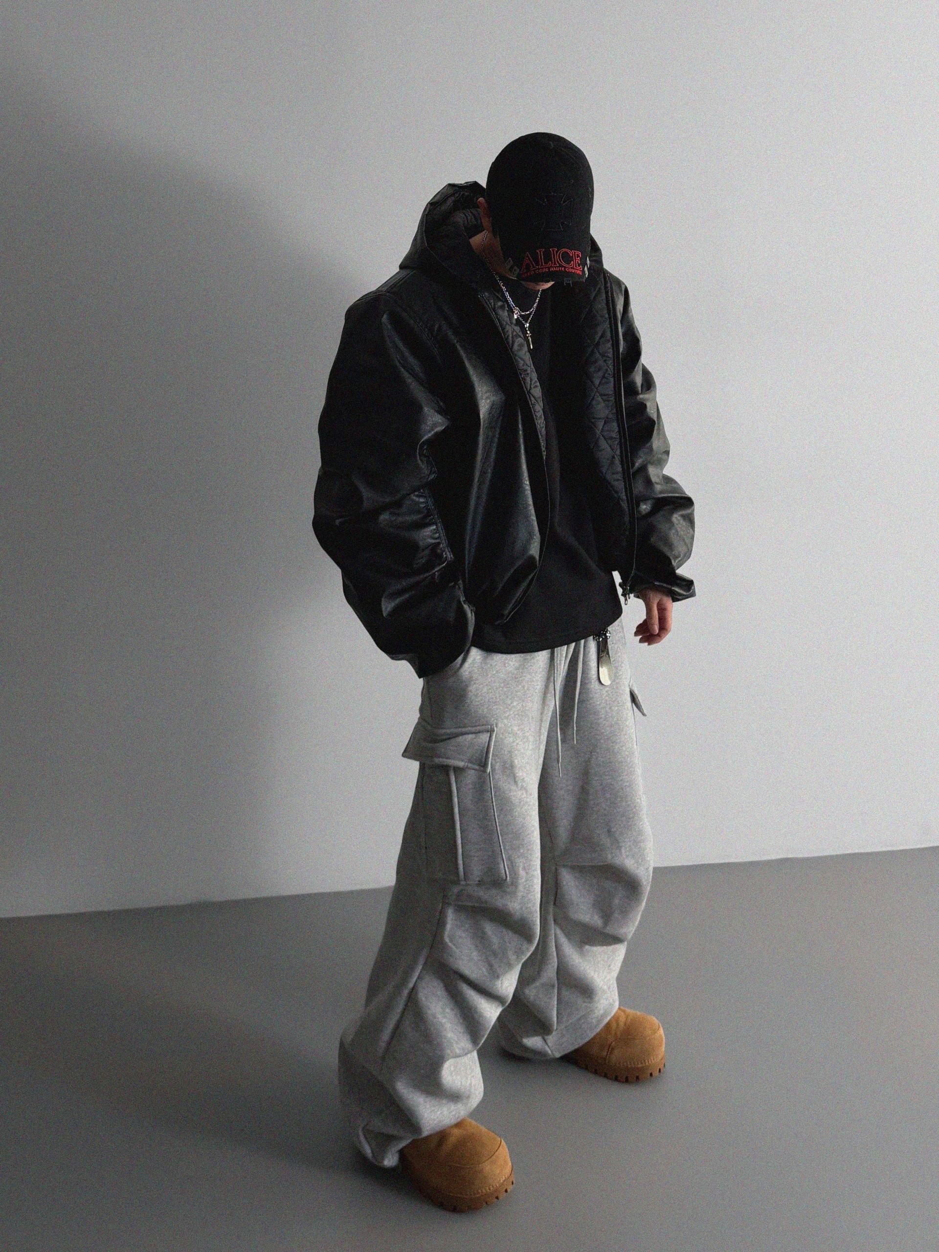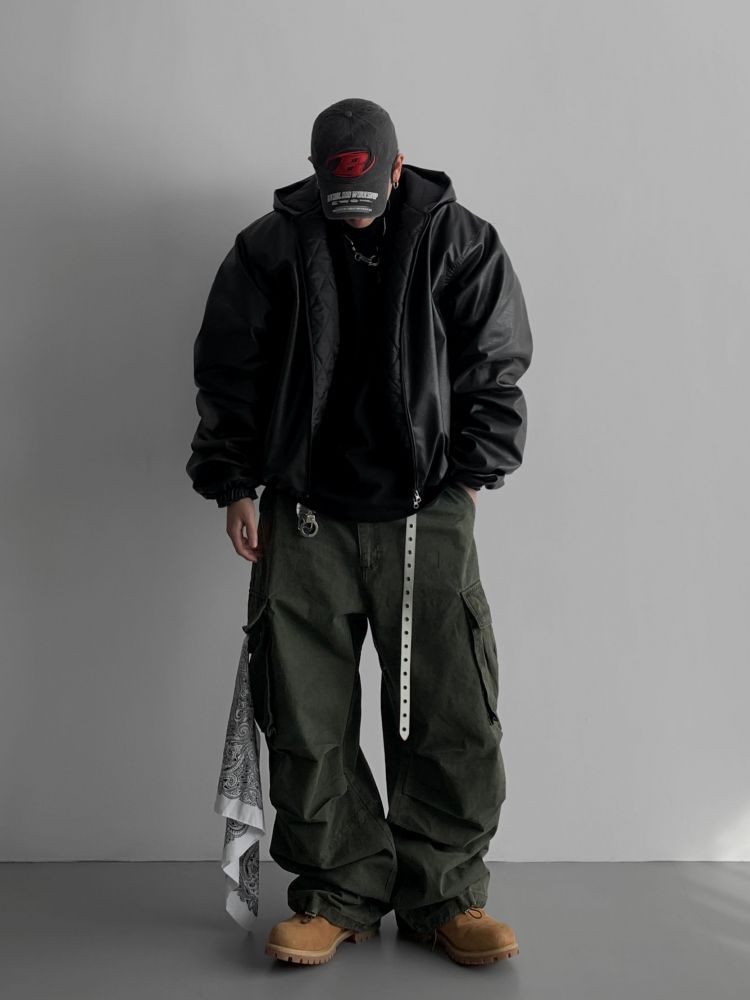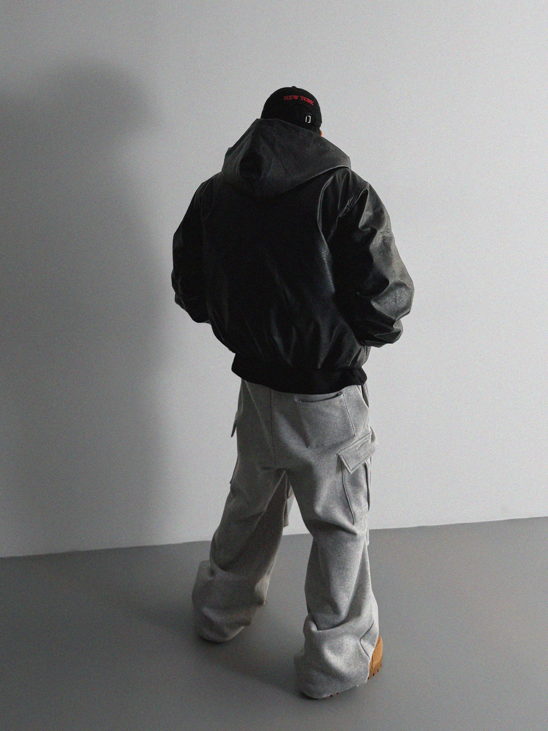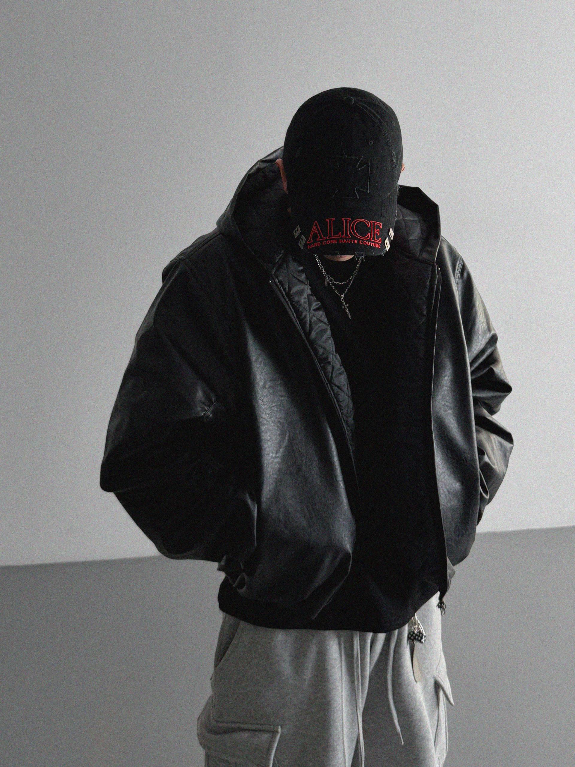 라지핏 레더 후드 봄버 자켓