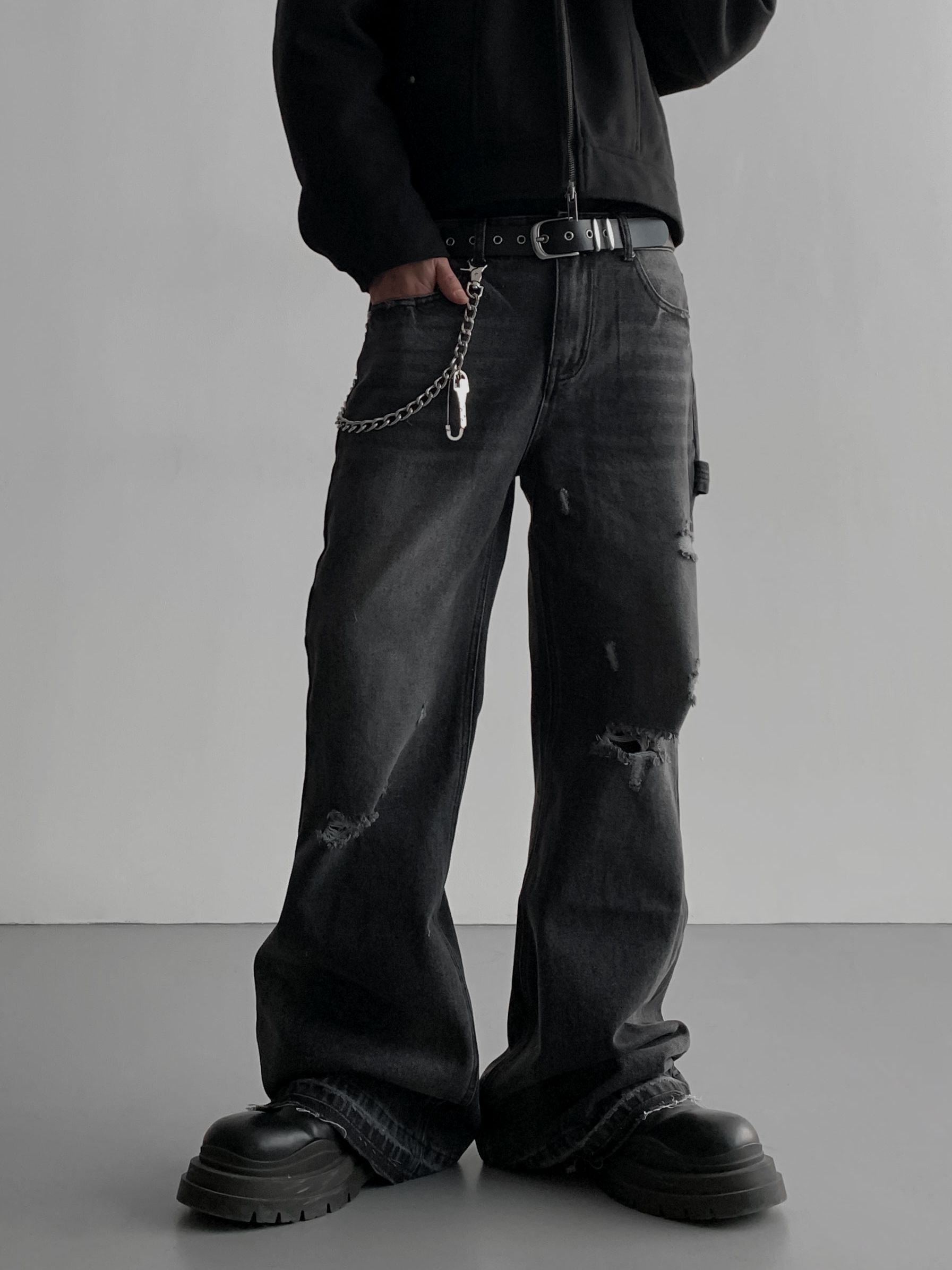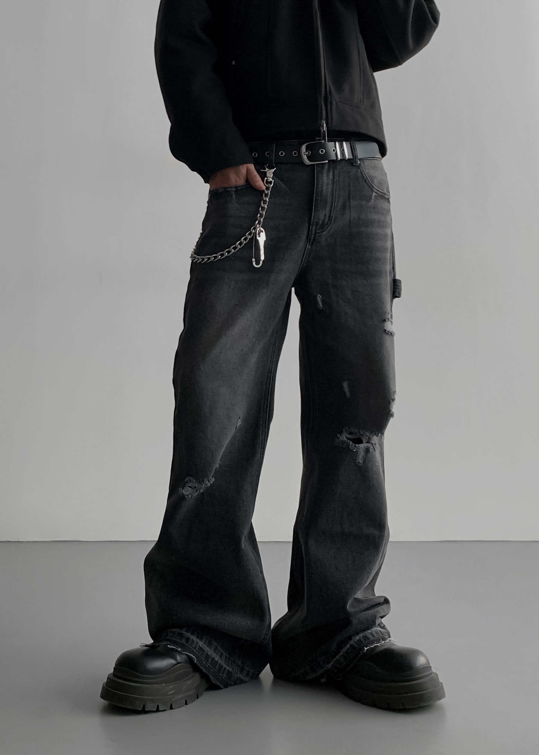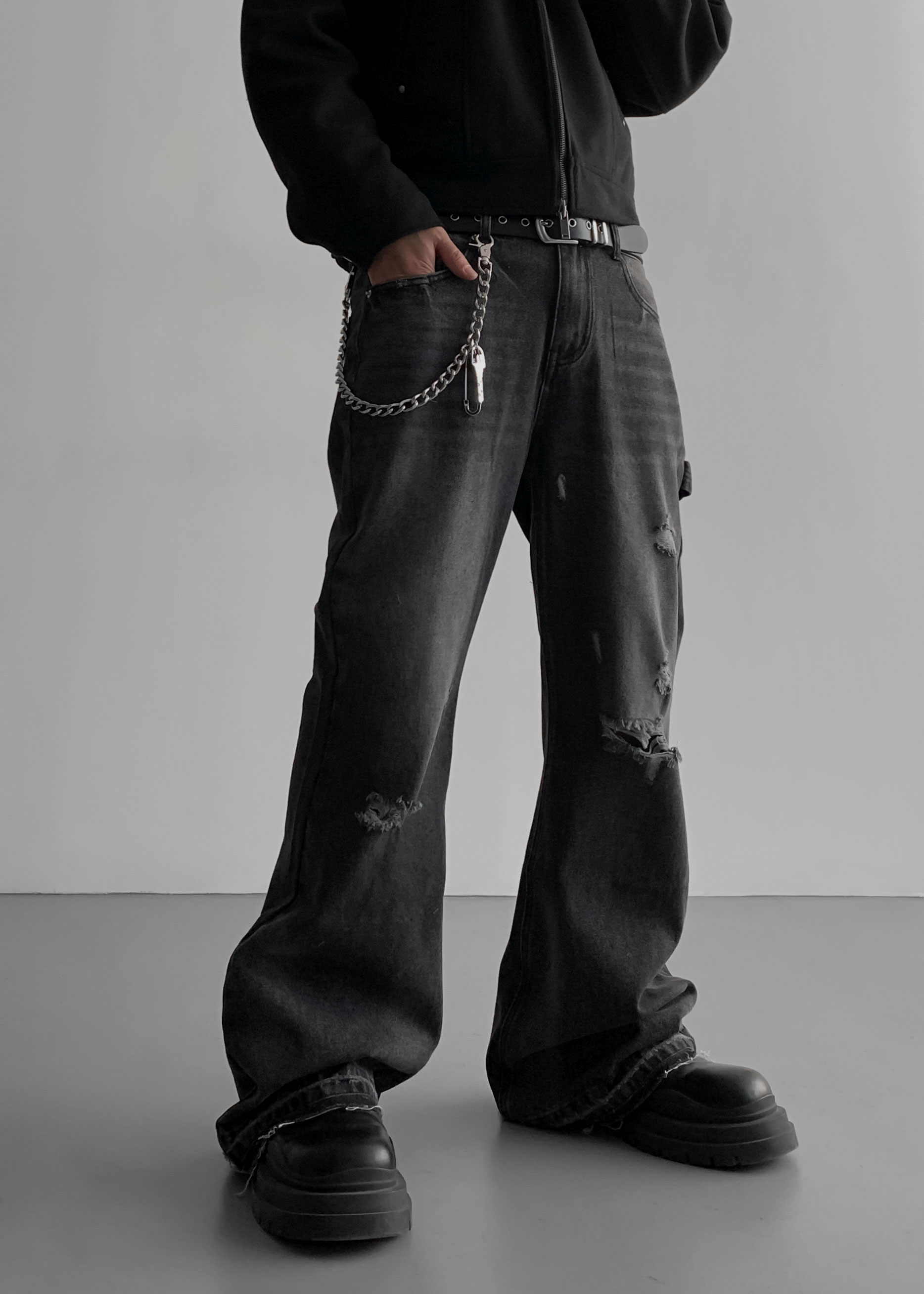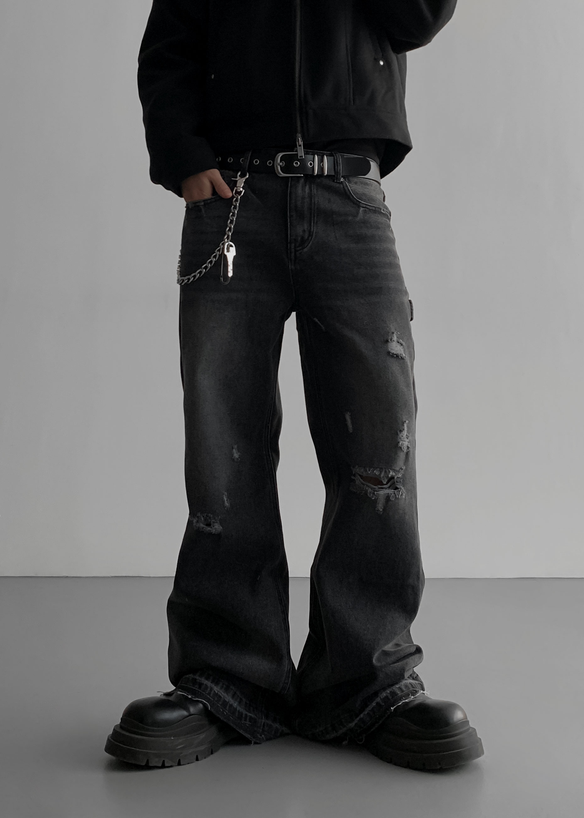 빈티지 데미지 플레어 데님 팬츠