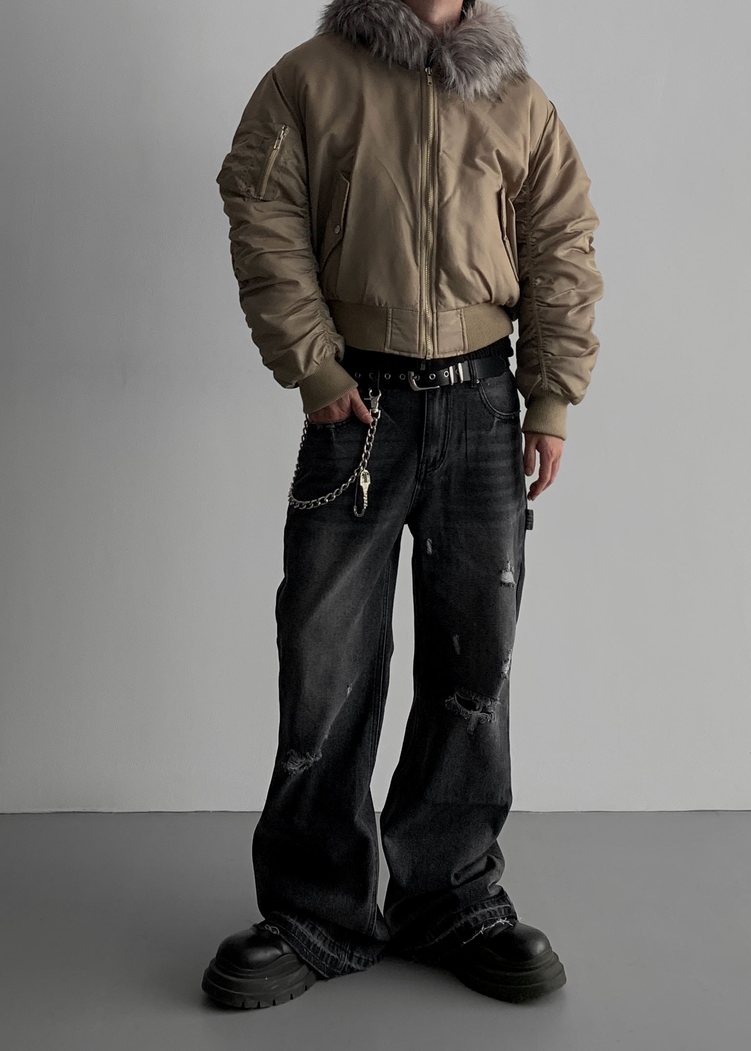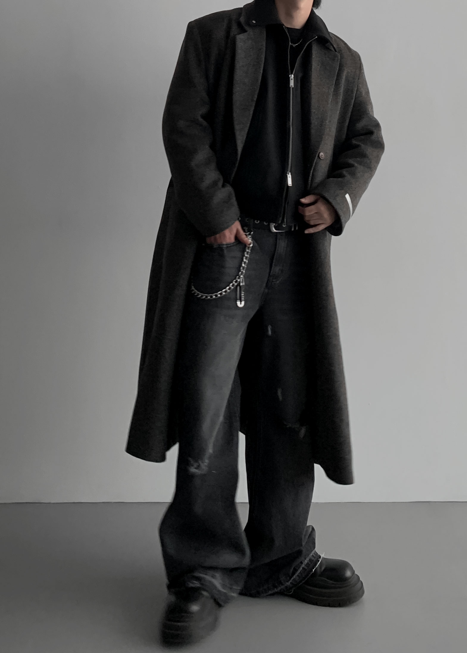 (모델에게 허리는 약간 컸으며 골반에 걸쳐서 착용. 스탠다드 핏.)