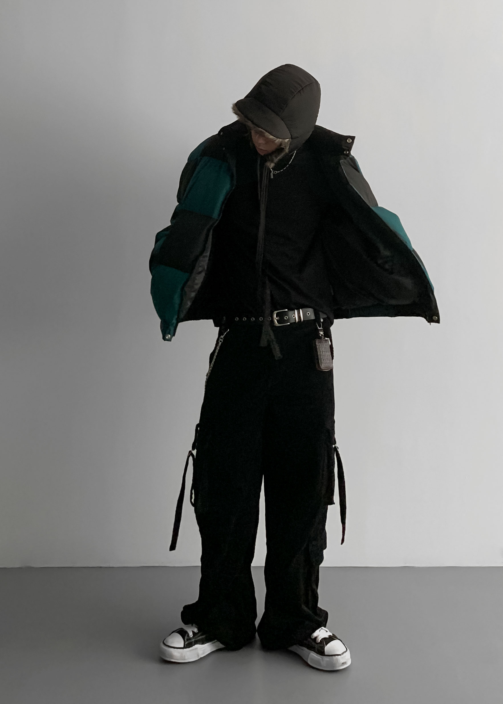 -53개의 퍼즐과 같은 조각을 다운백으로 제작하여 연결한 구조적인 디자인