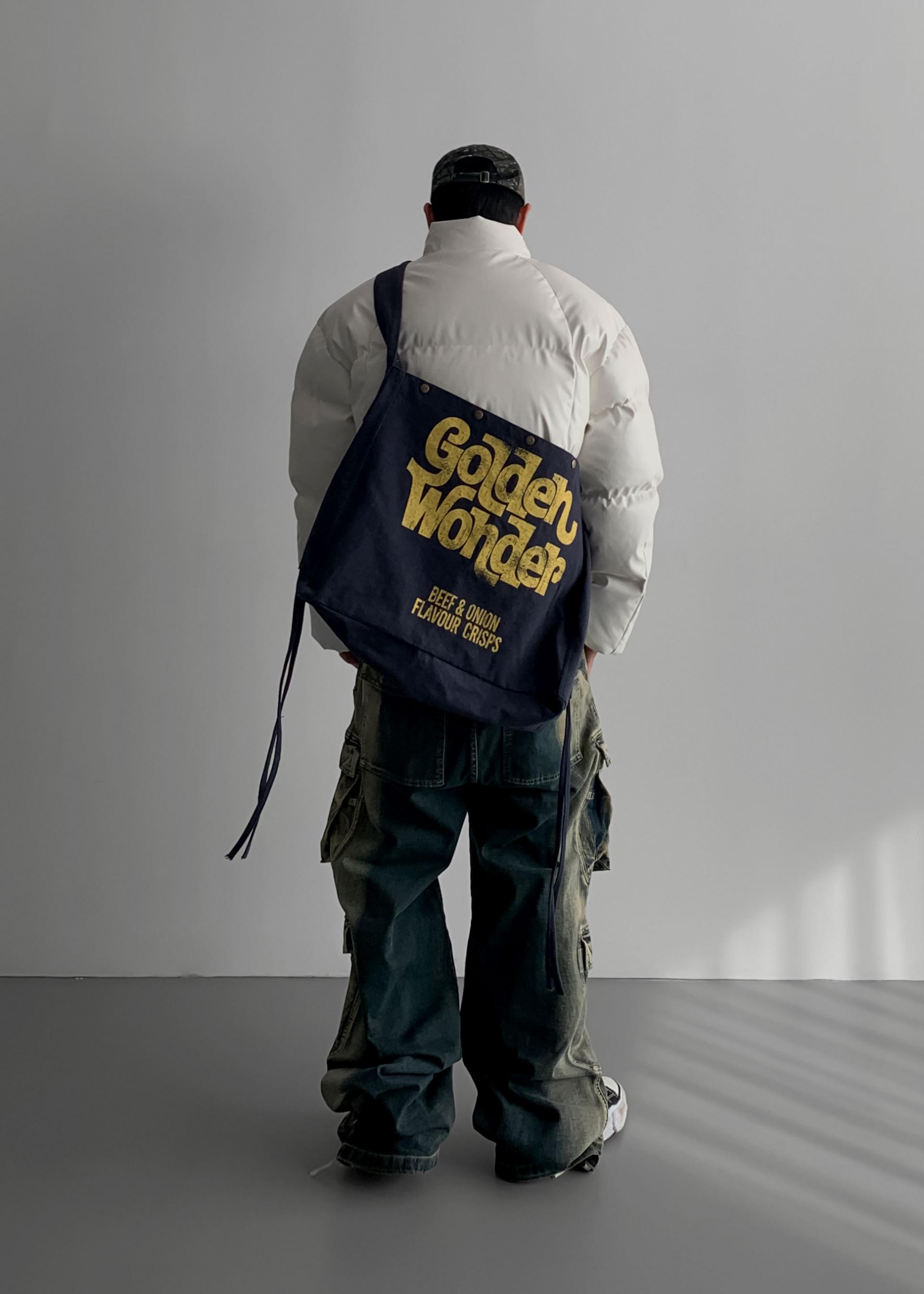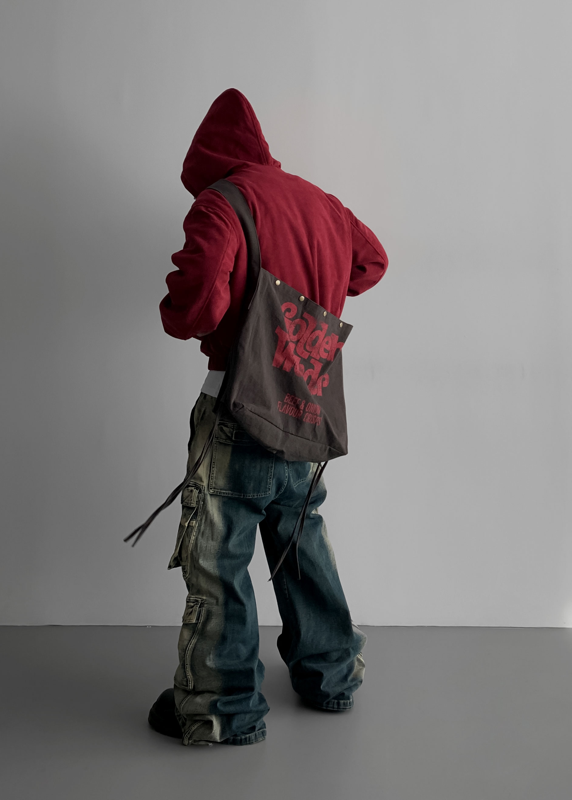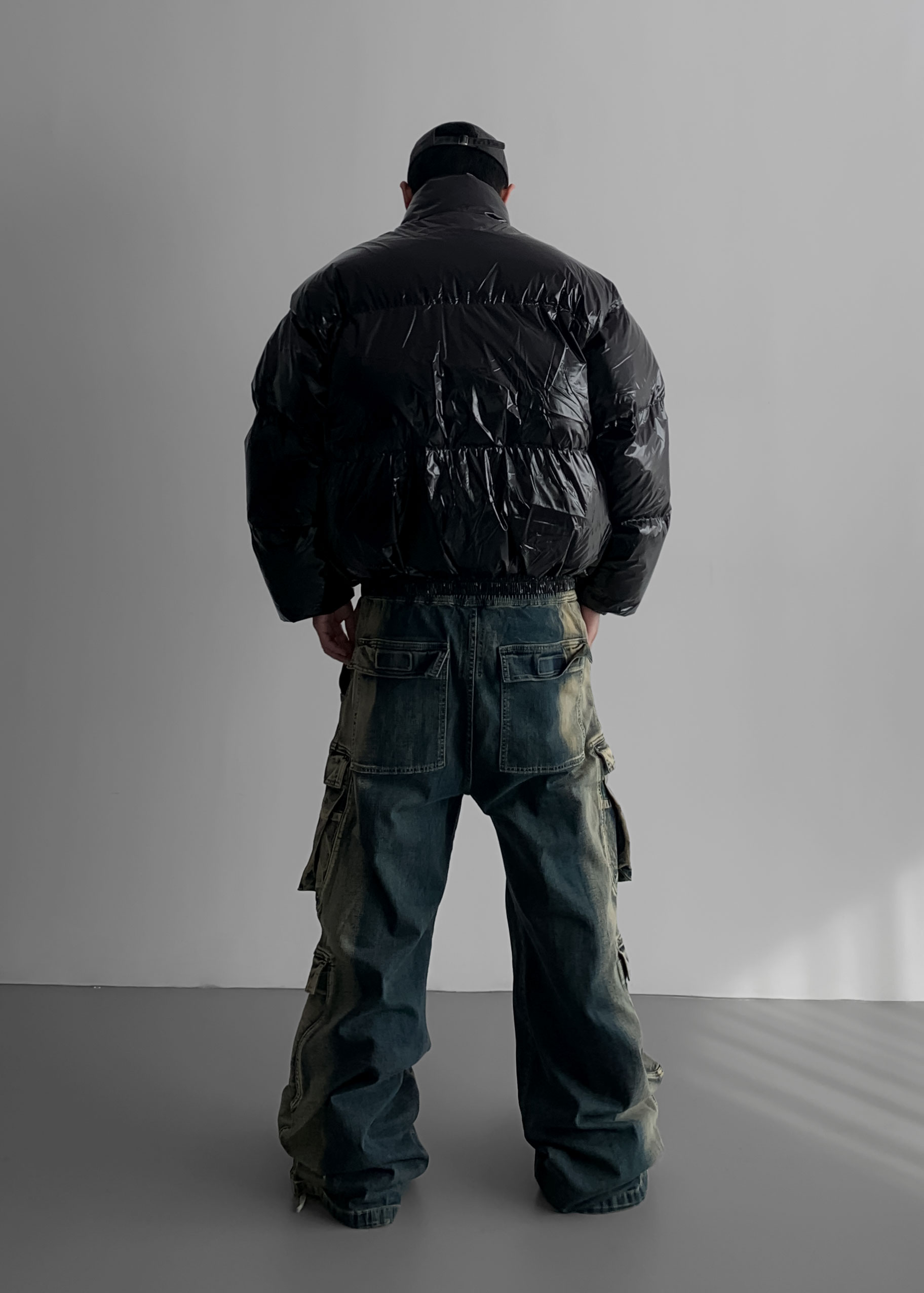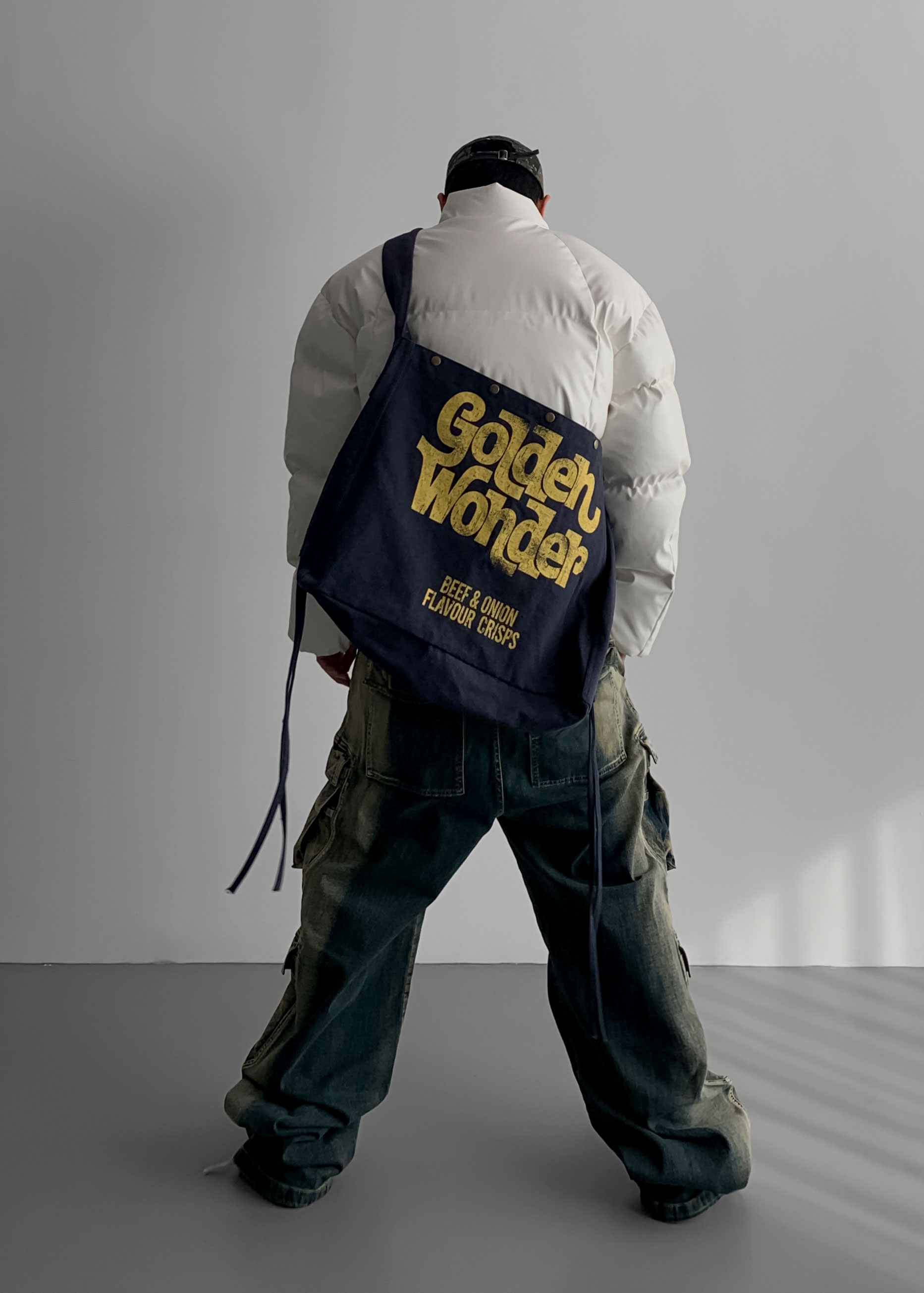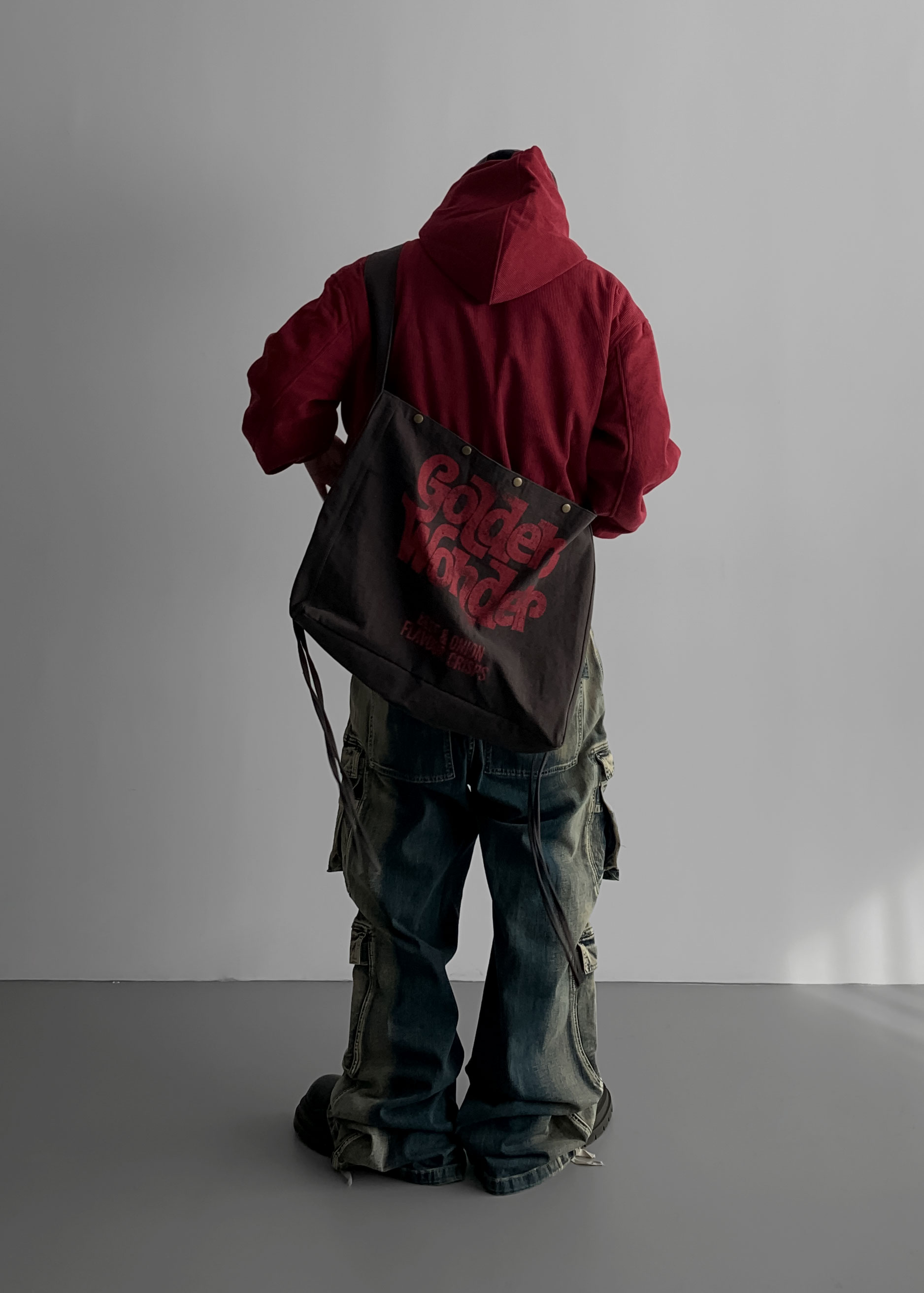 (팬츠를 내려입어 골반에 걸쳐서 착용하였고 와이드 핏 연출)