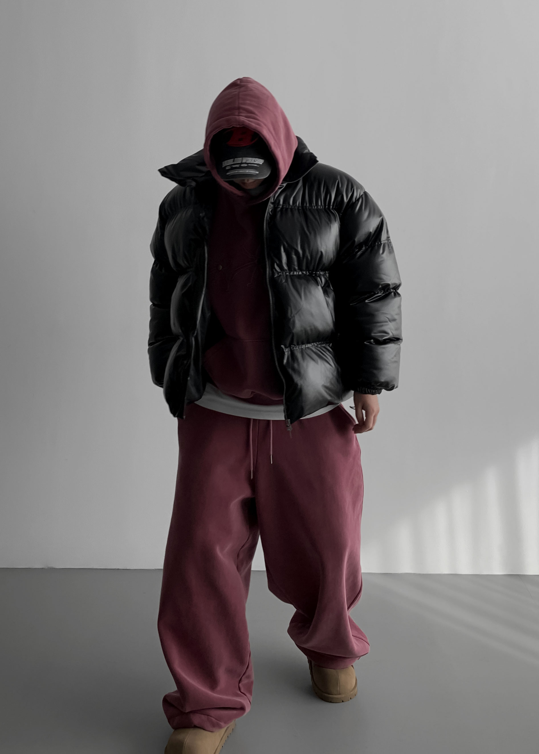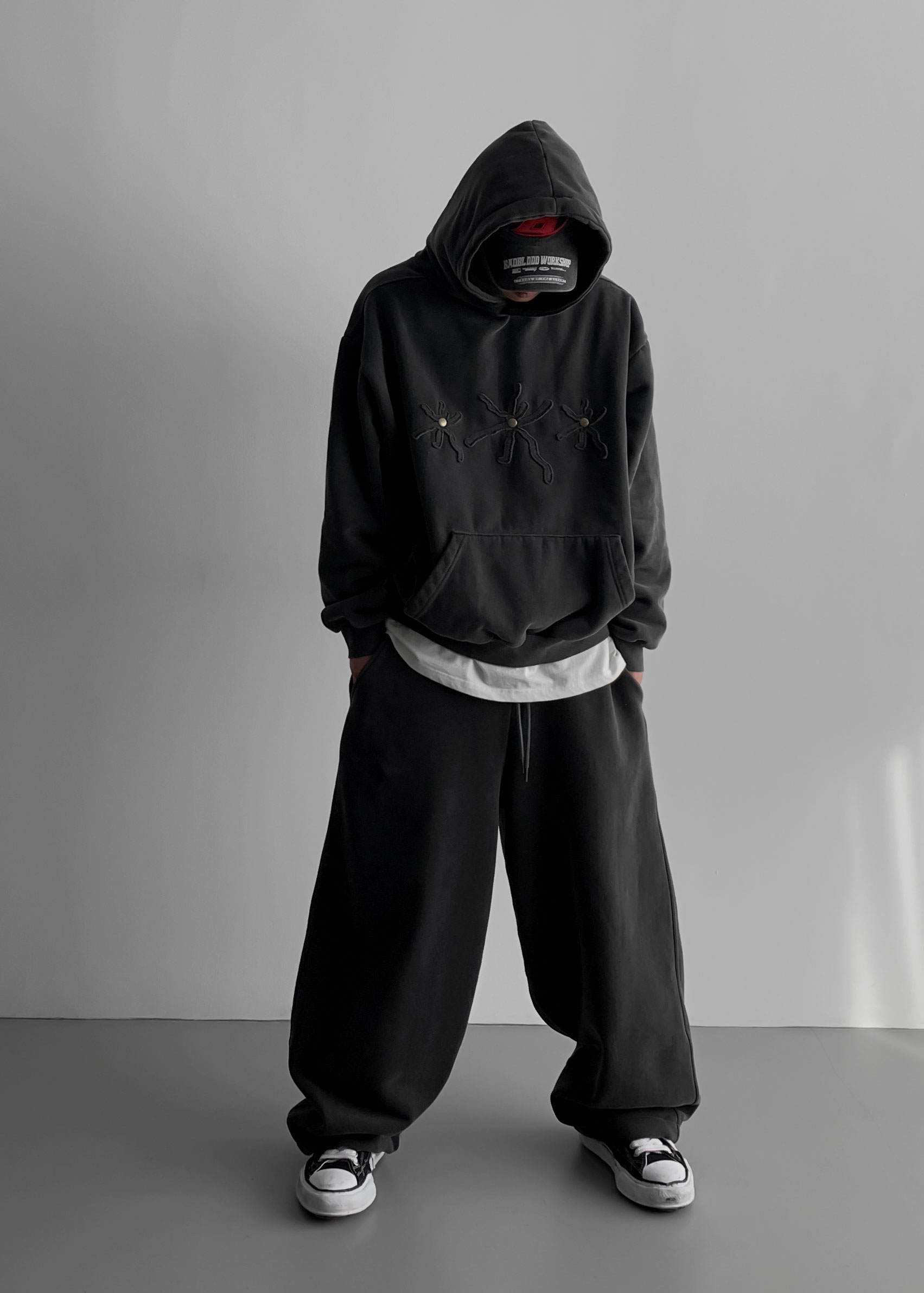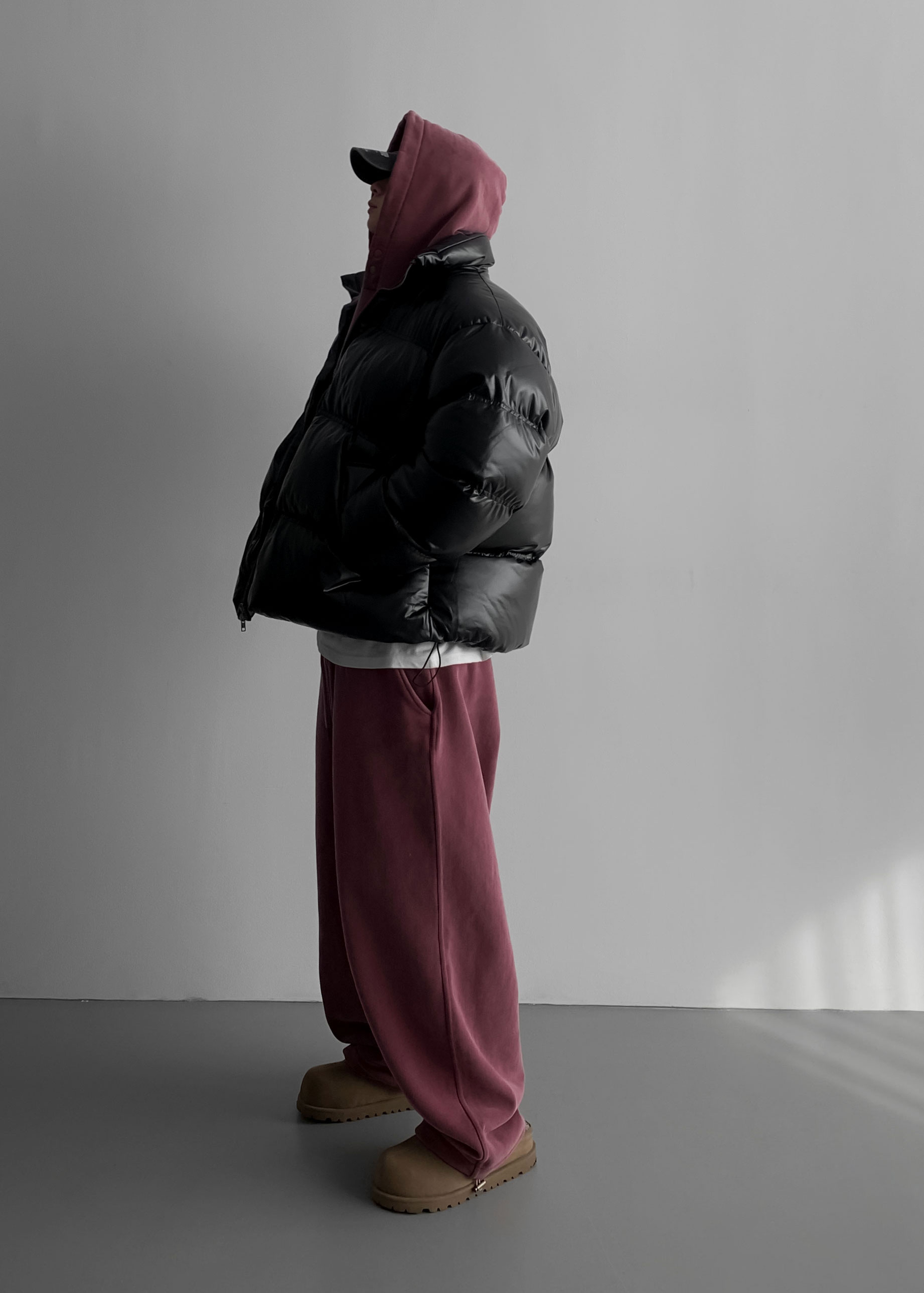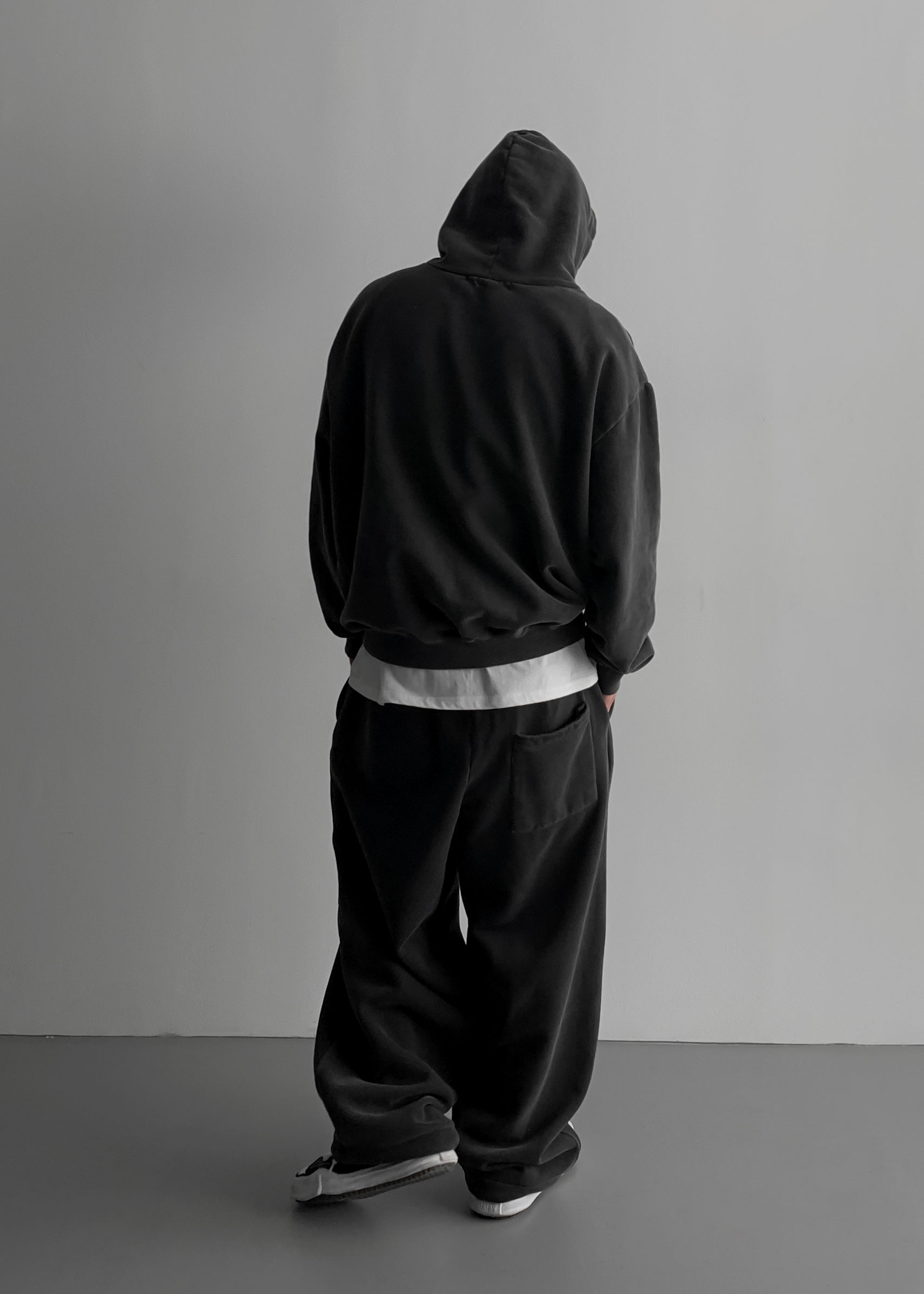 -양기모 피그먼트 스냅 후디와 셋업 구성