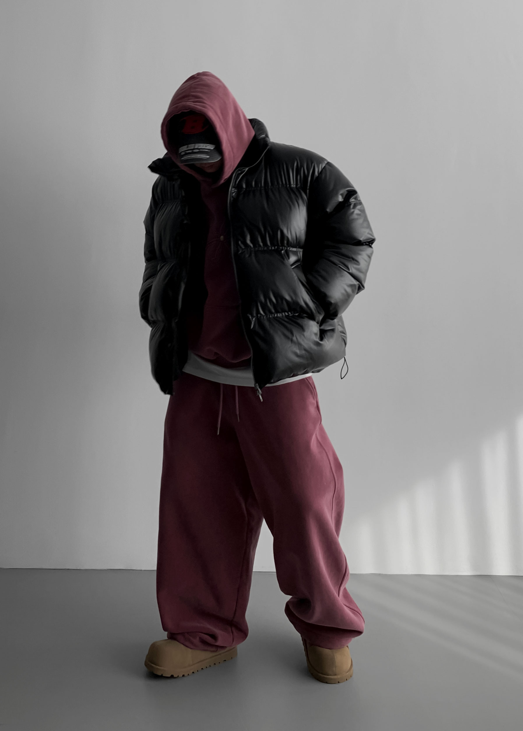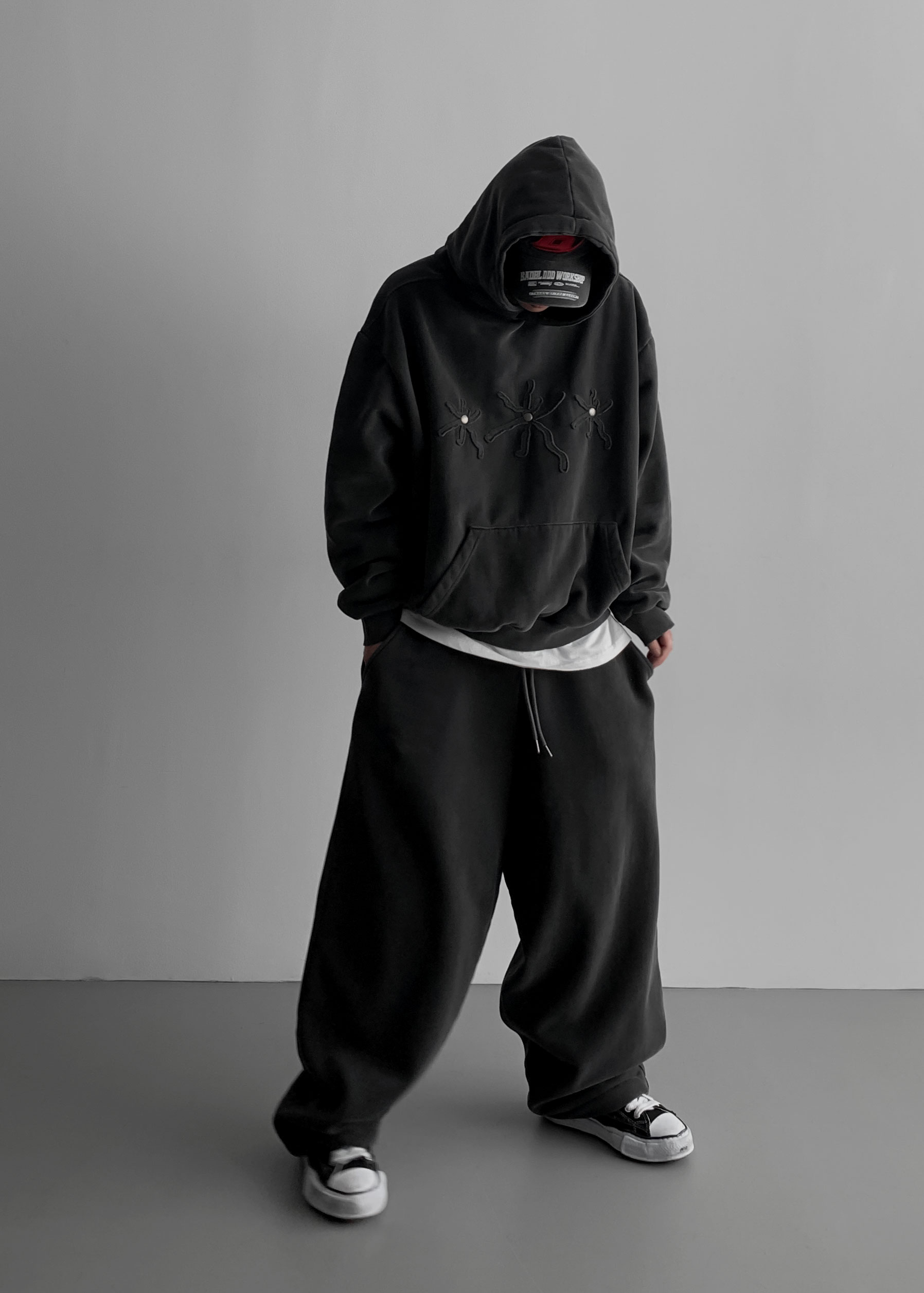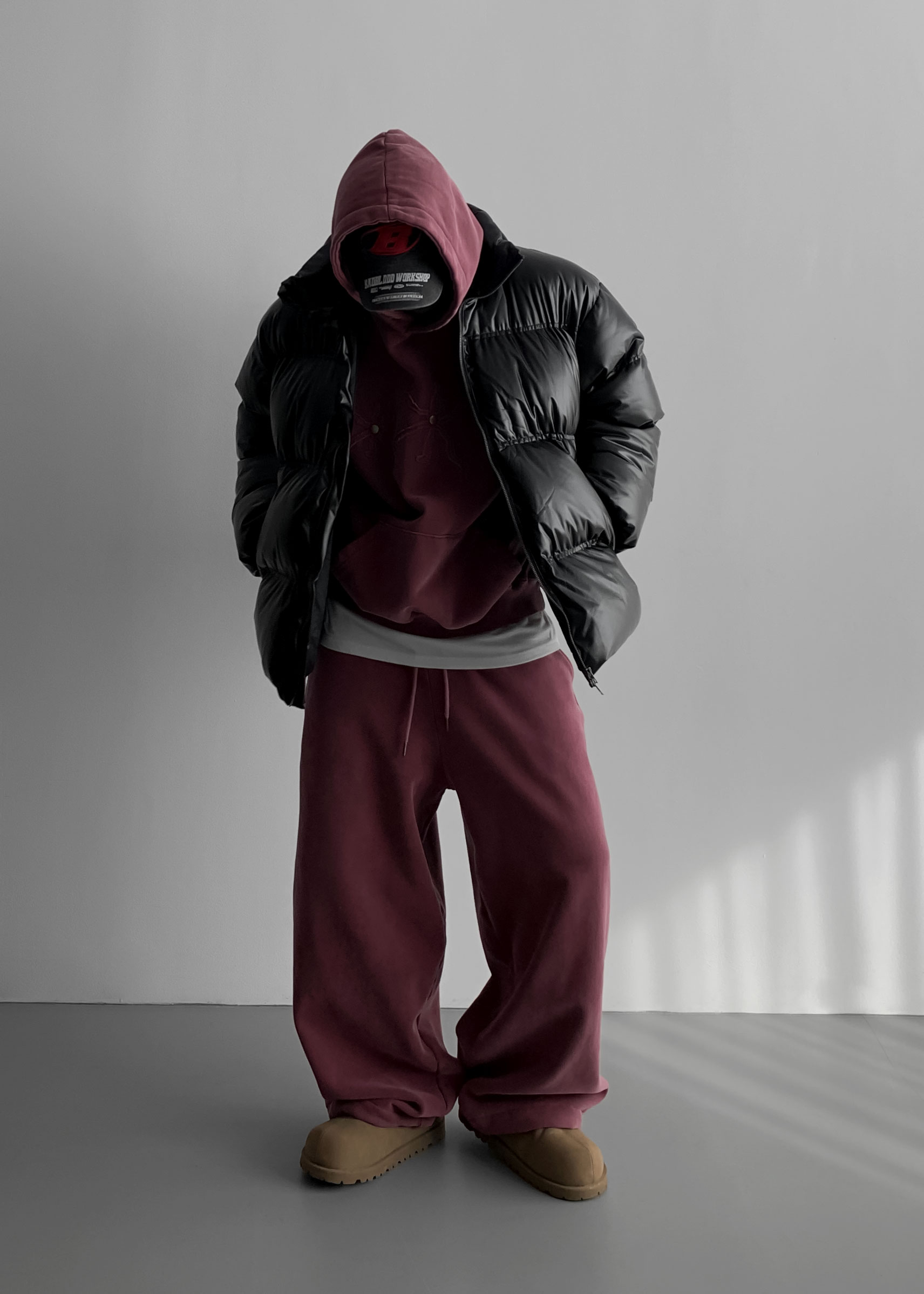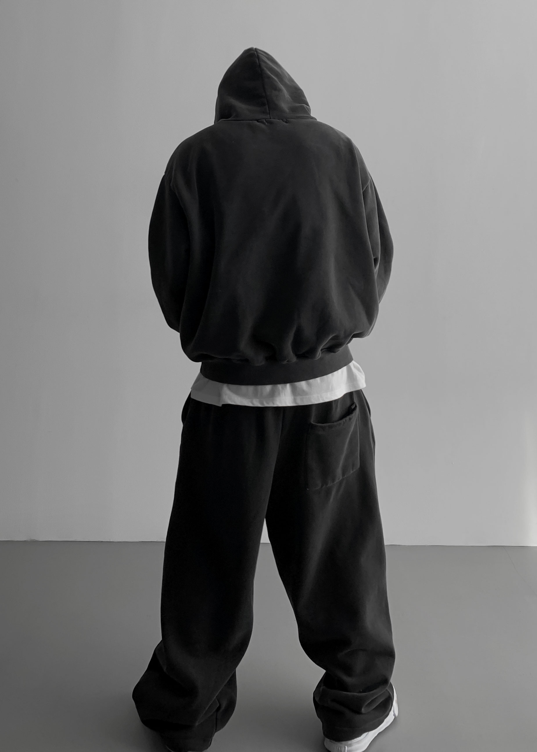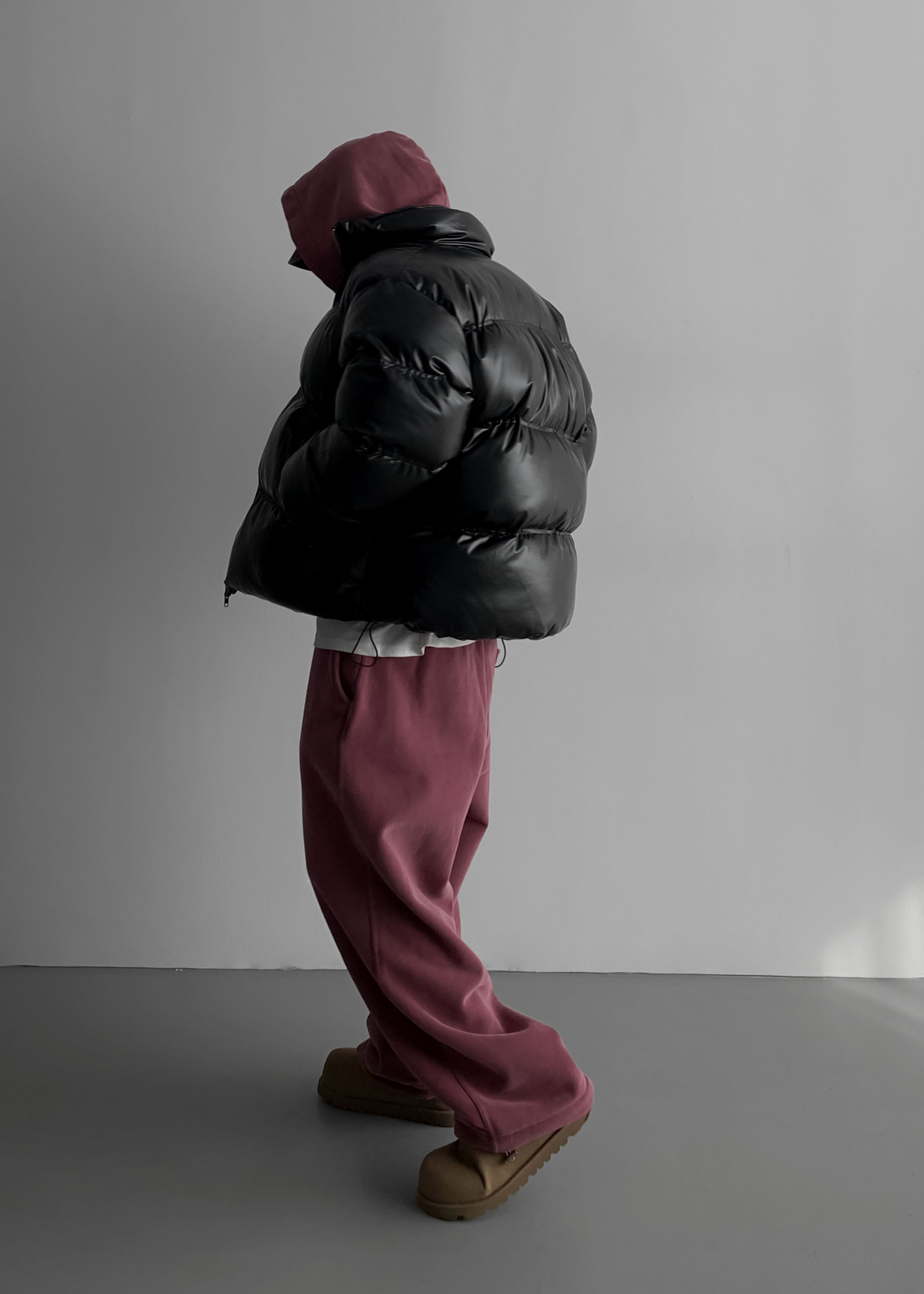-양기모 피그먼트 스냅 후디와 셋업 구성