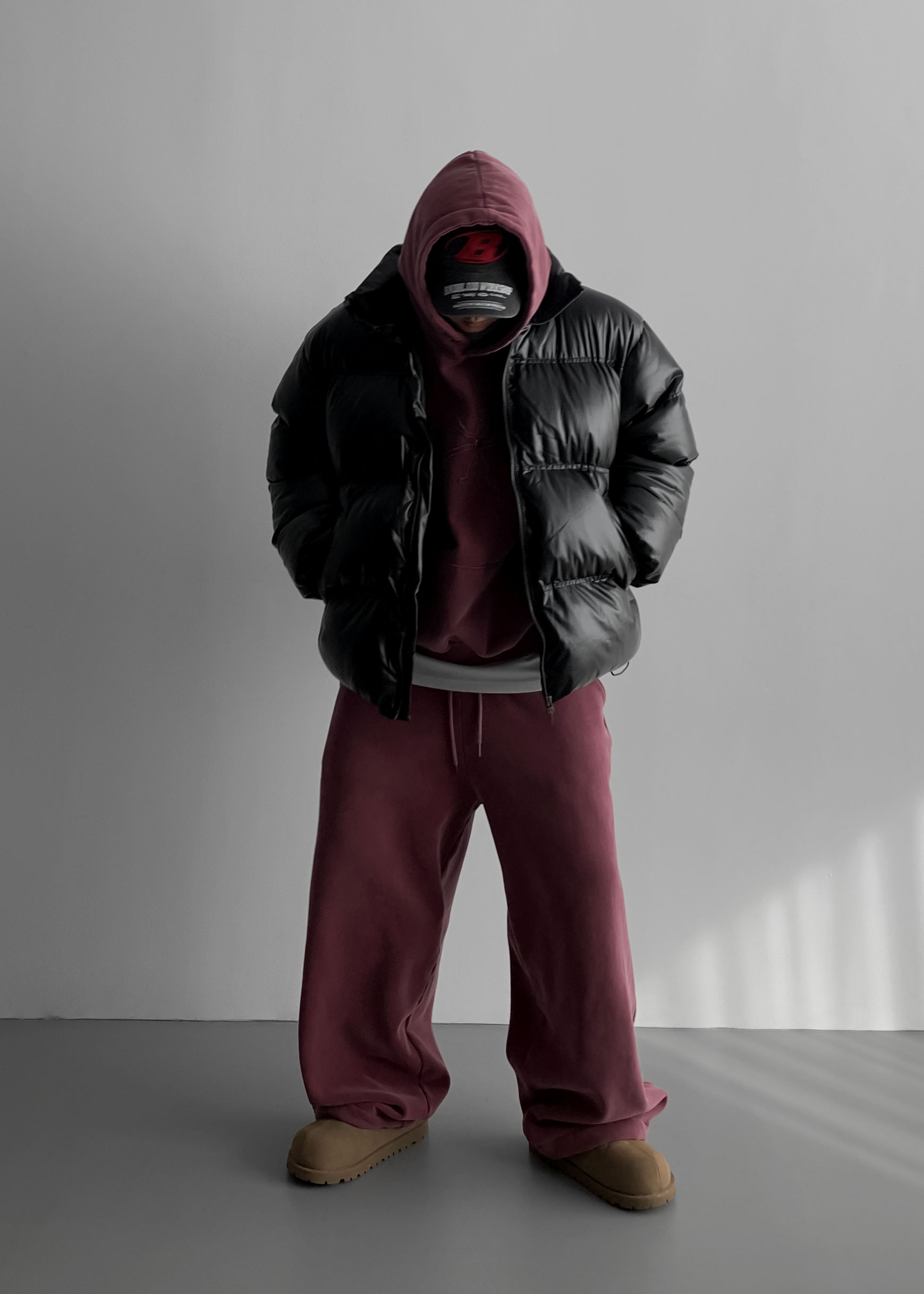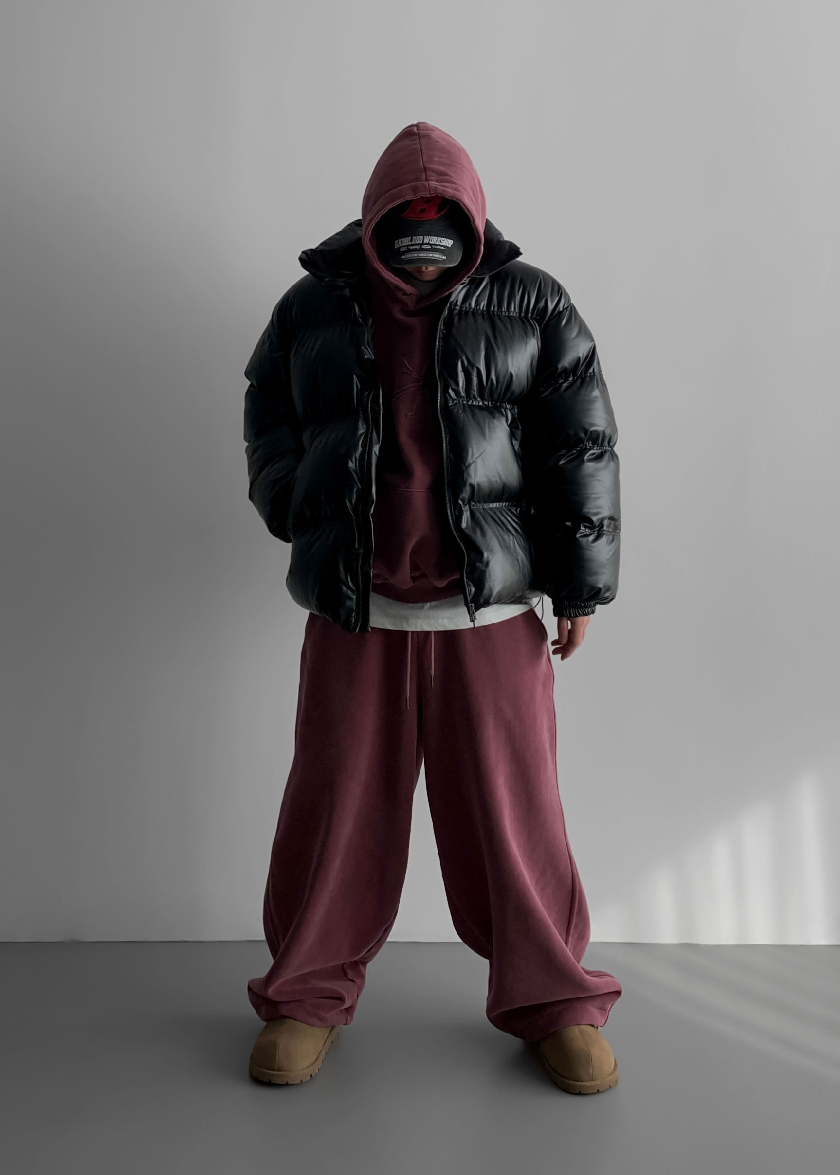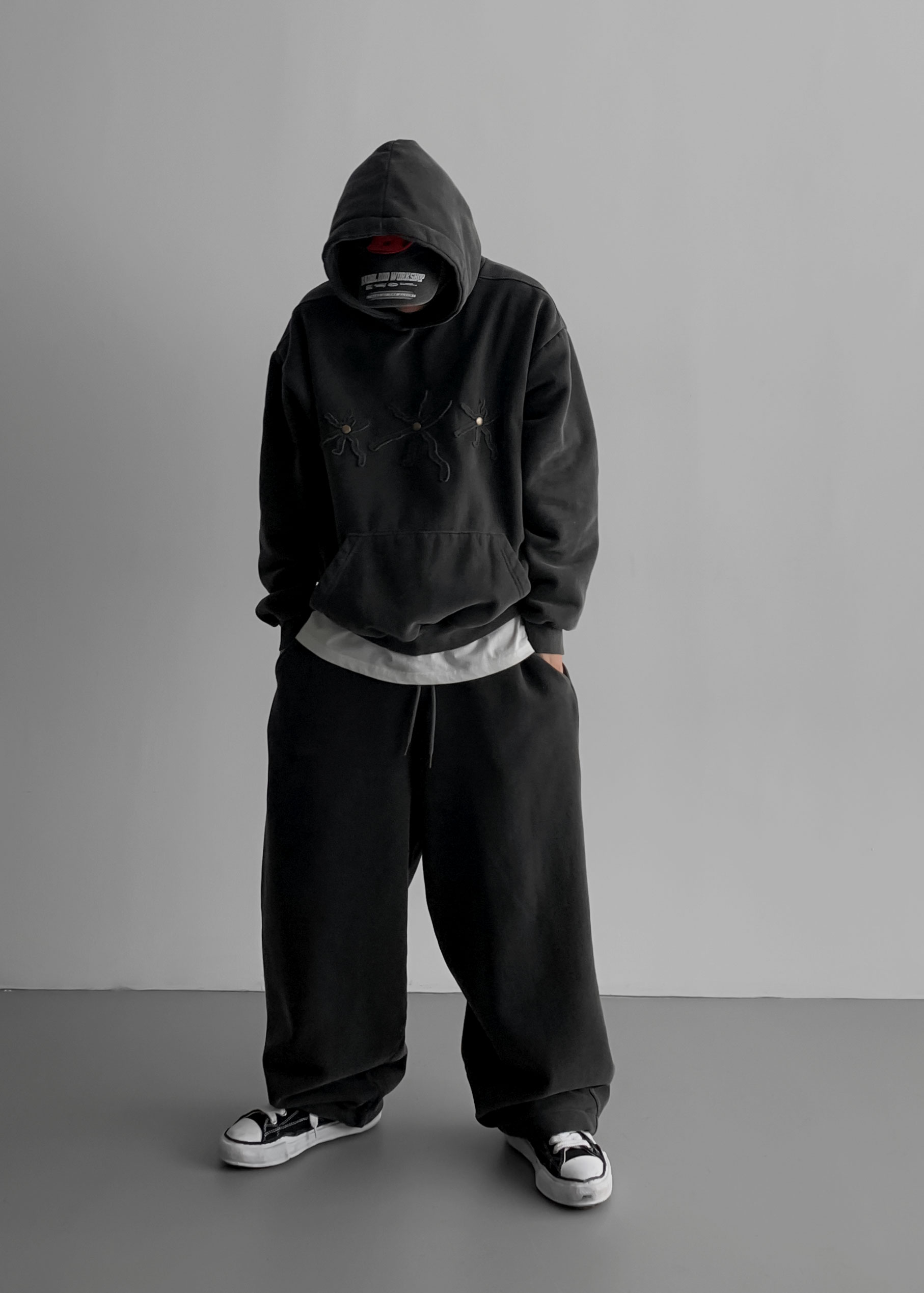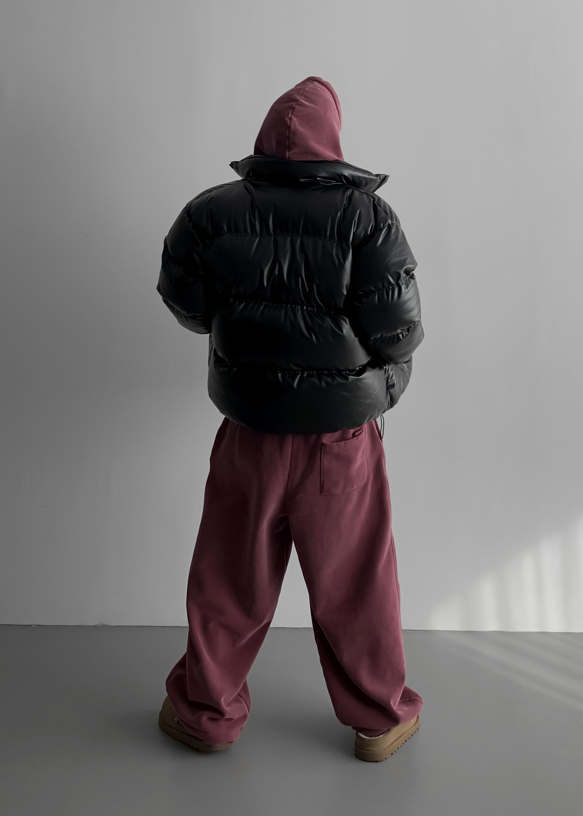 -양기모 피그먼트 스냅 후디와 셋업 구성