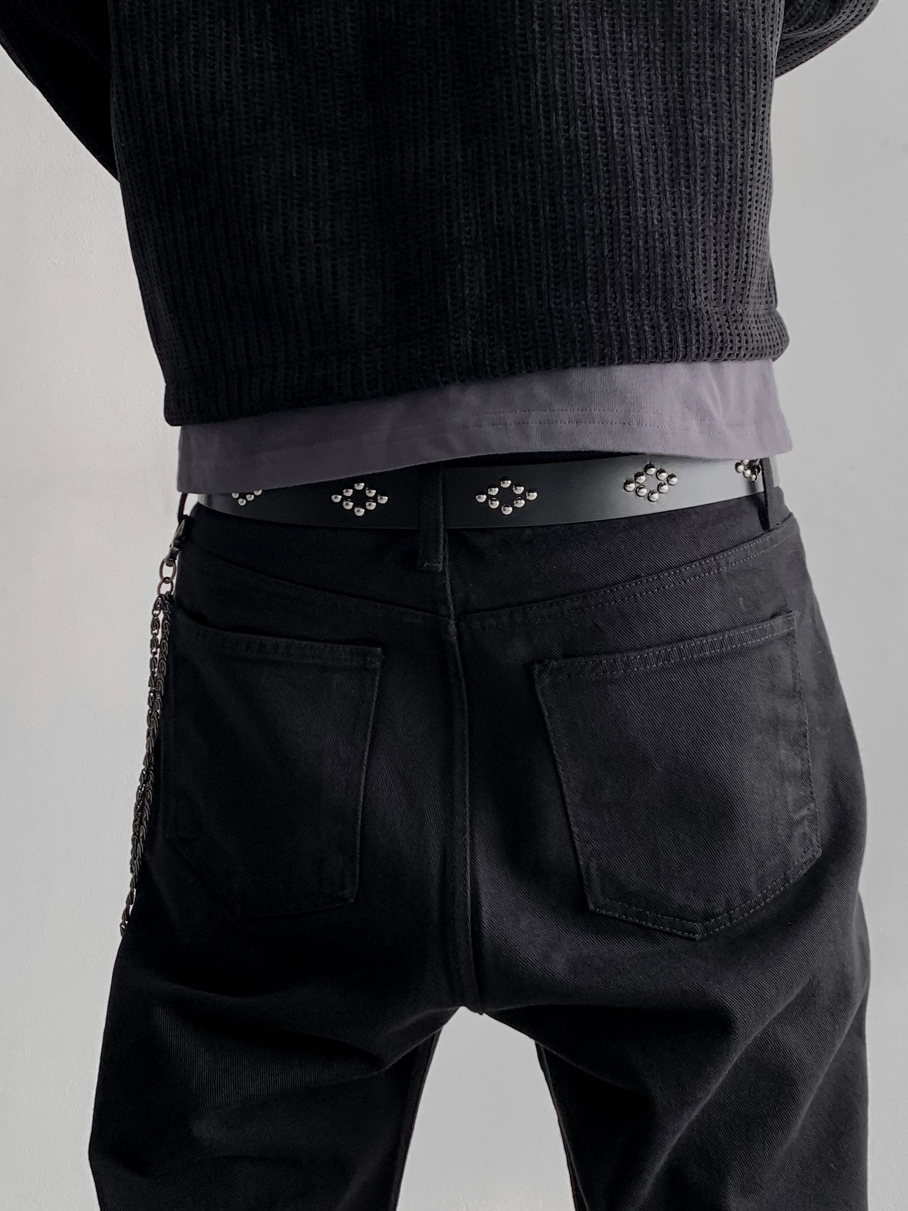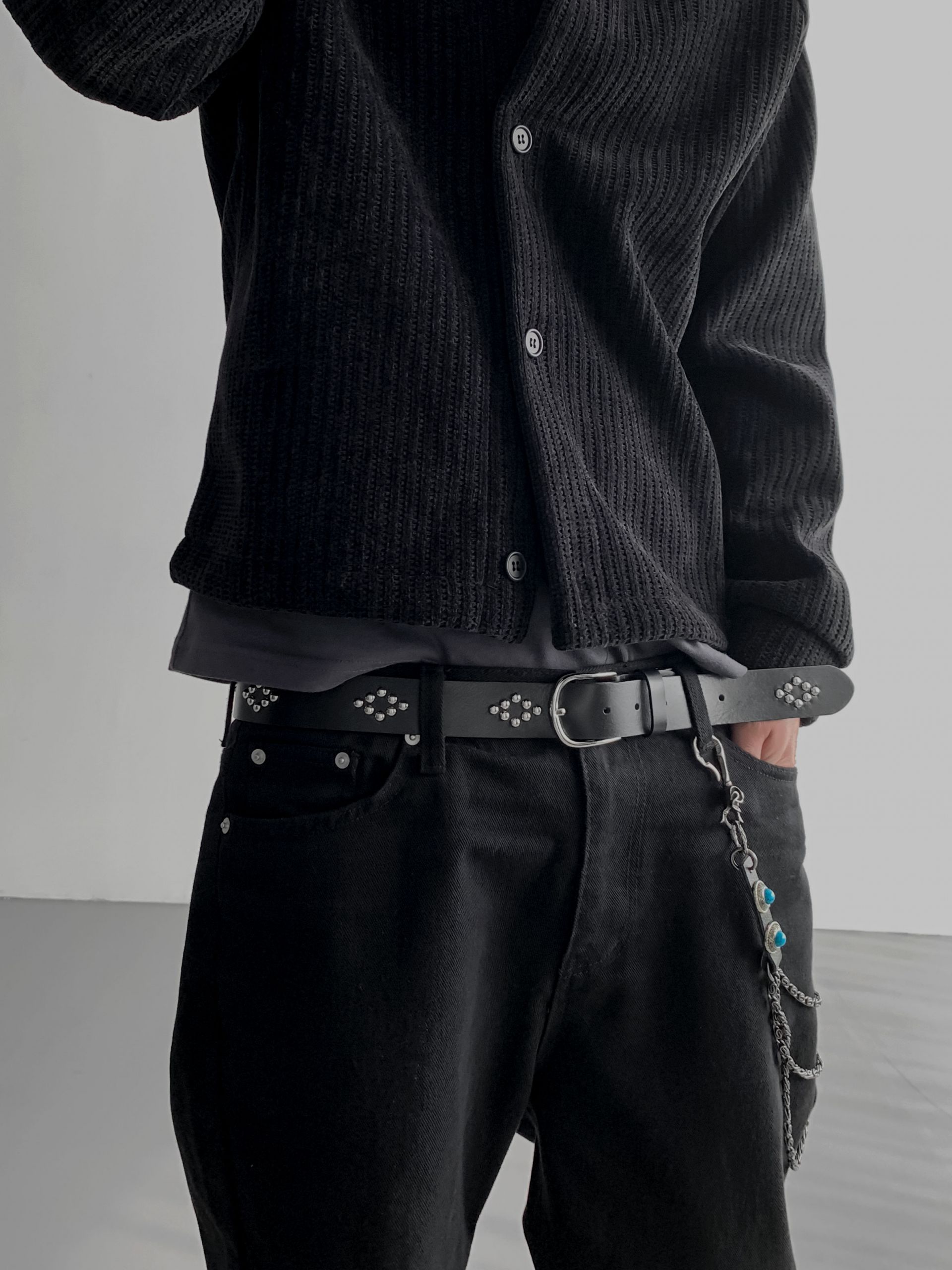 다이아 스터드 레더 벨트