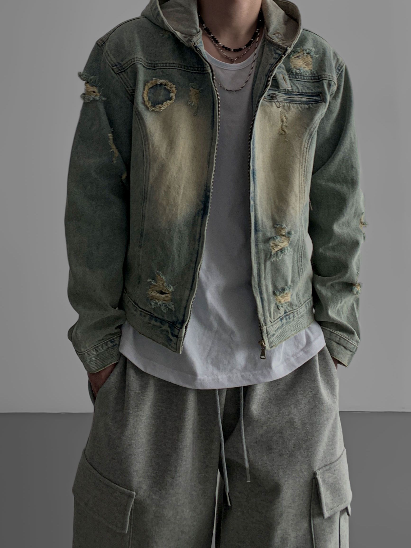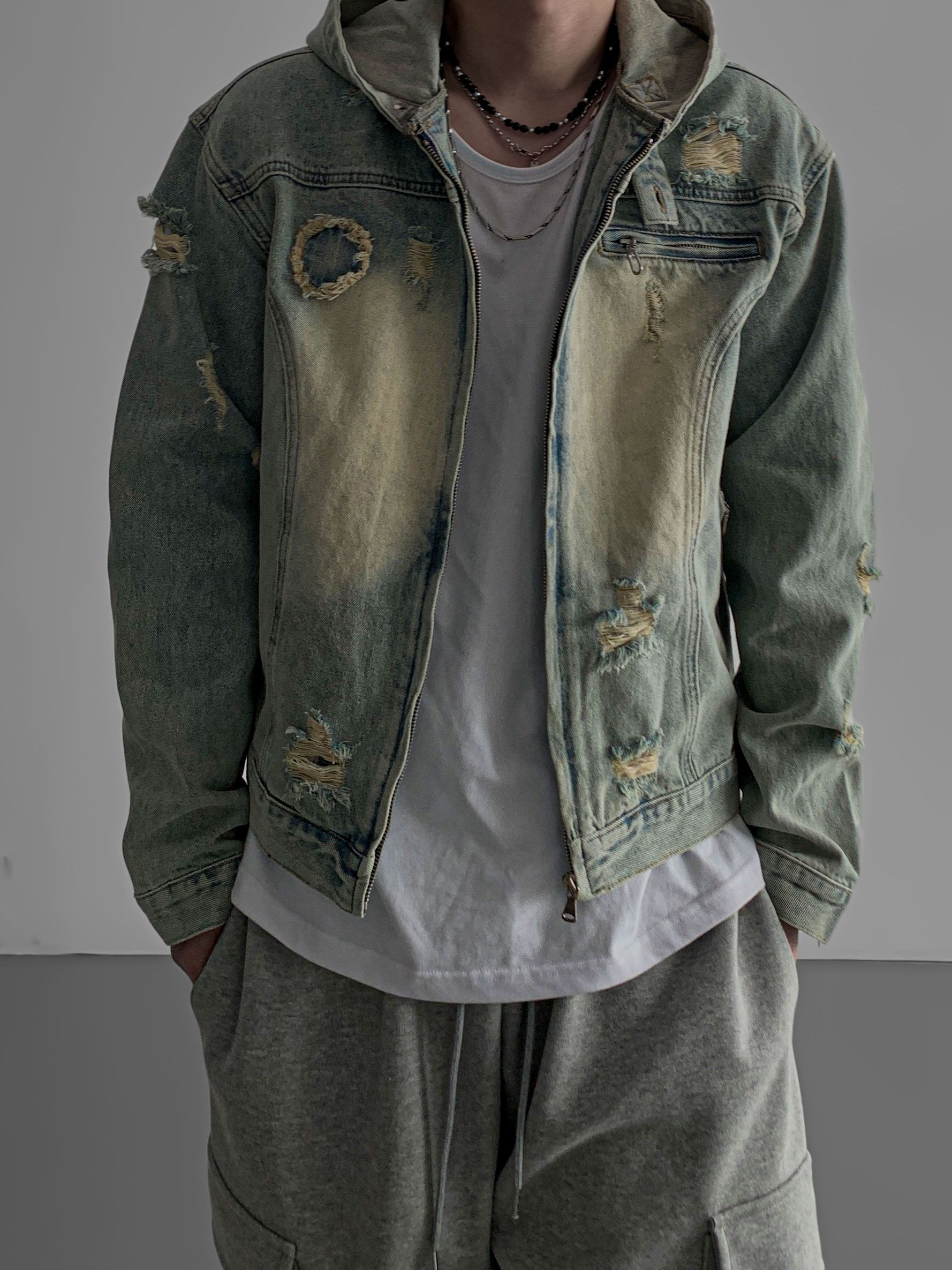 크레이 크롭 데님 후드 자켓