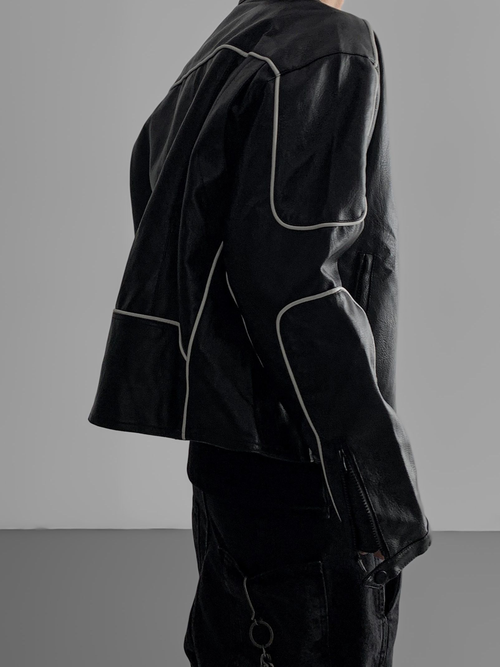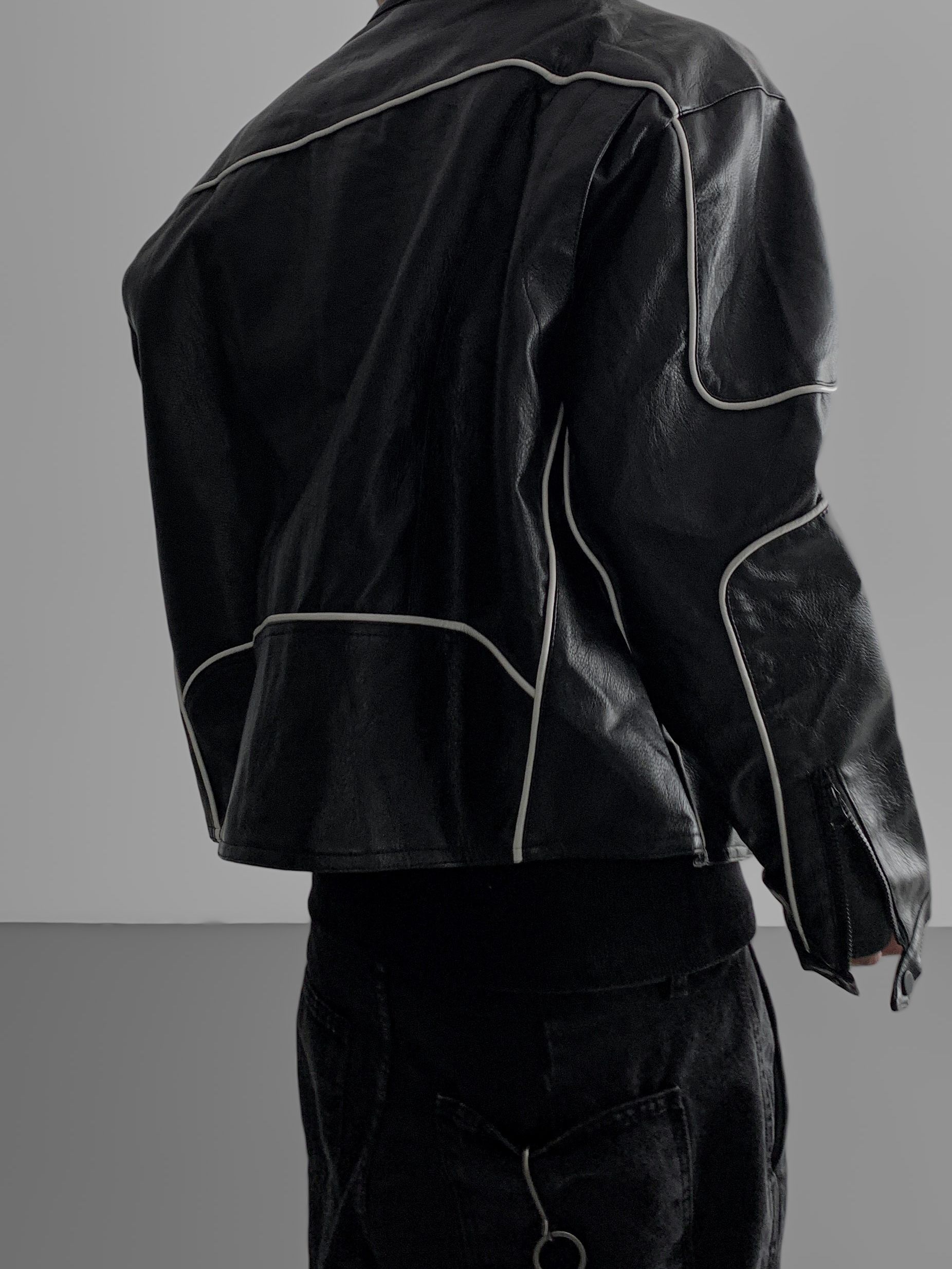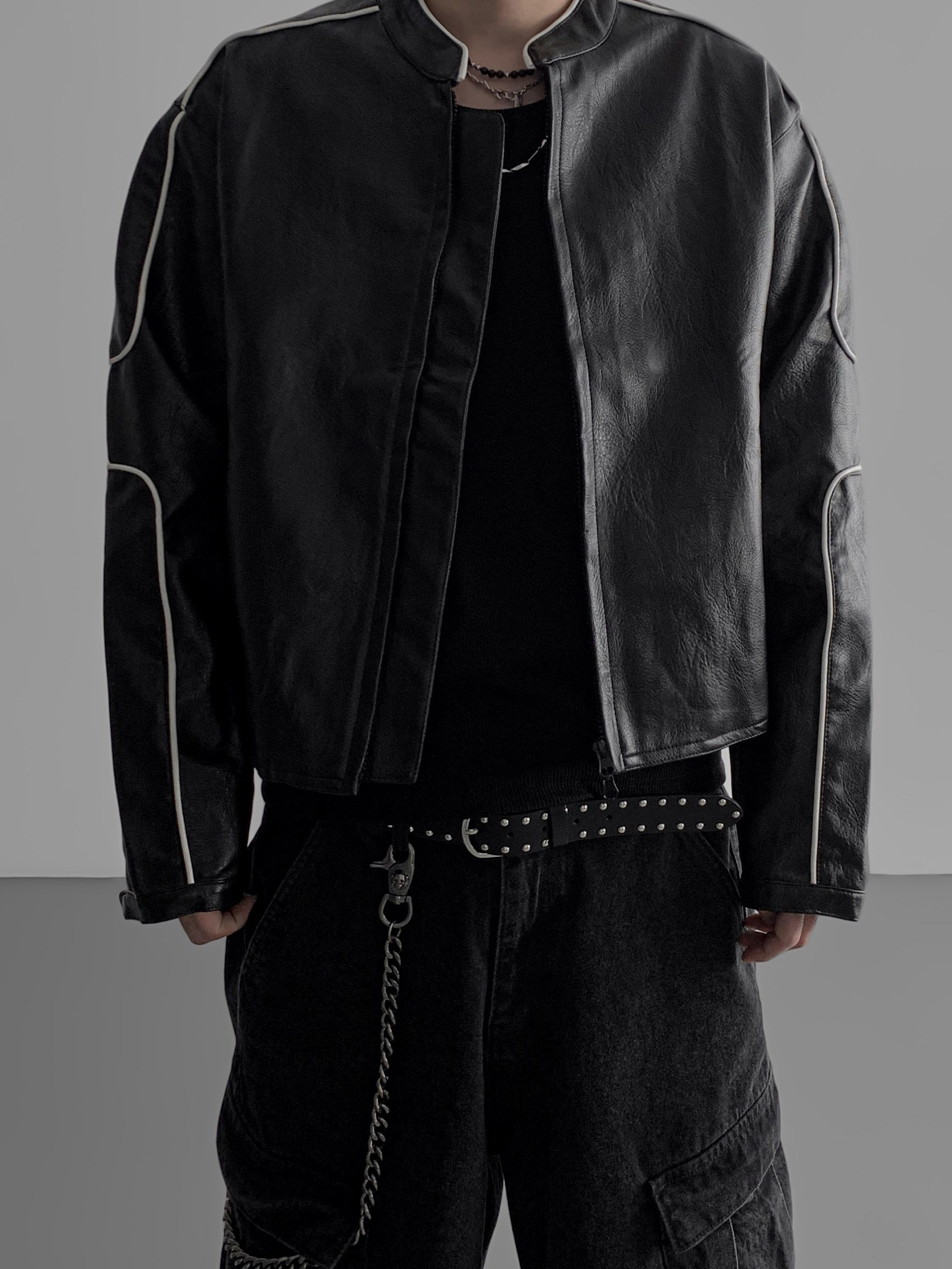파이핑 레더 자켓