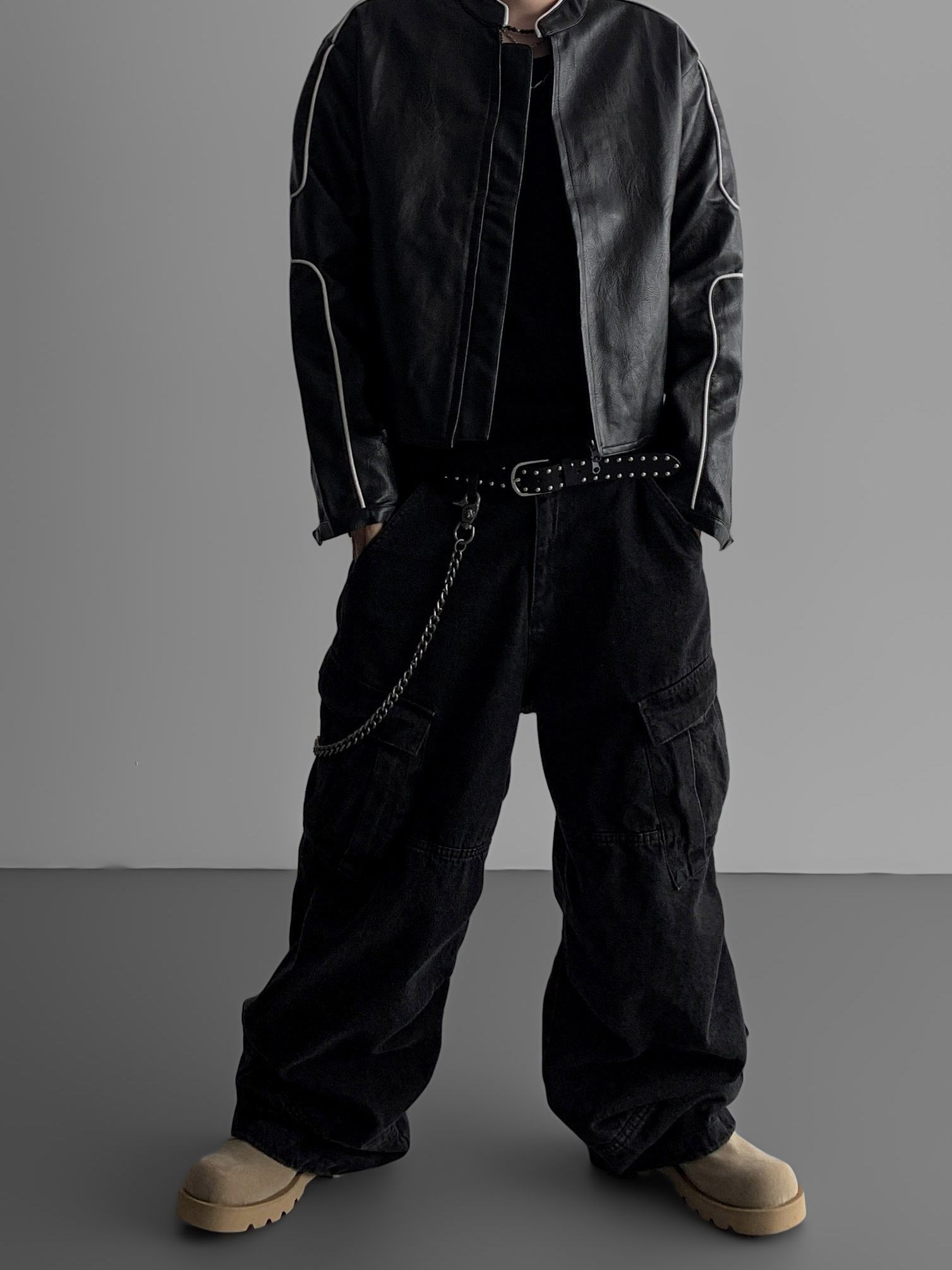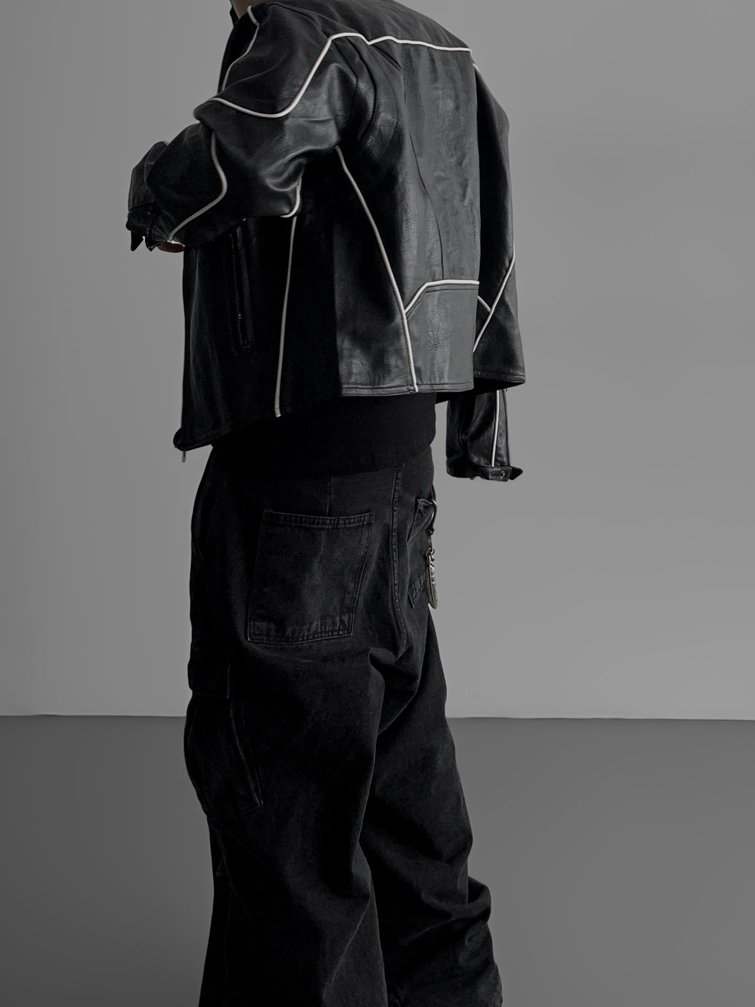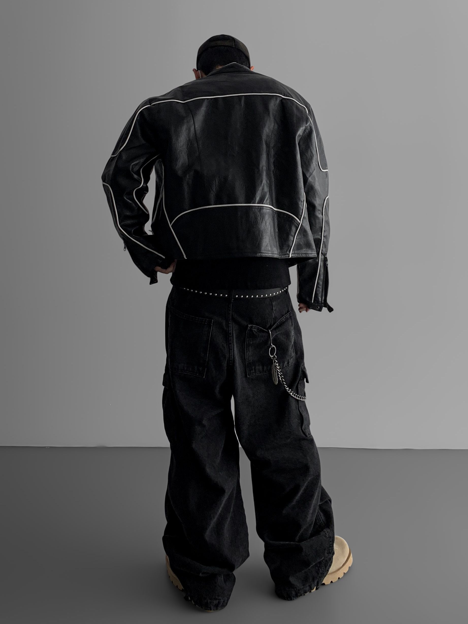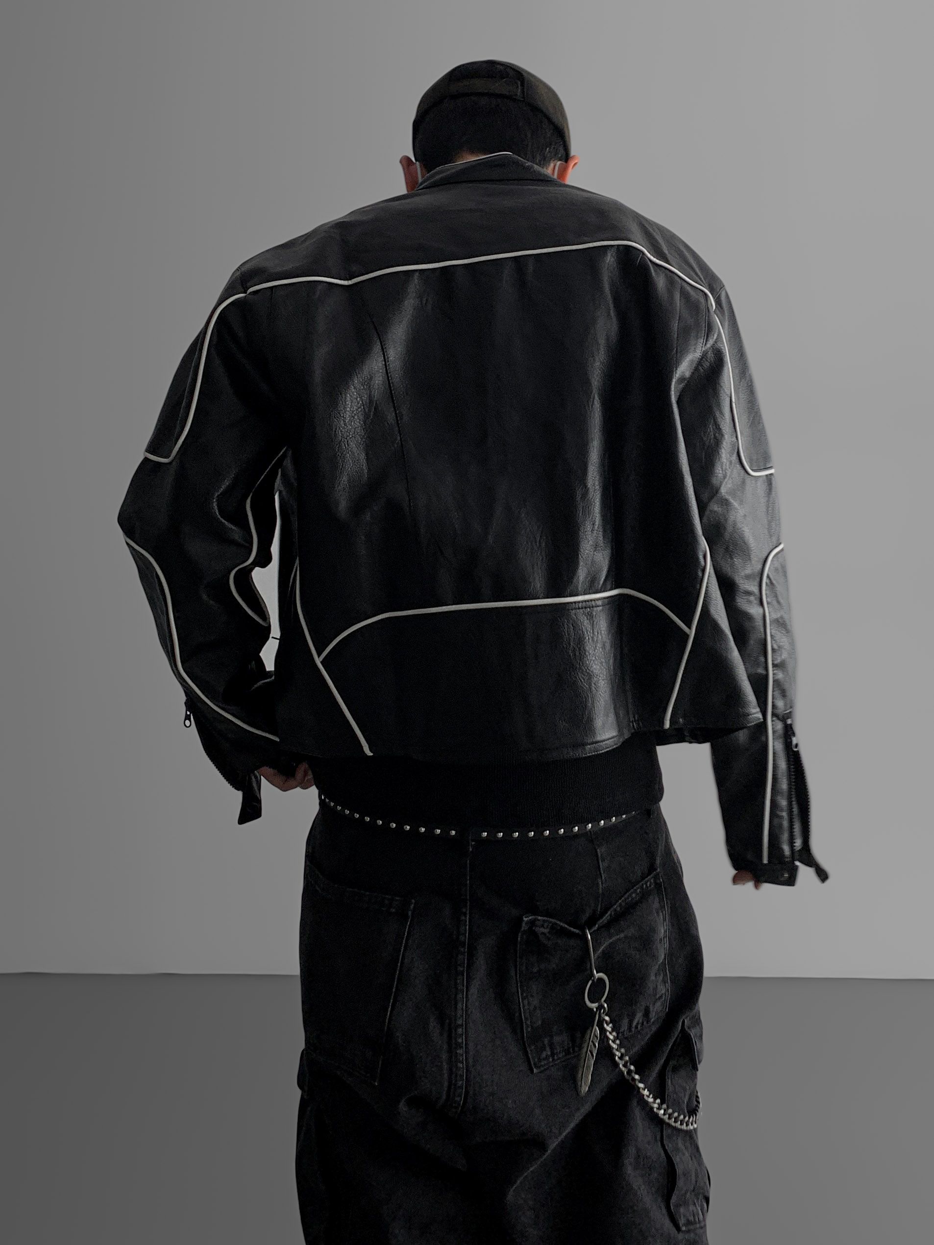 파이핑 레더 자켓