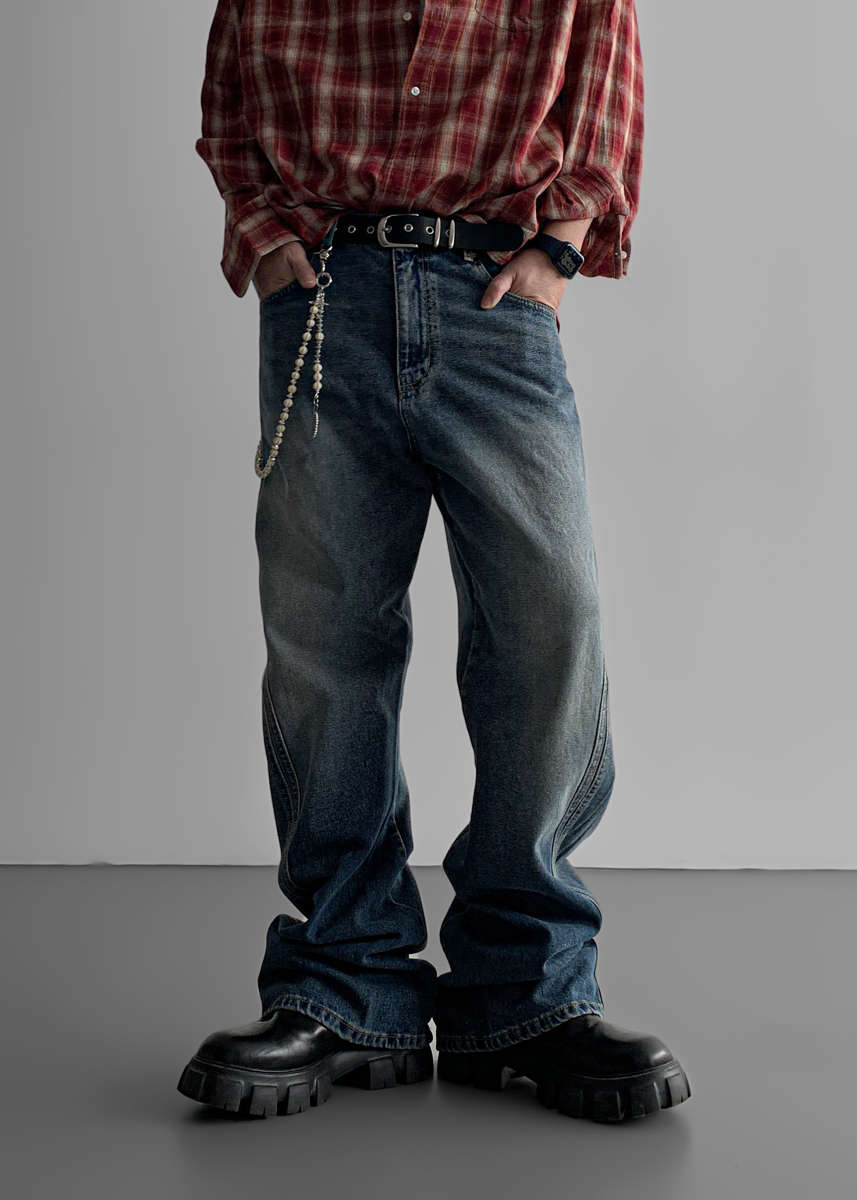 -사이드에서 앞쪽으로 내려오는 커브 절개 더블 라인