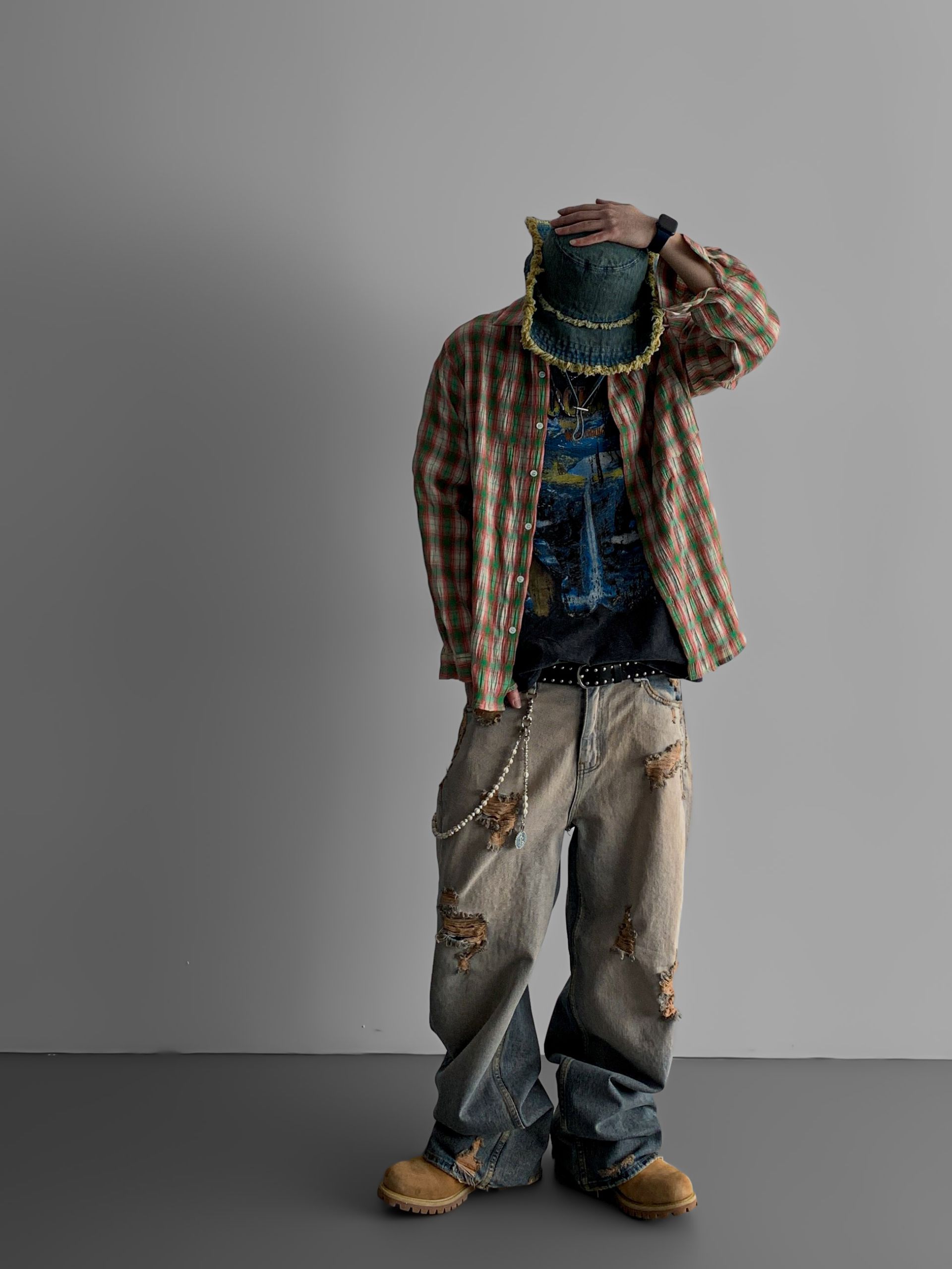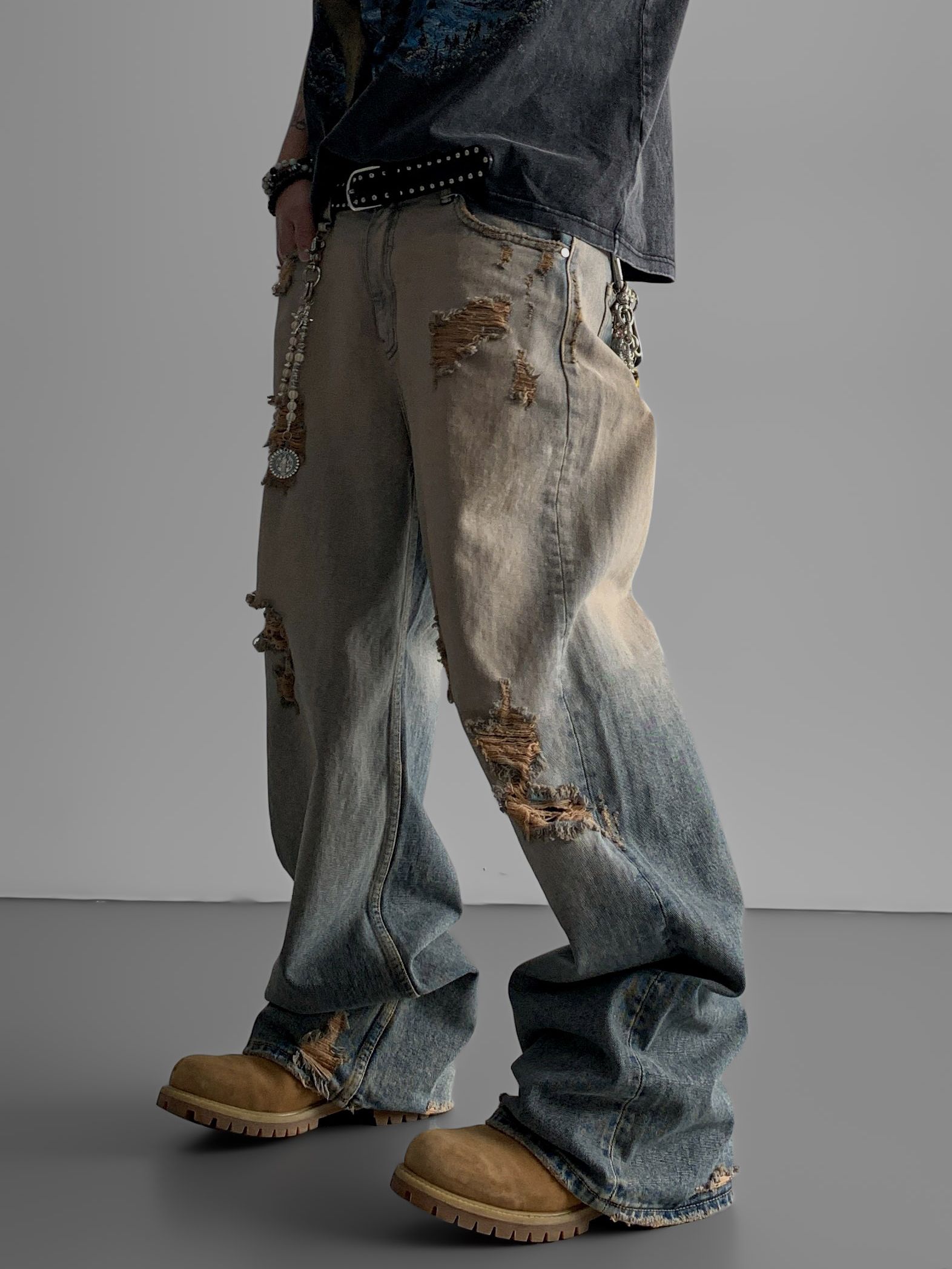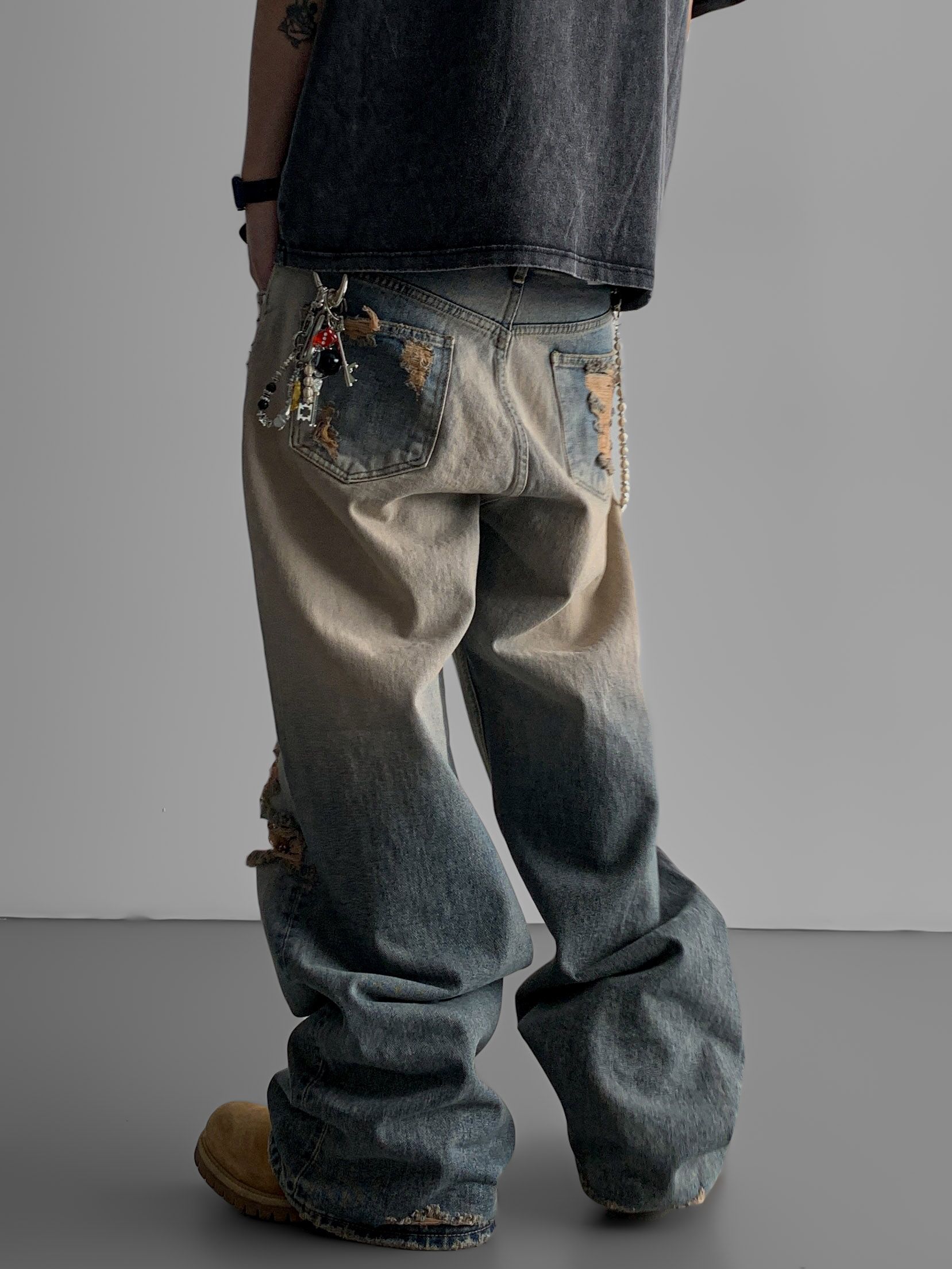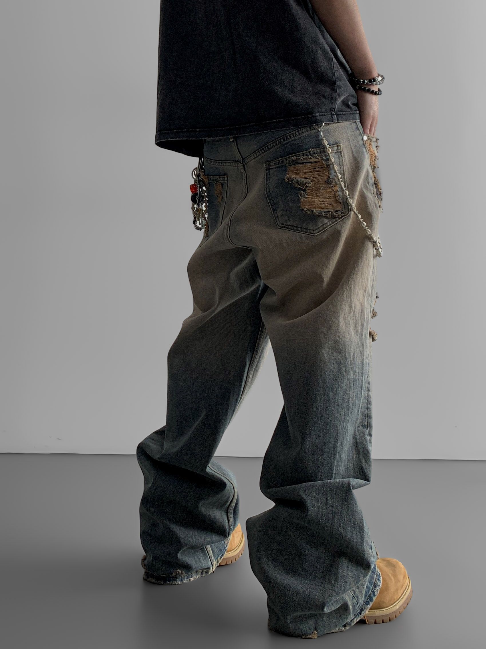 머드 데미지 데님 팬츠