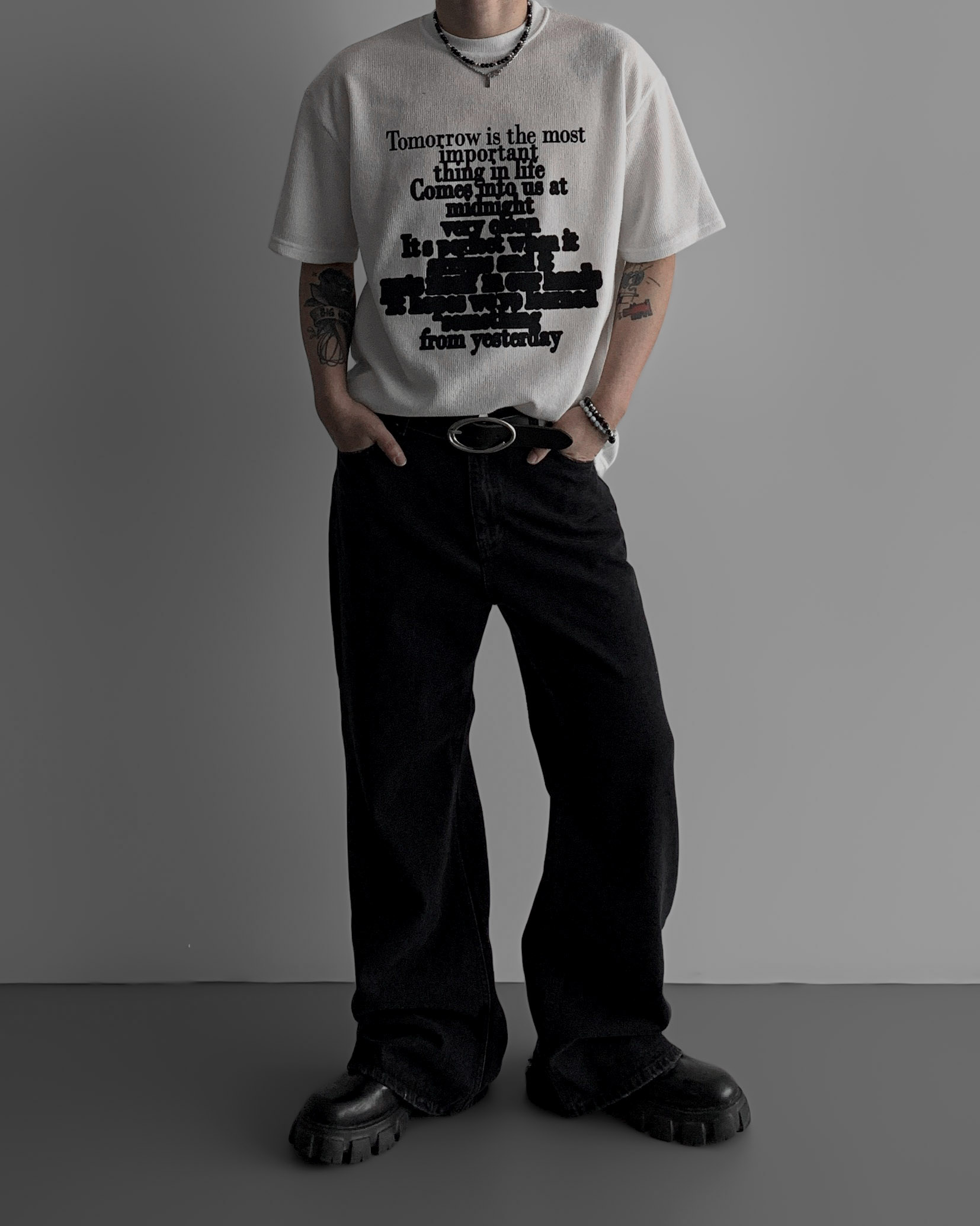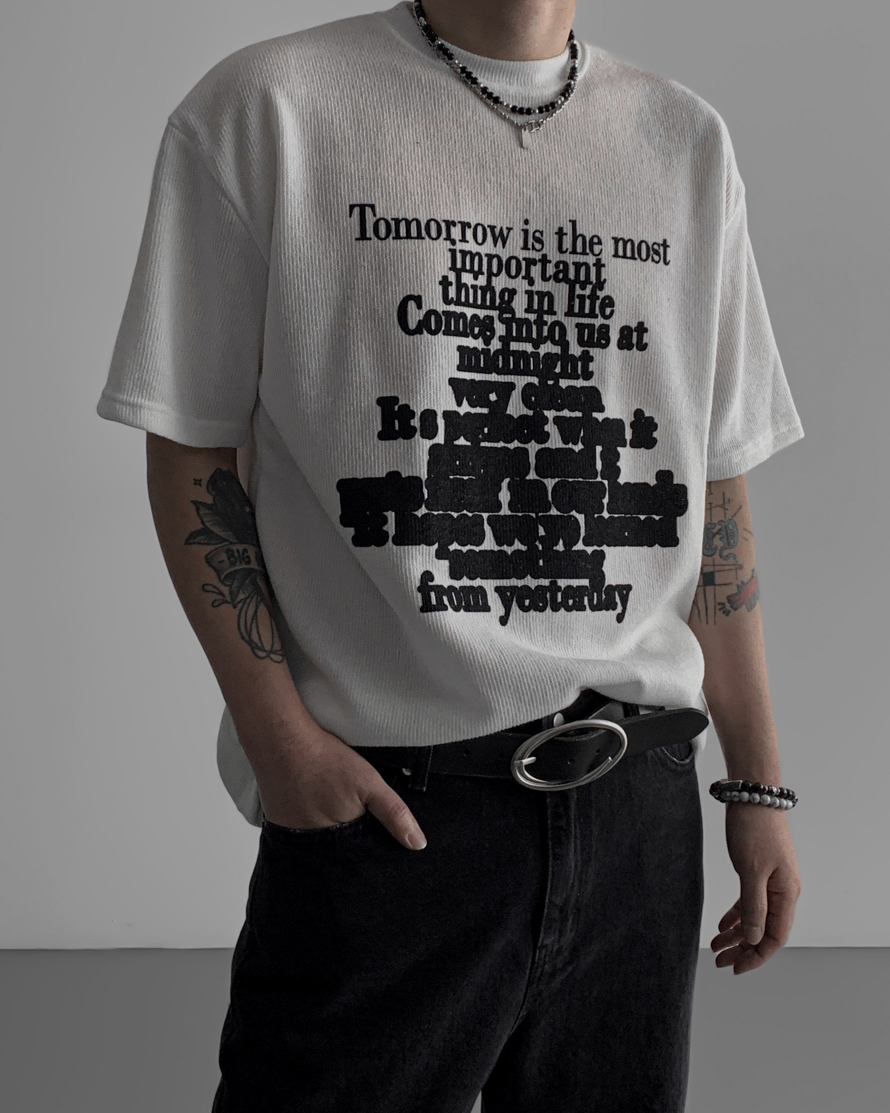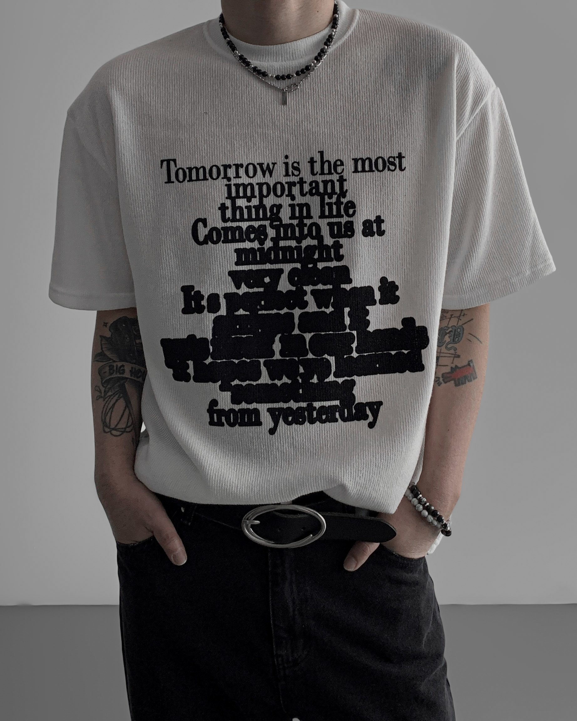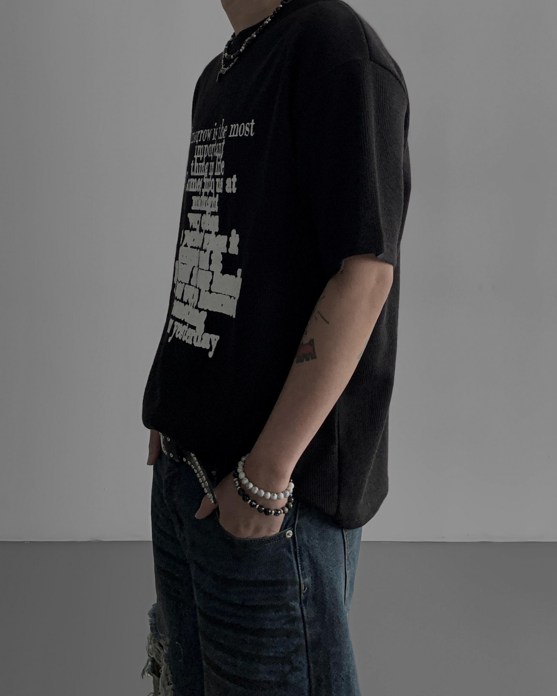 레터링 니트 오버 반팔티 (3colors)