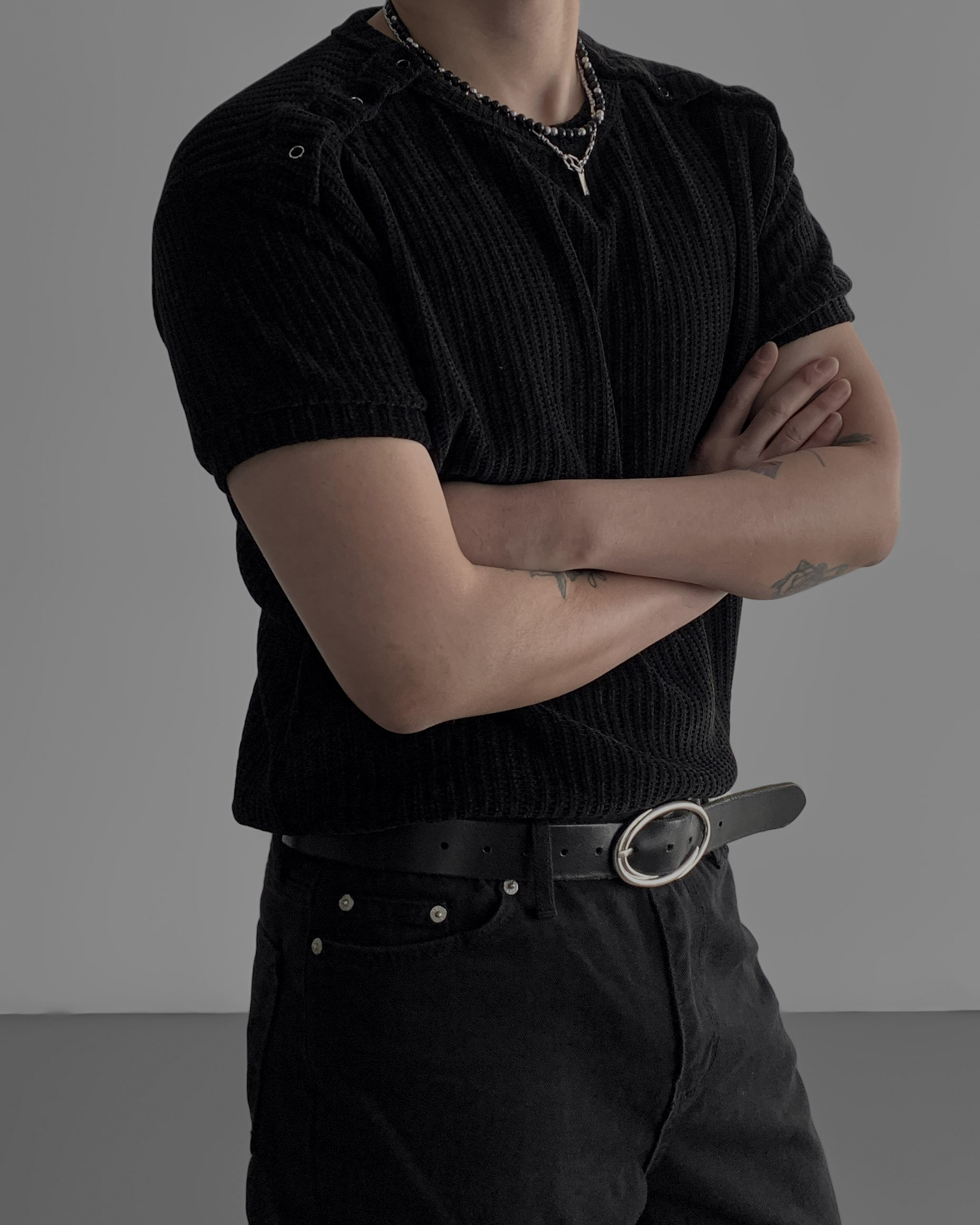 -소매 시보리로 머슬핏 연출