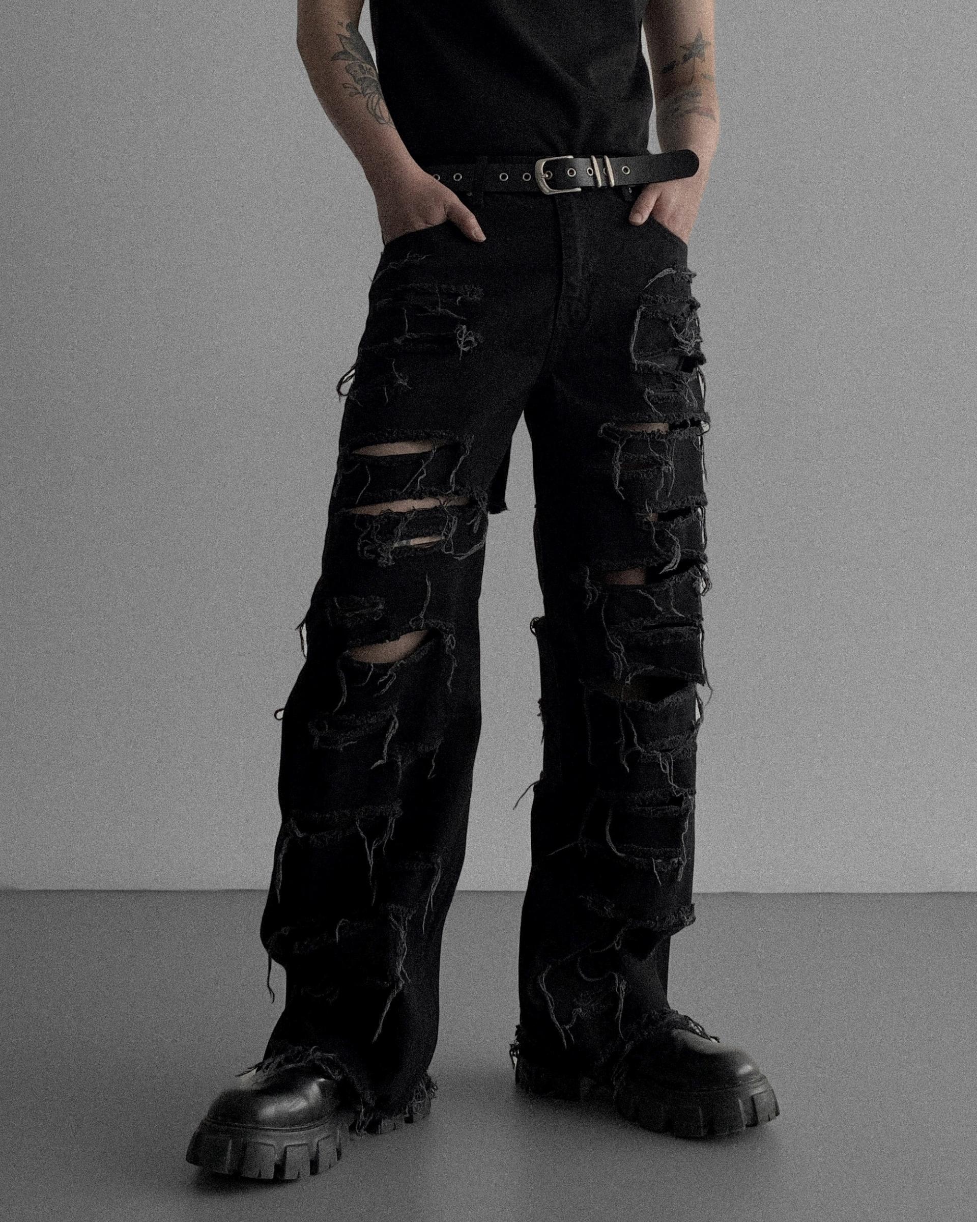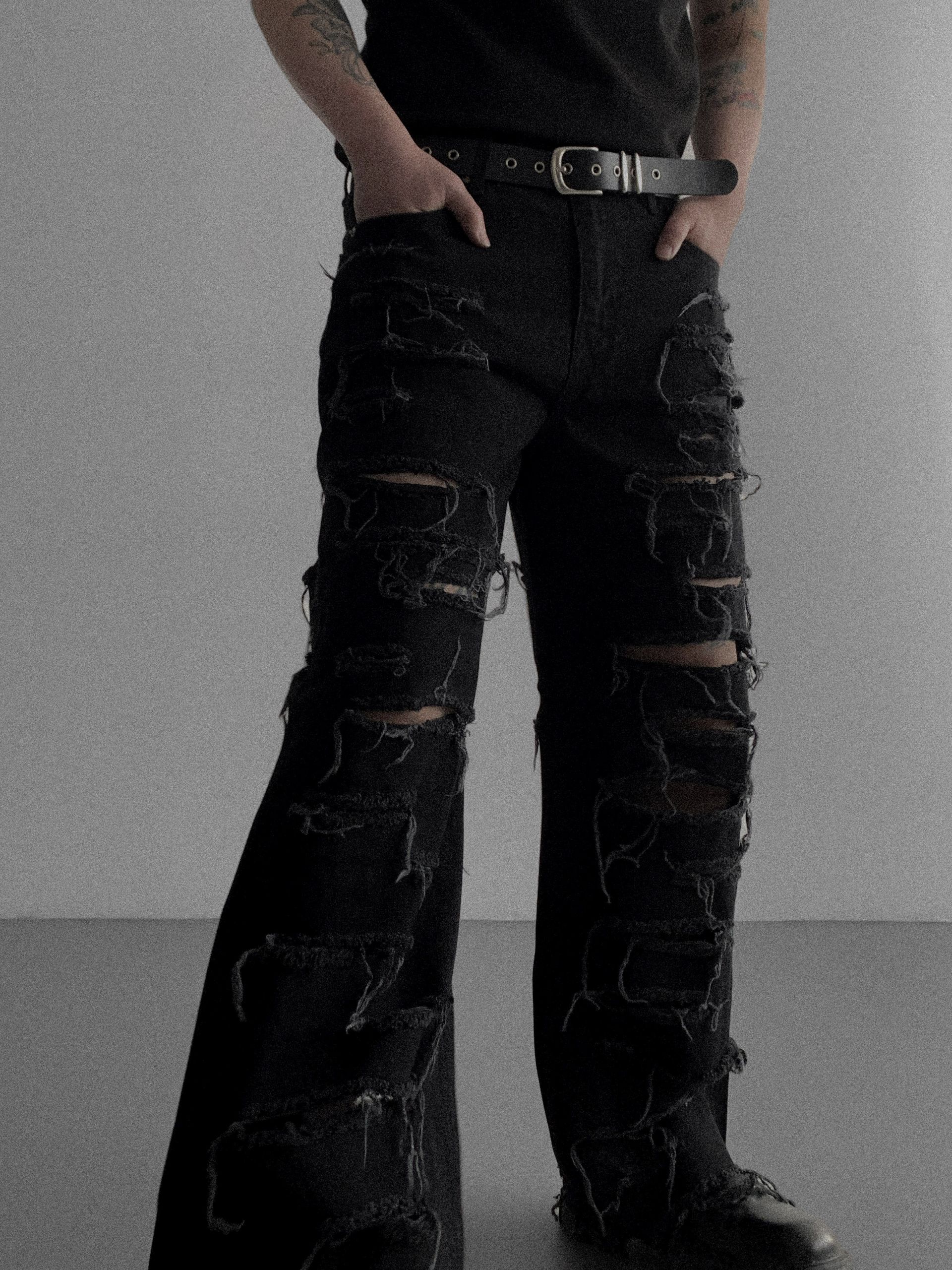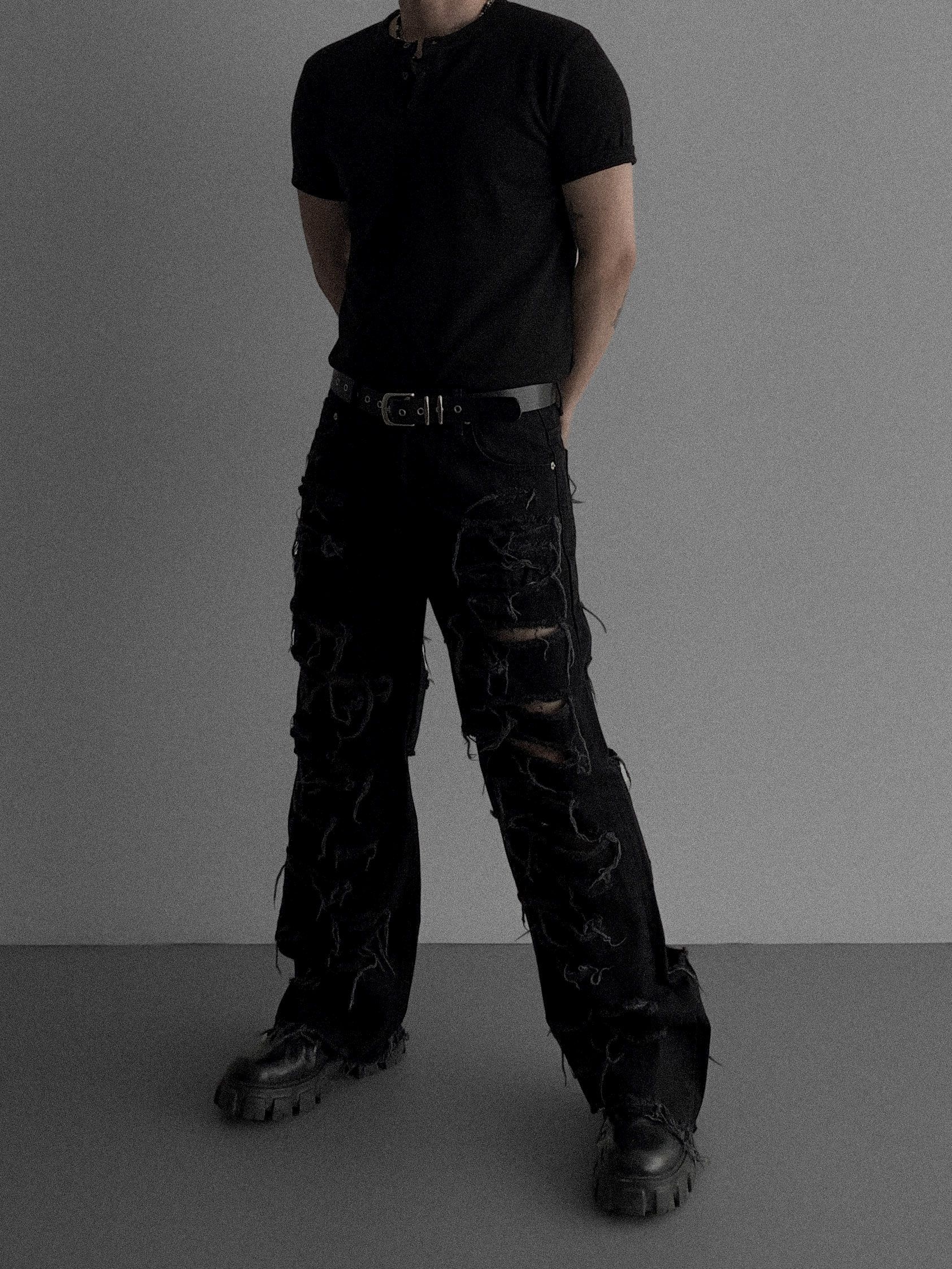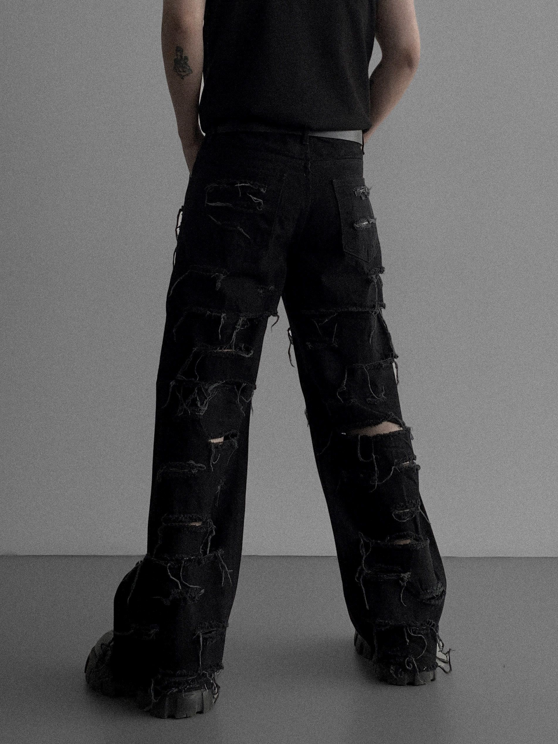 레이져 레기드 데님 팬츠 (2colors)
