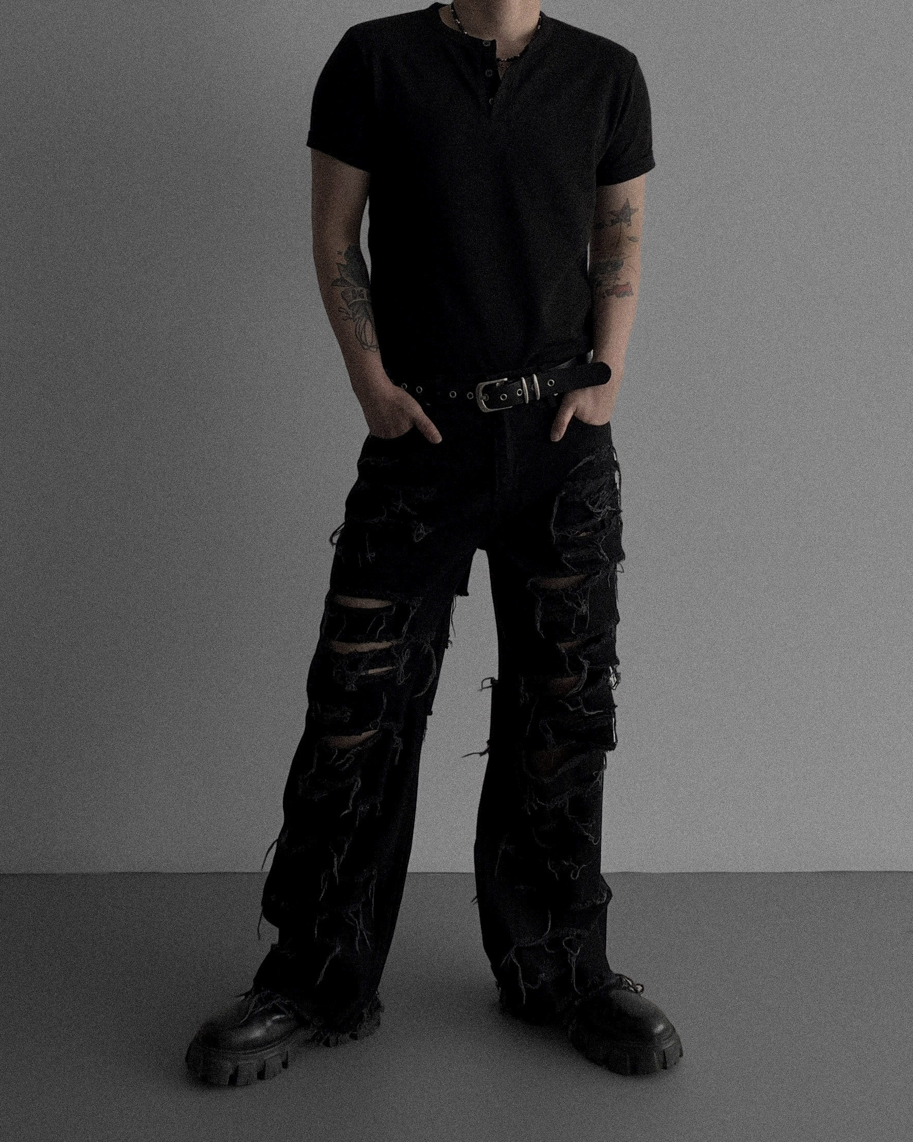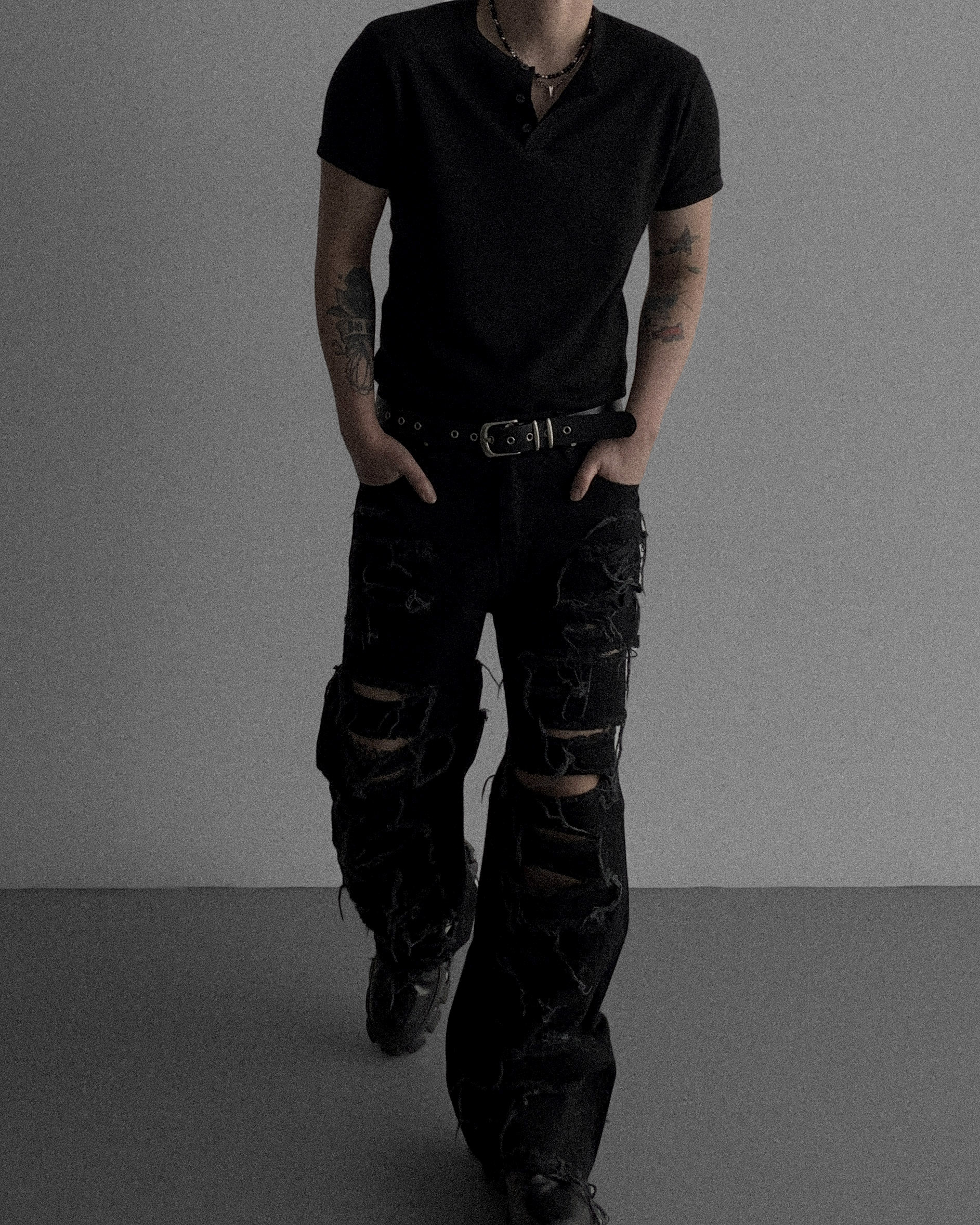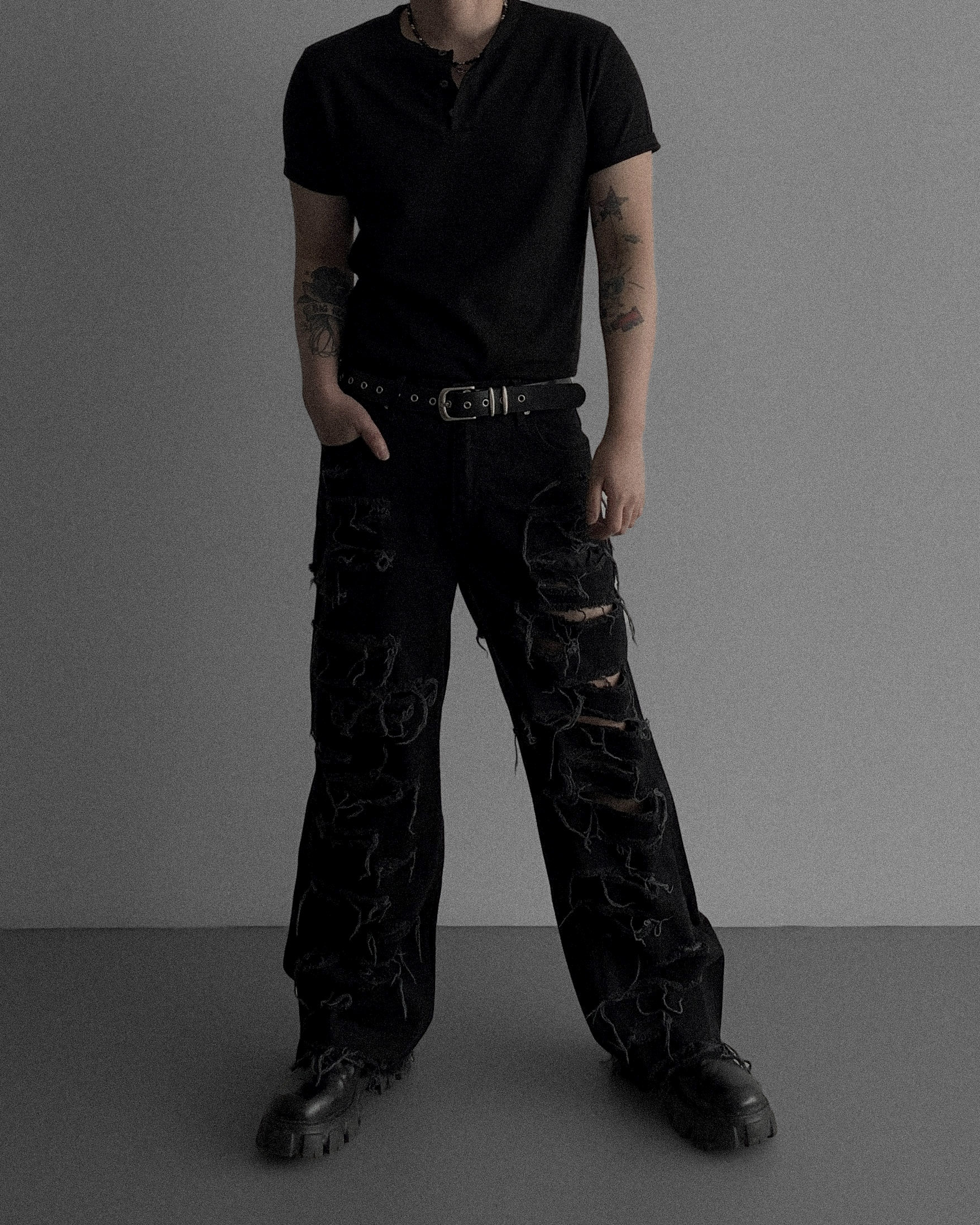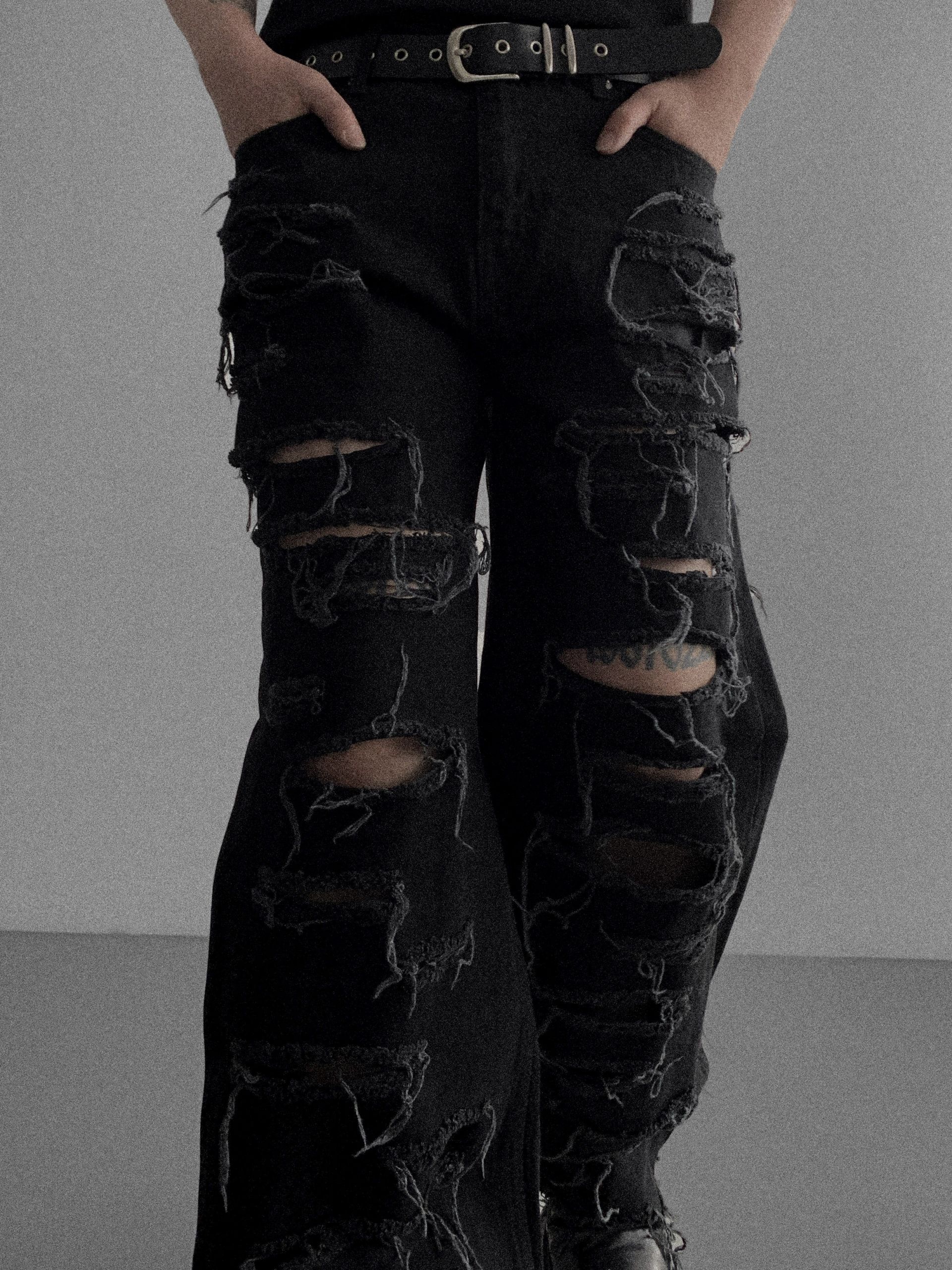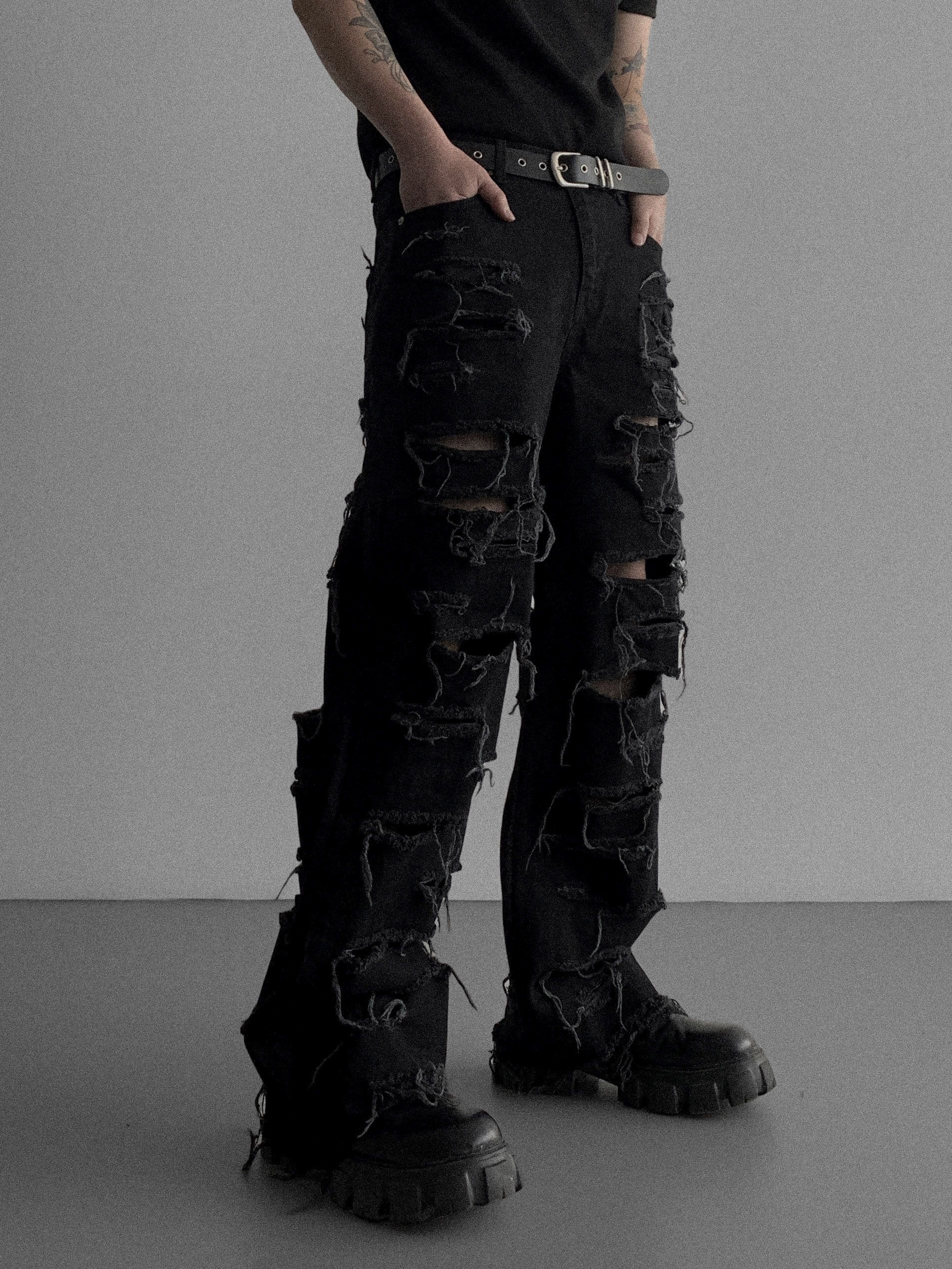 레이져 레기드 데님 팬츠 (2colors)