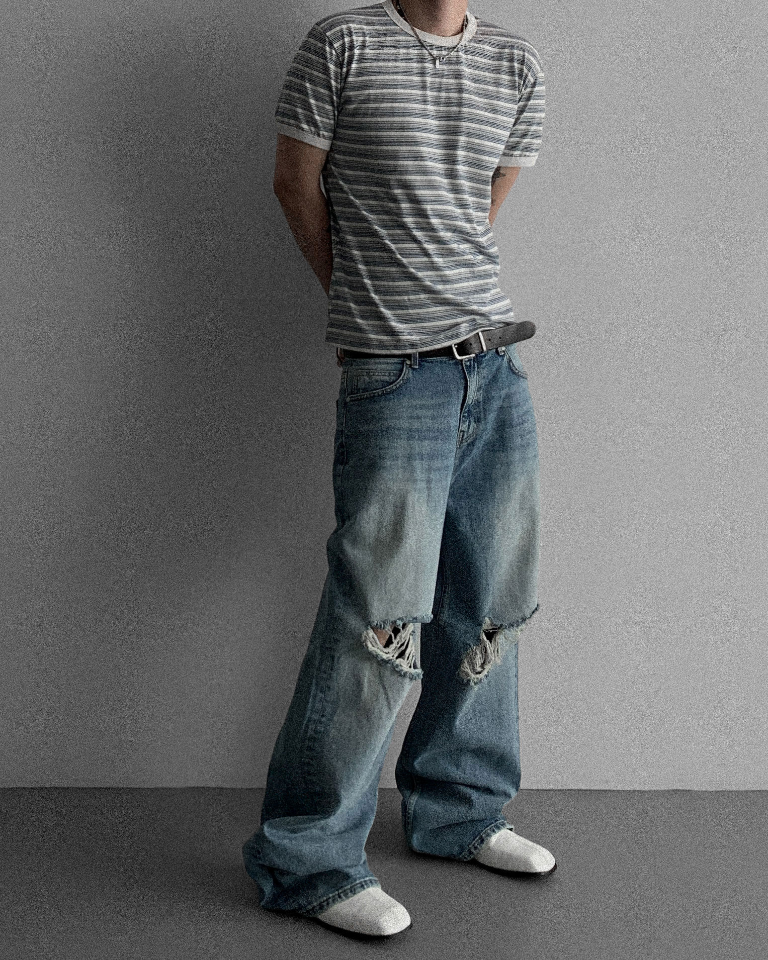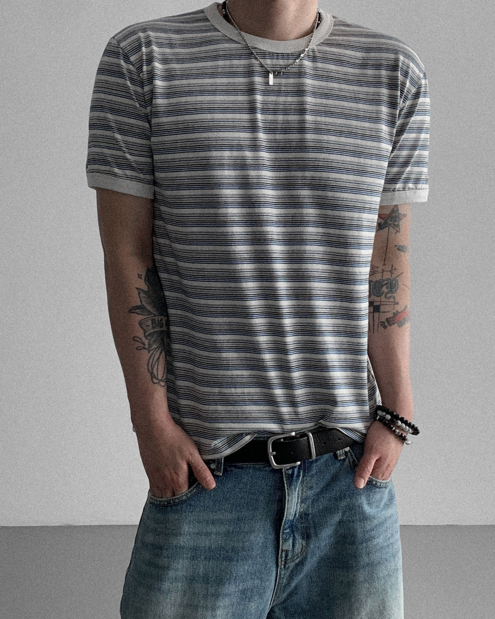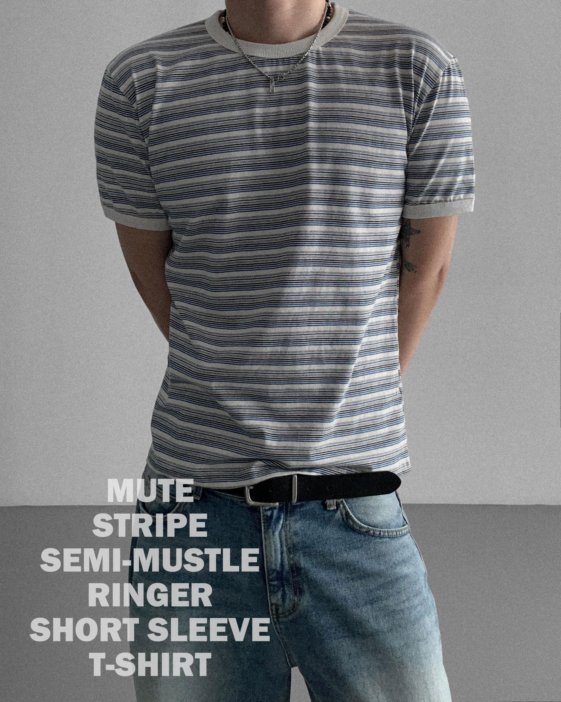 뮤트 스트라이프 링거 반팔티 (2colors)