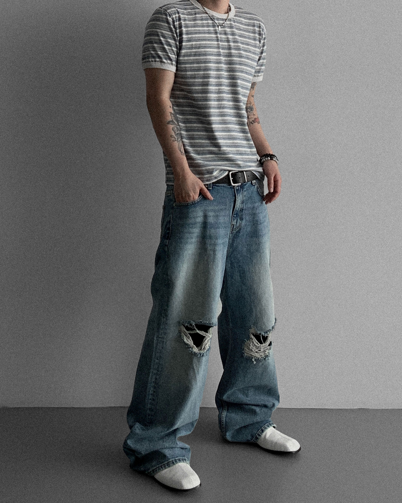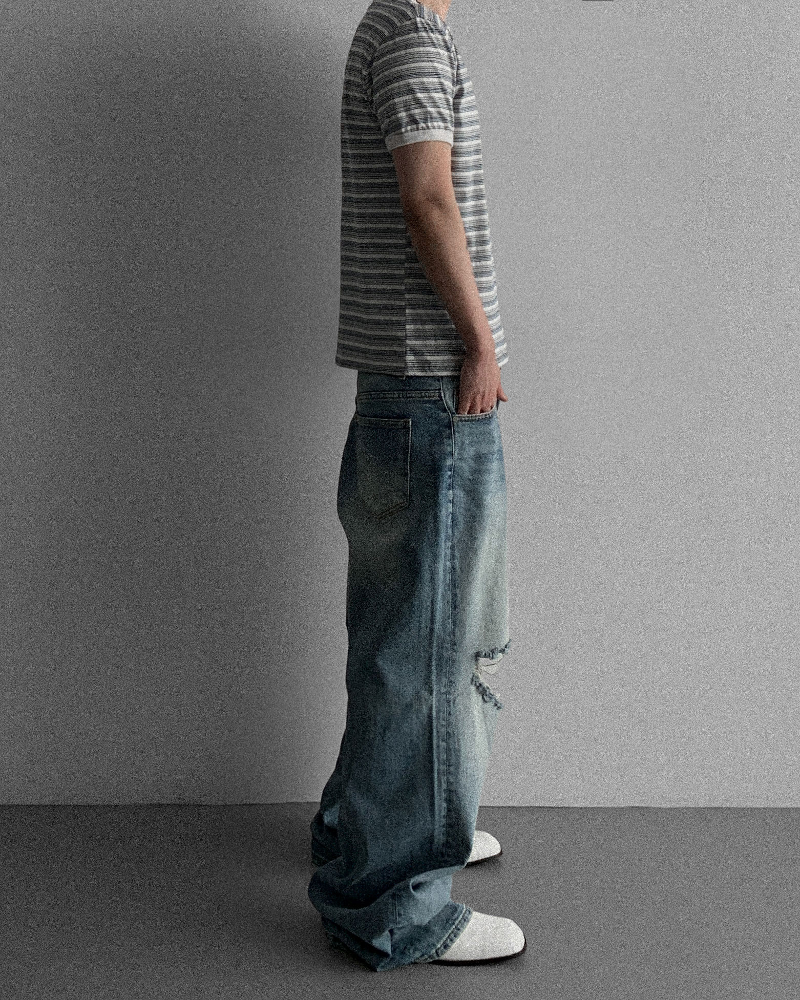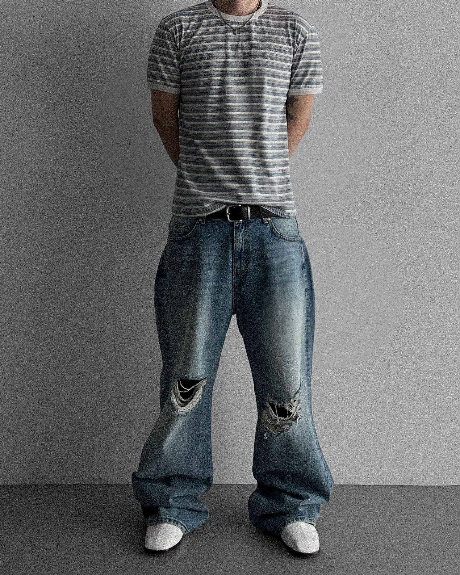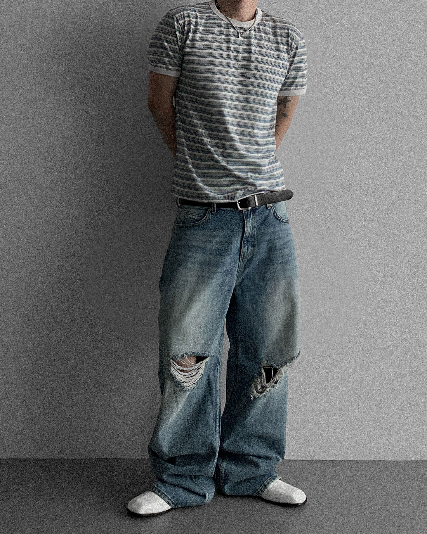 뮤트 스트라이프 링거 반팔티 (2colors)