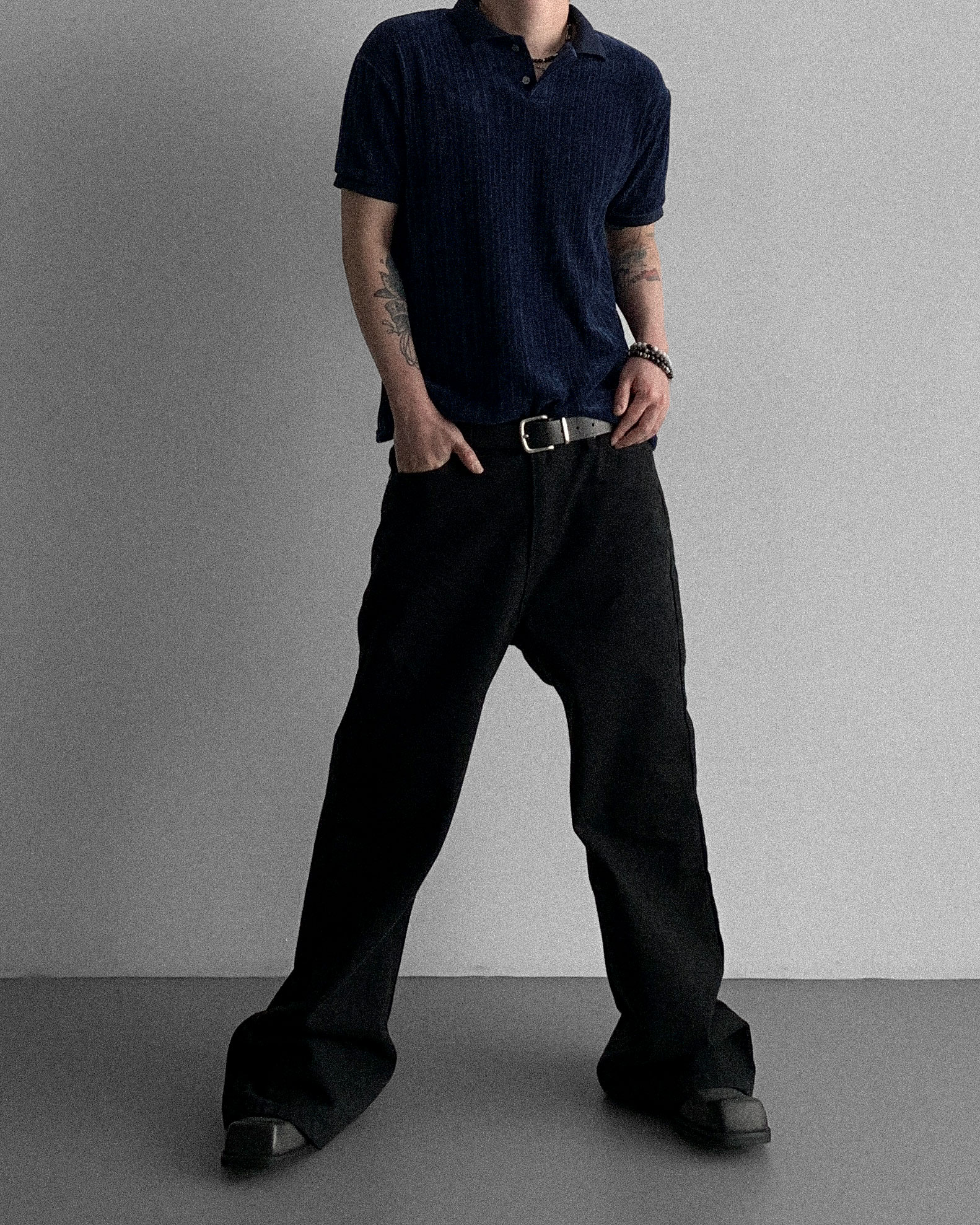 벨로아 골지 세미 머슬 카라 반팔티 (2colors)
