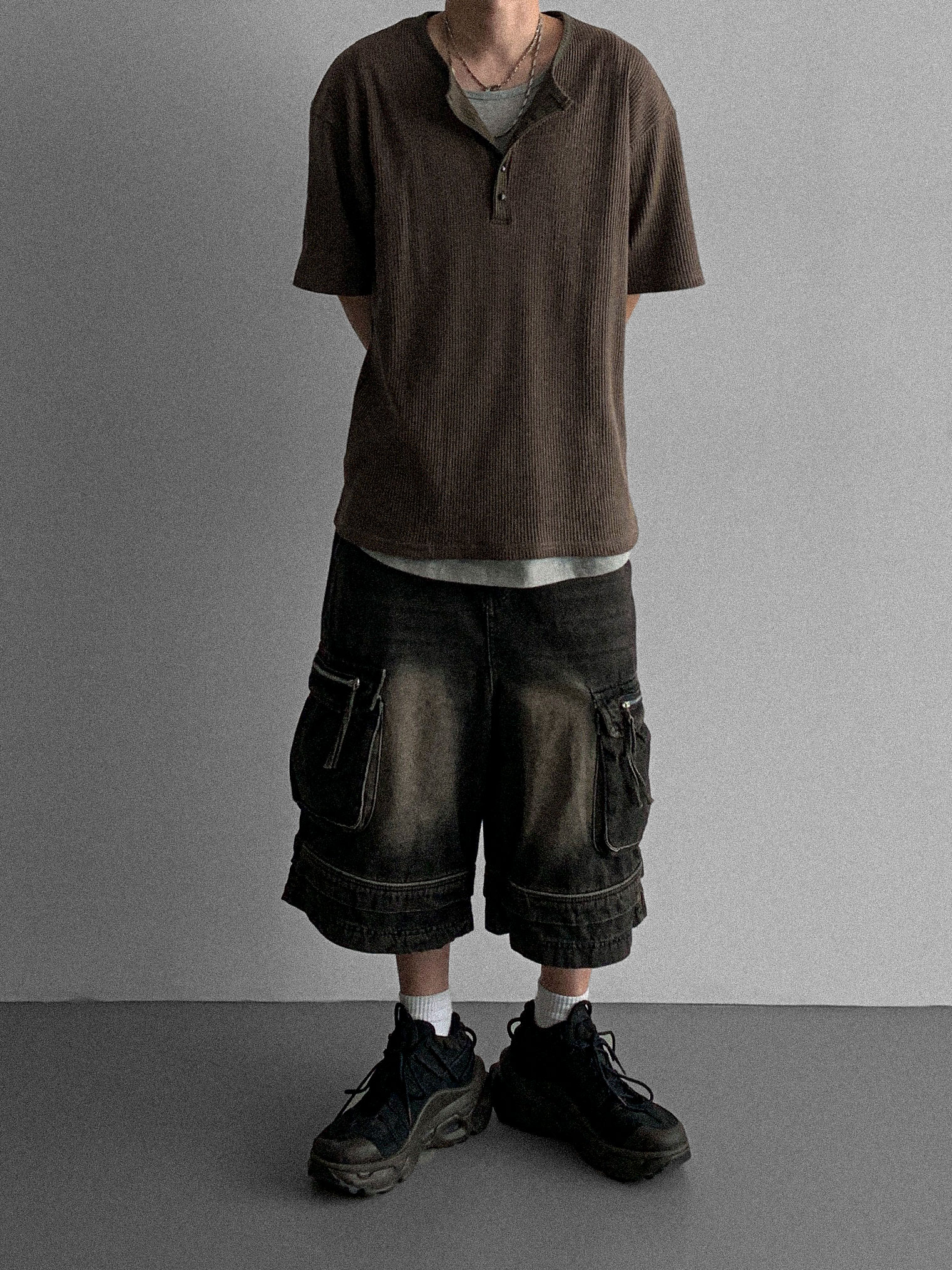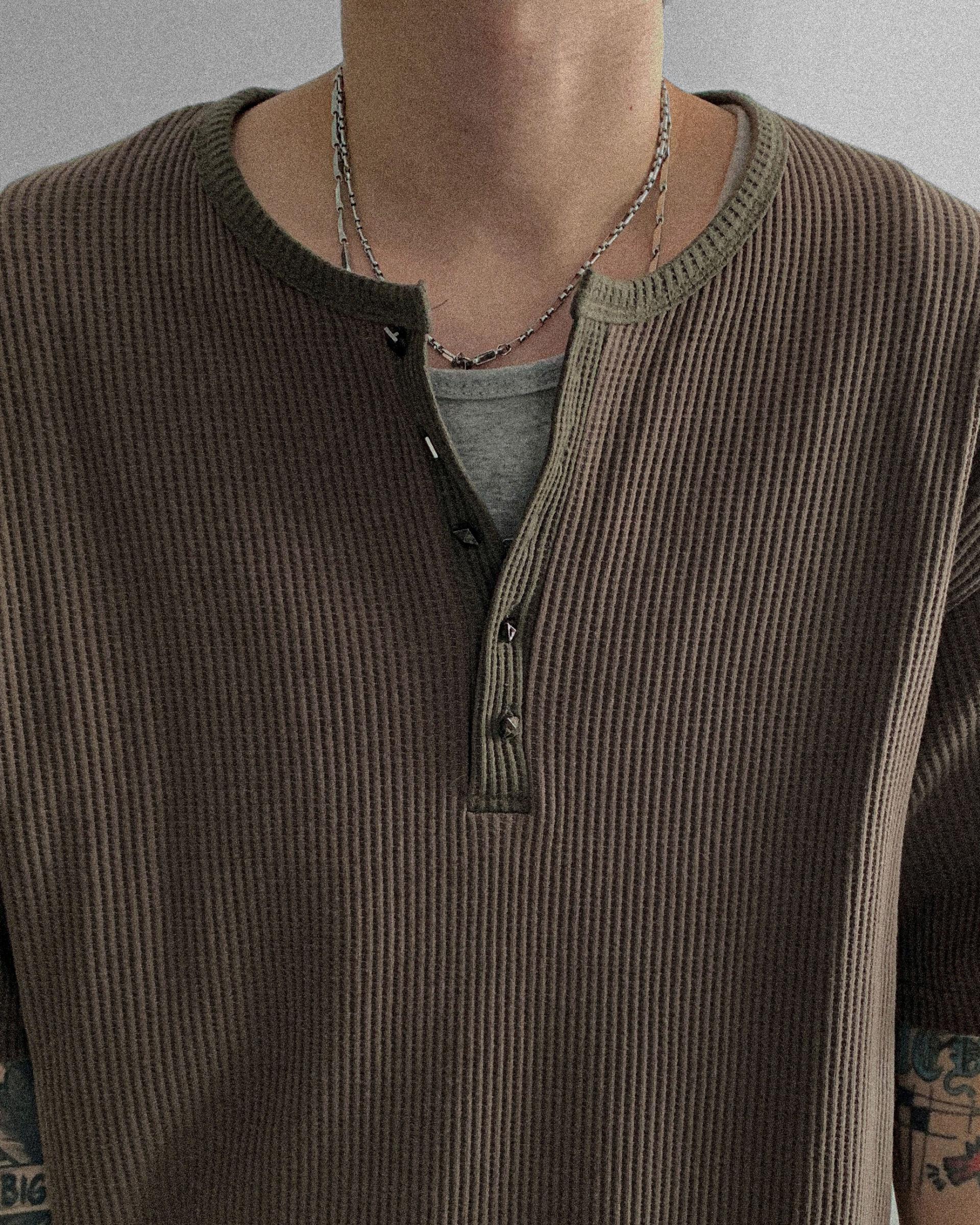 와플 헨리넥 링거 오버핏 반팔티 (4colors)