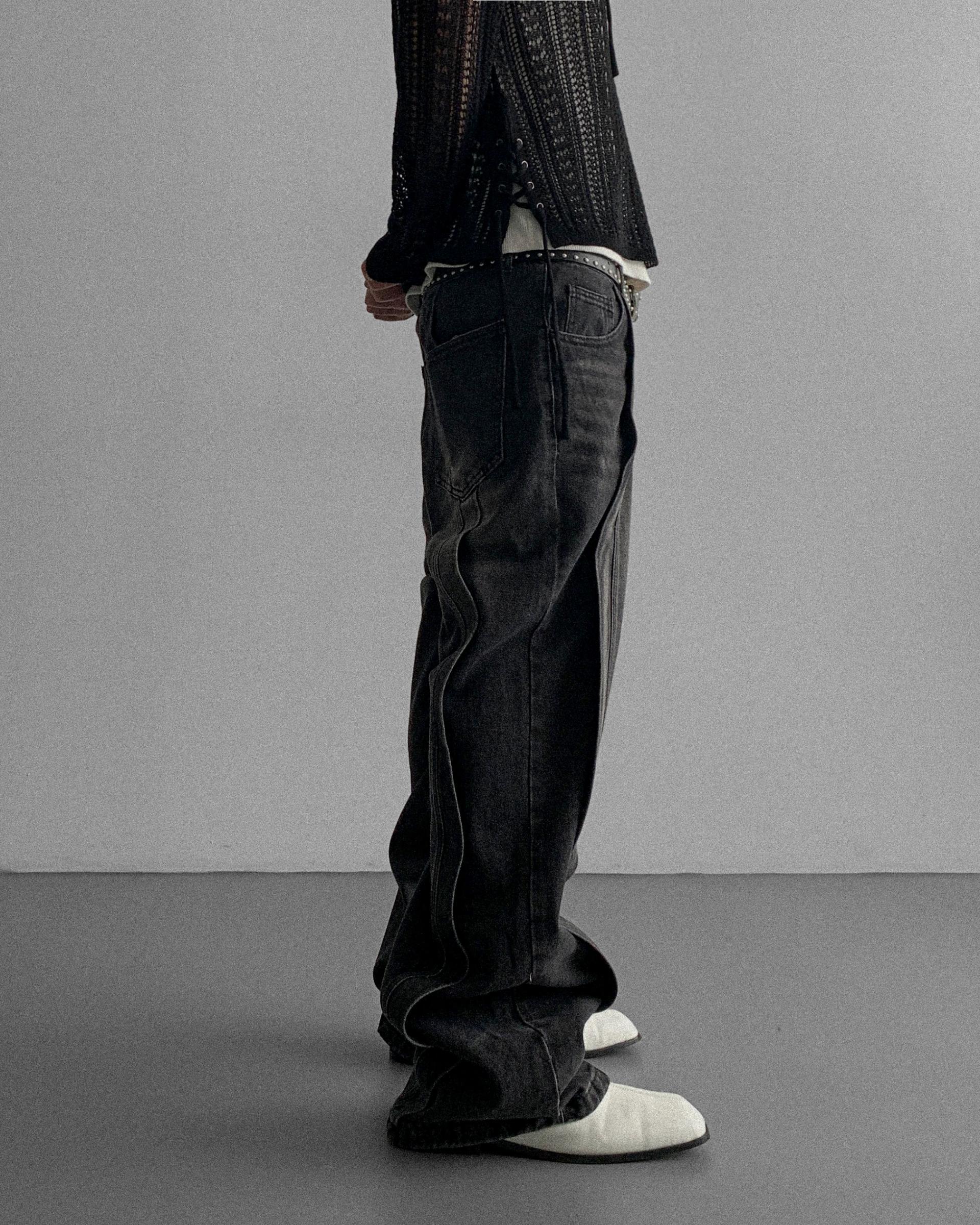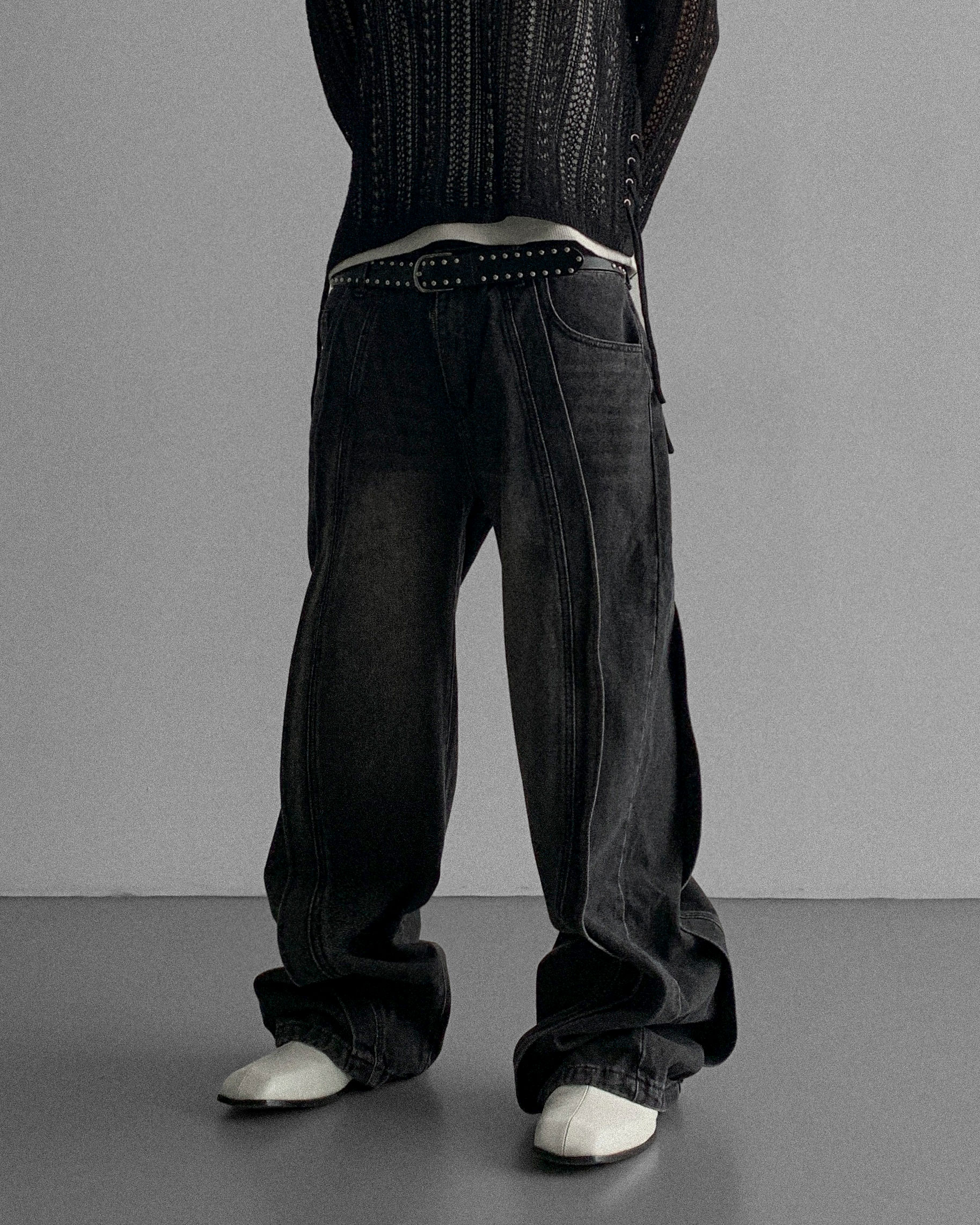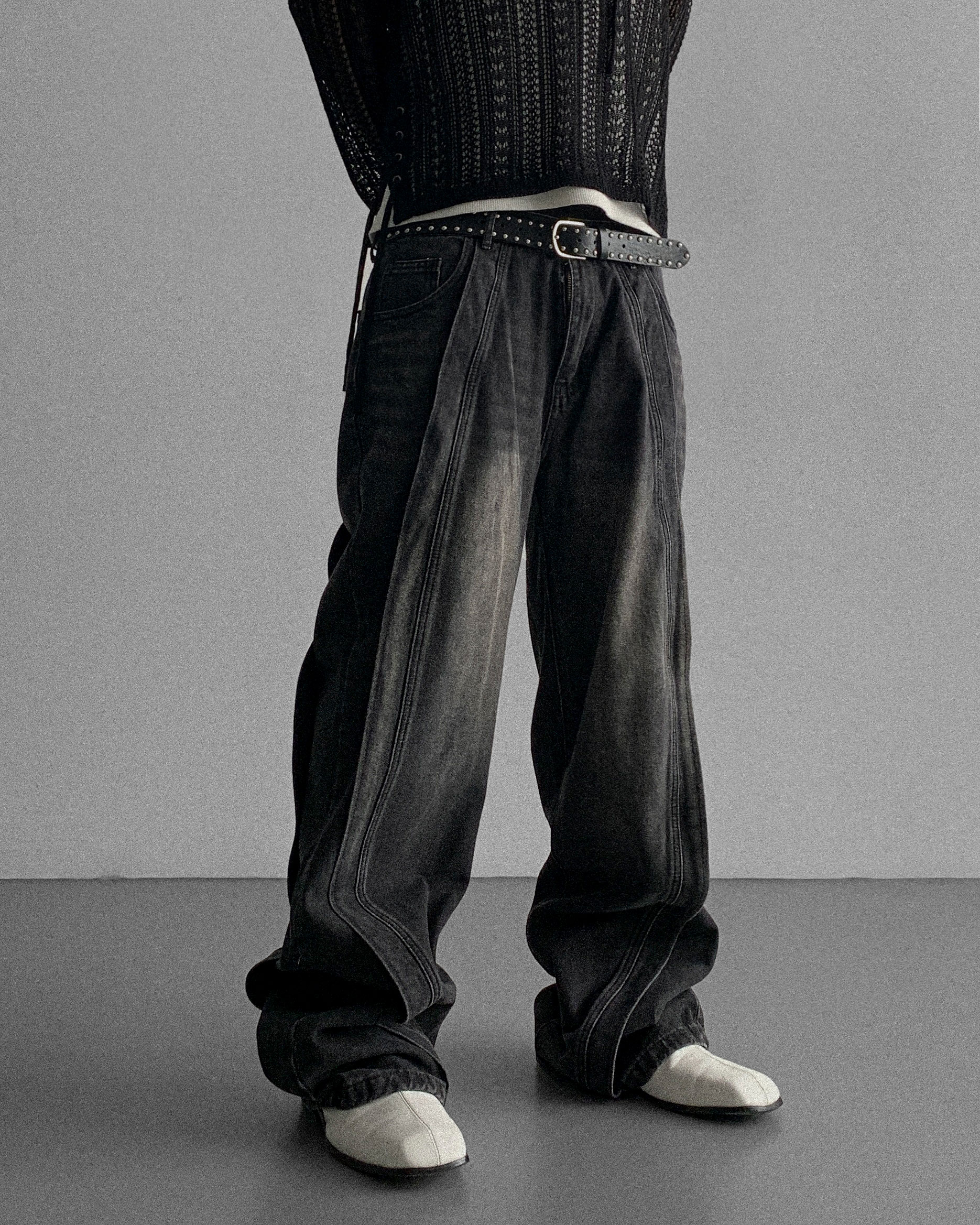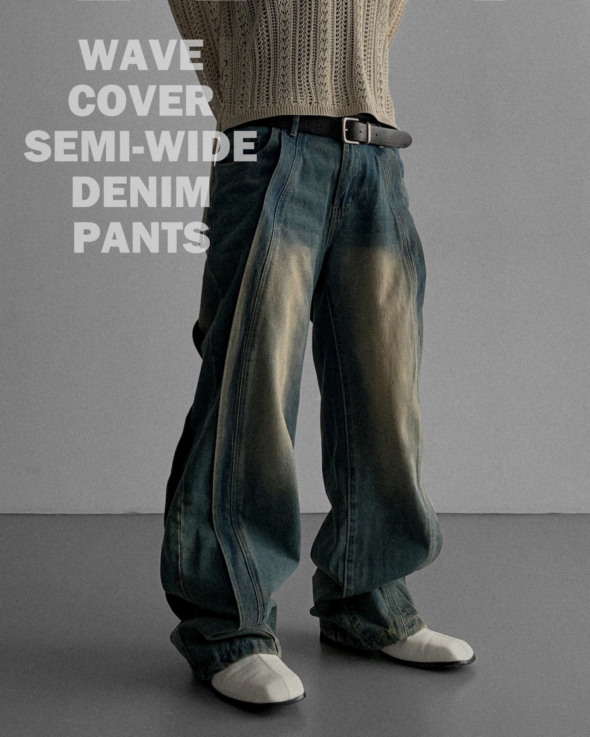 웨이브 커버 세미와이드 데님 팬츠 (2colors)