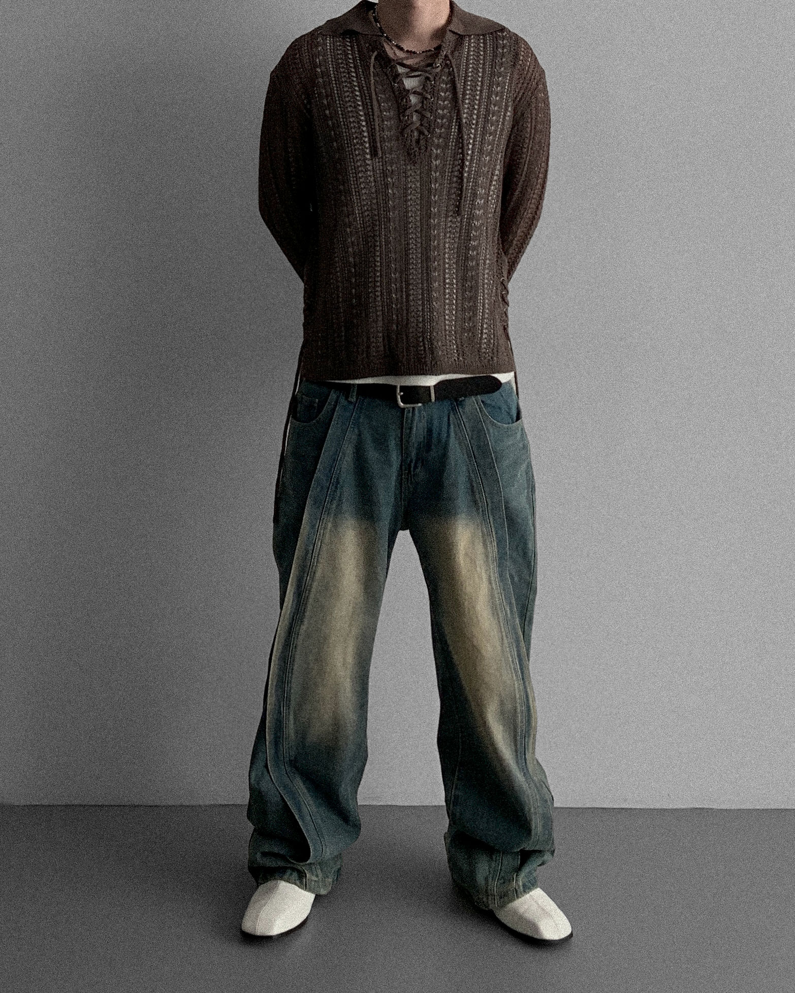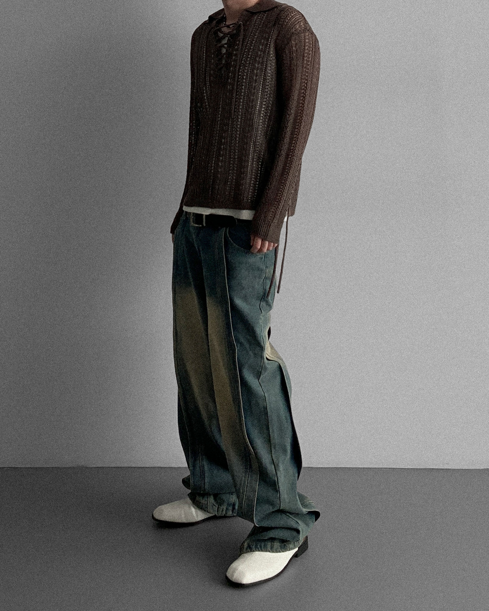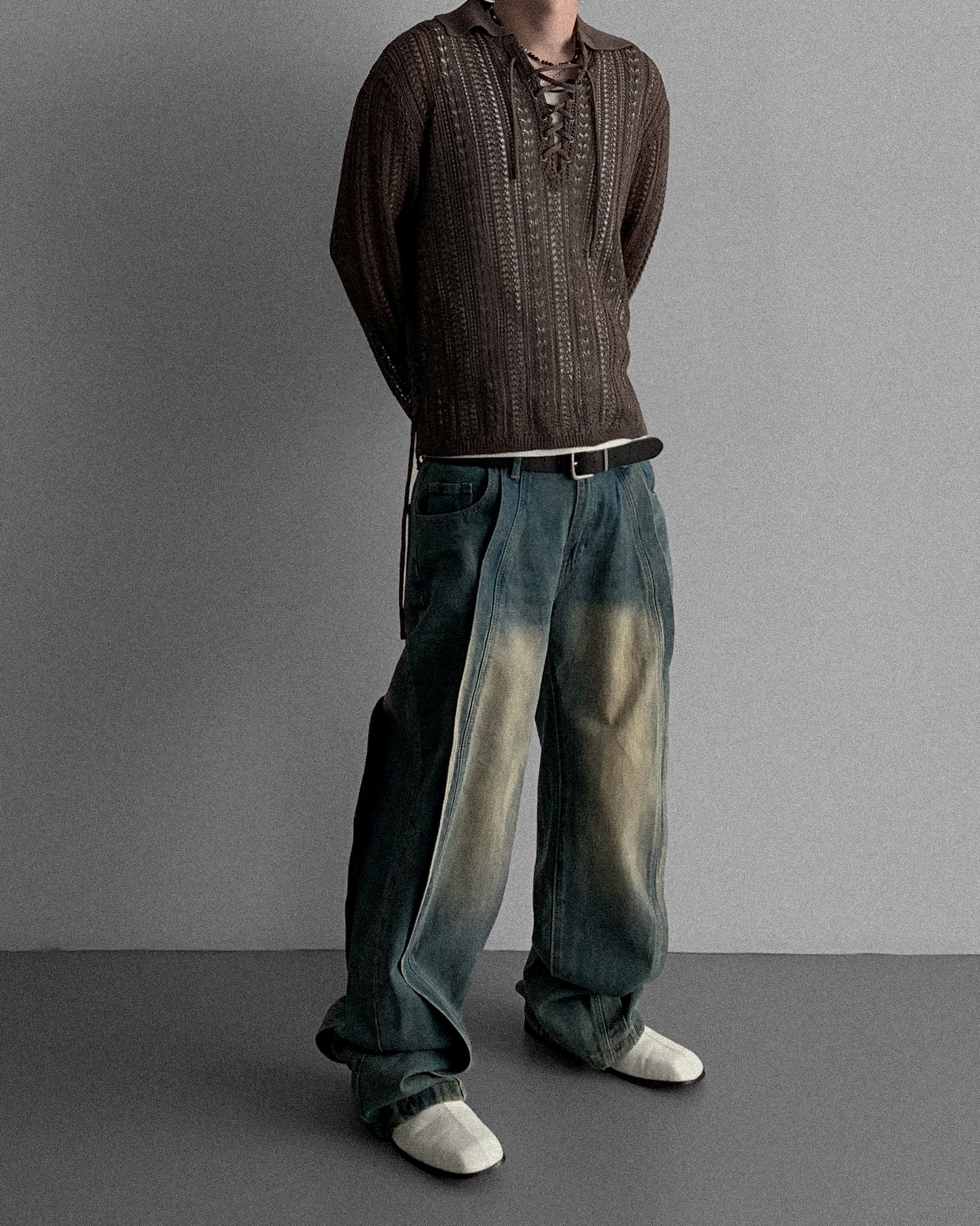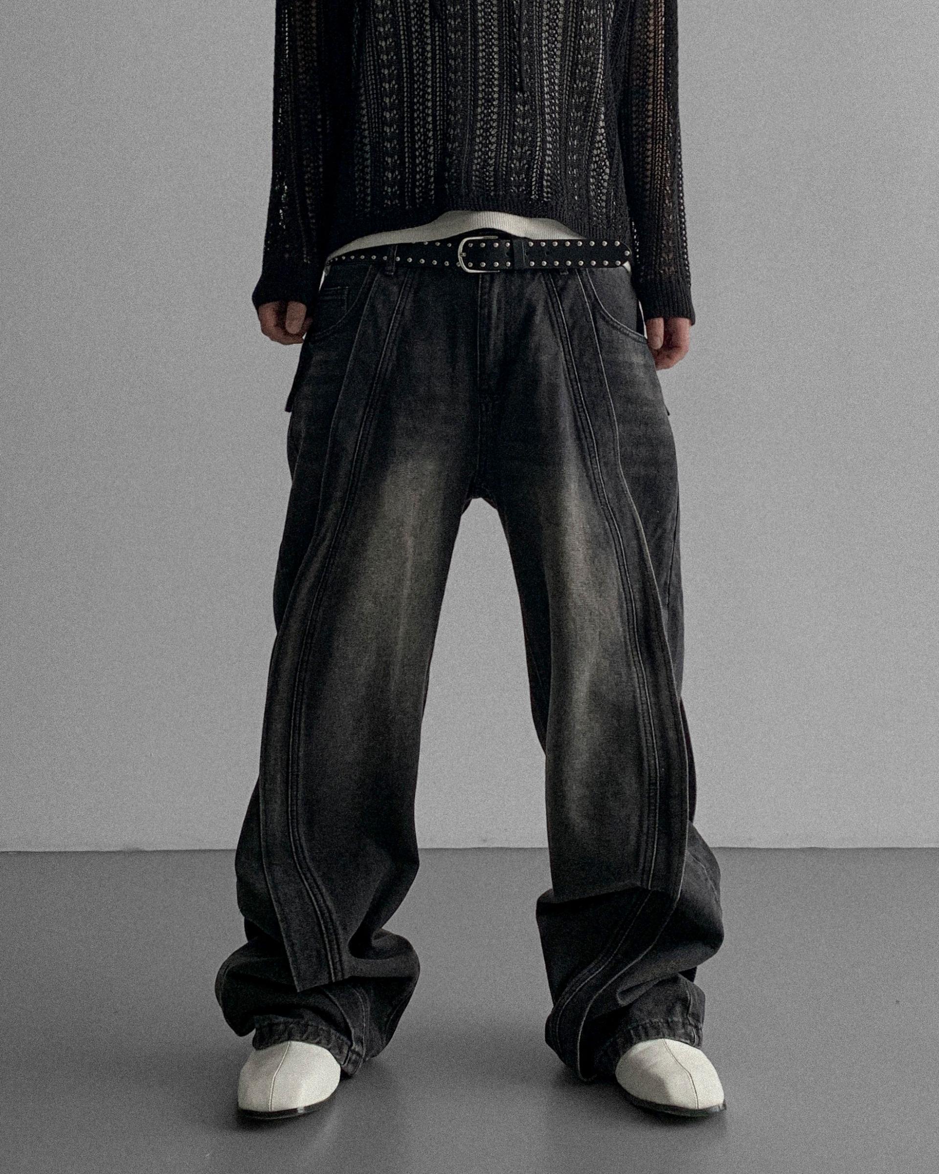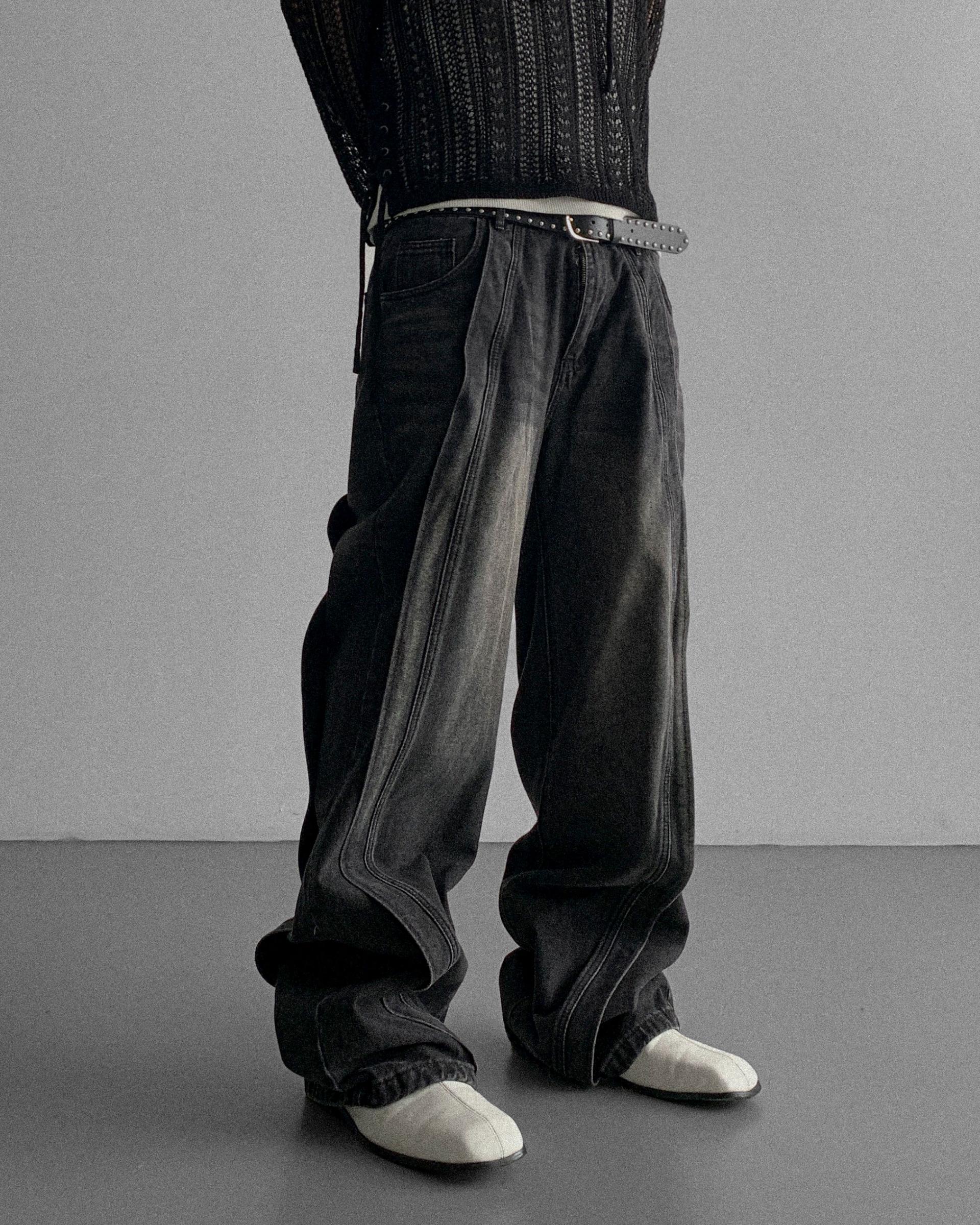 웨이브 커버 세미와이드 데님 팬츠 (2colors)