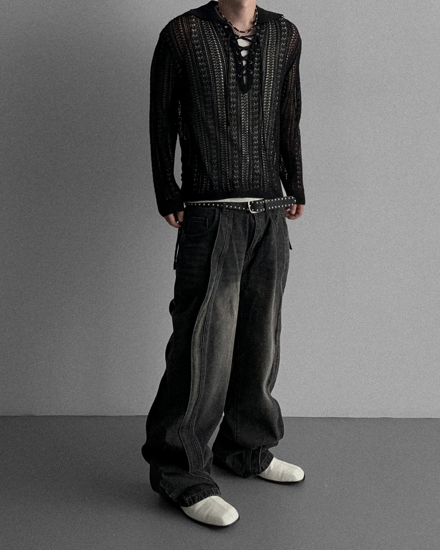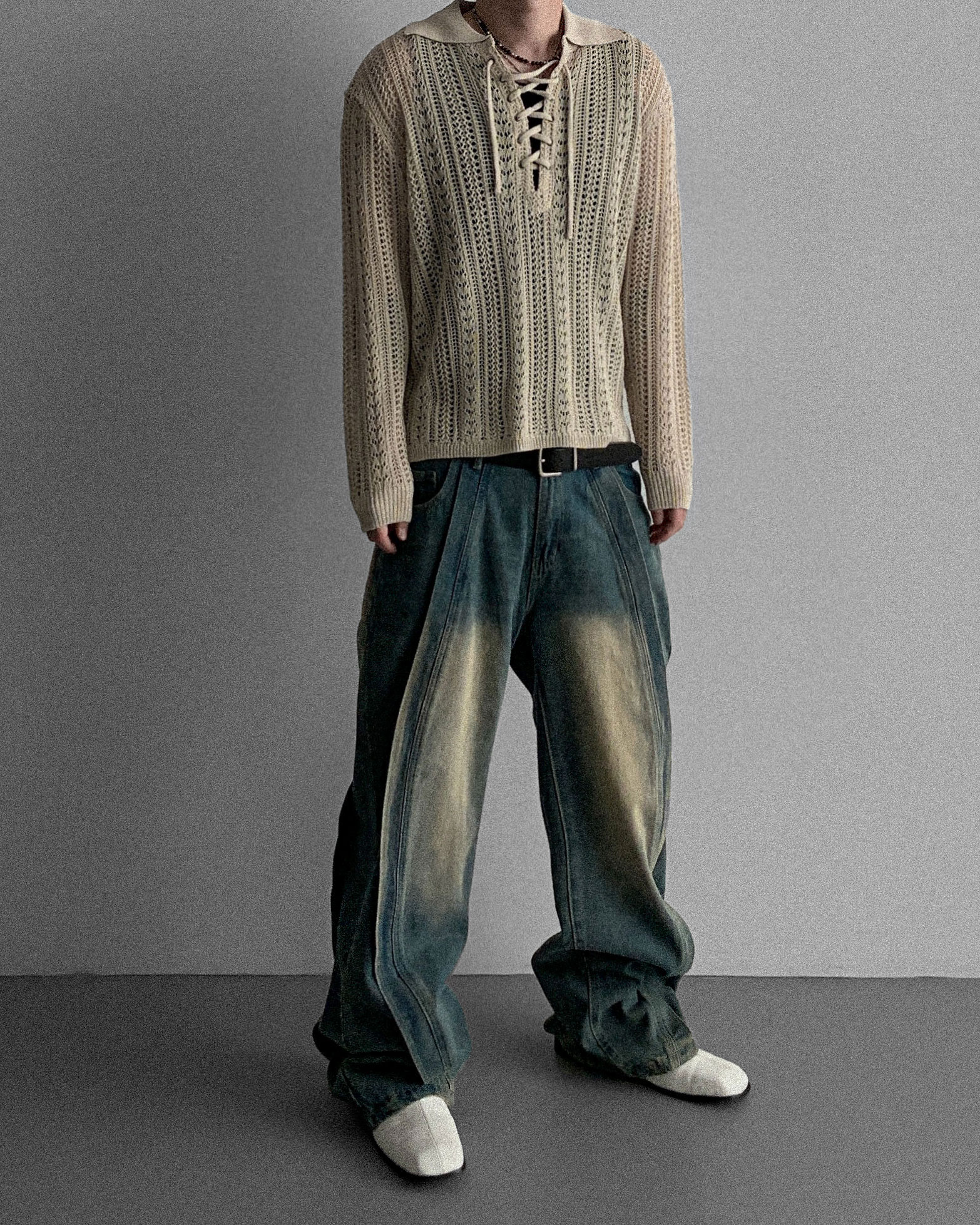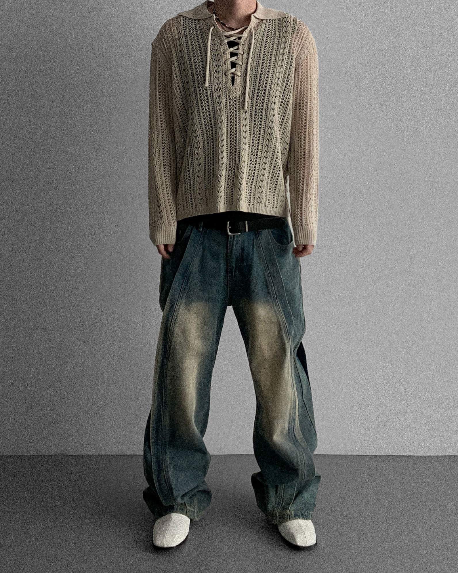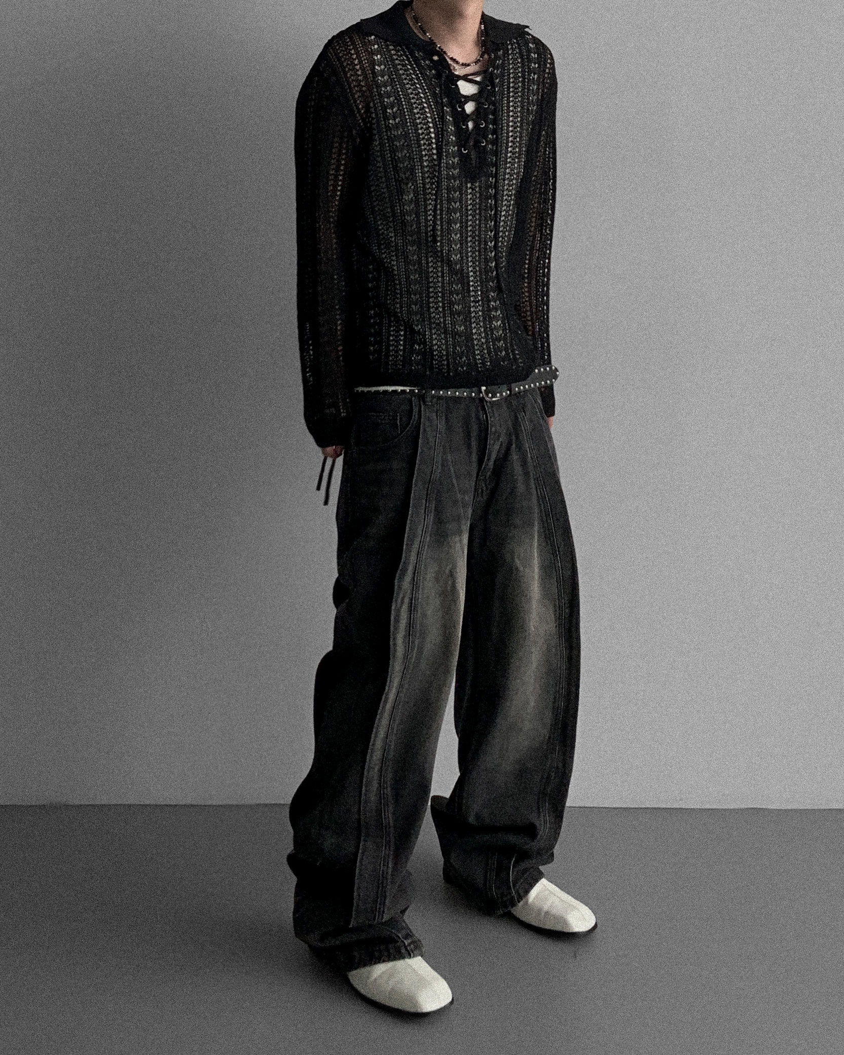 웨이브 커버 세미와이드 데님 팬츠 (2colors)